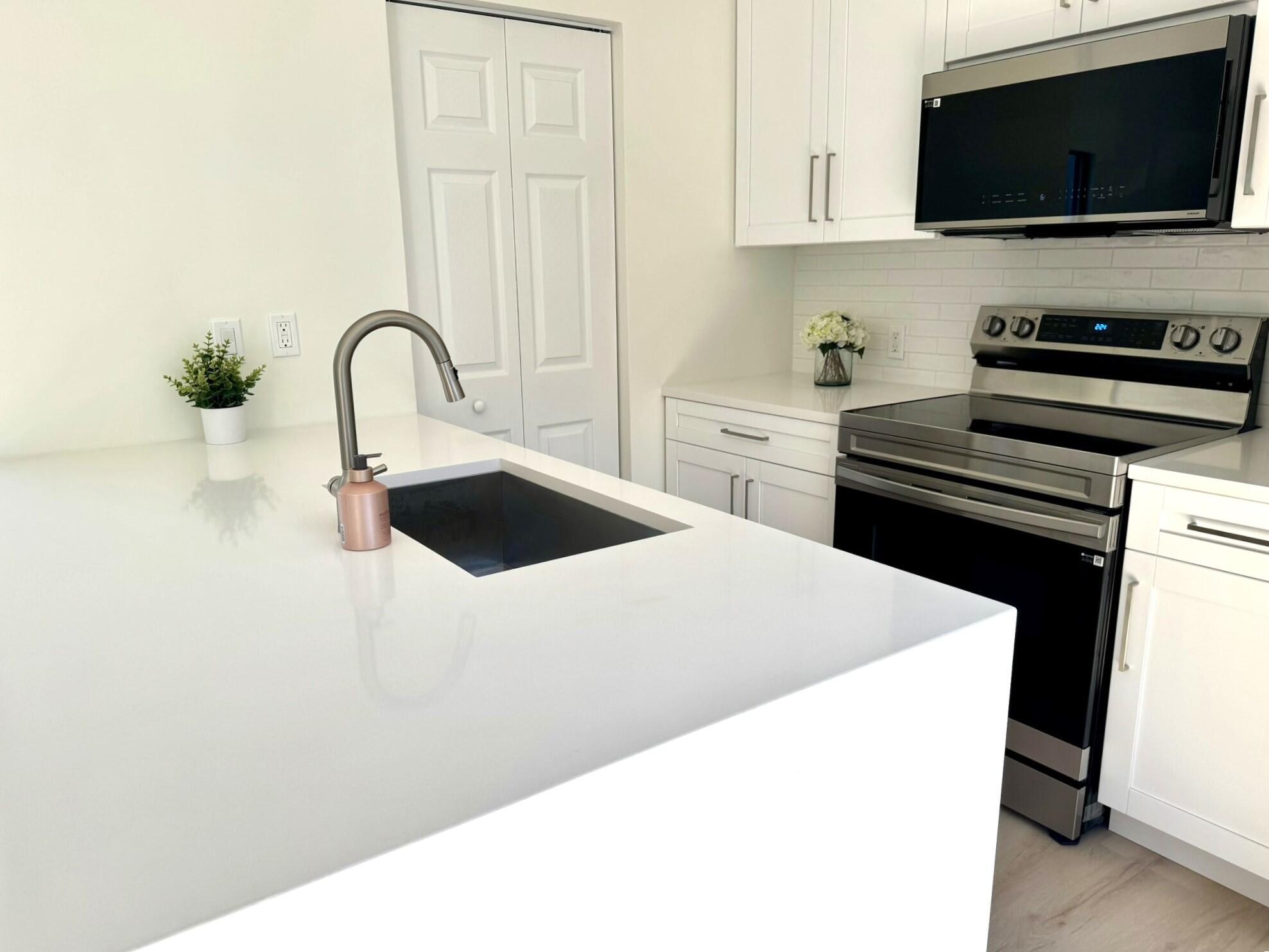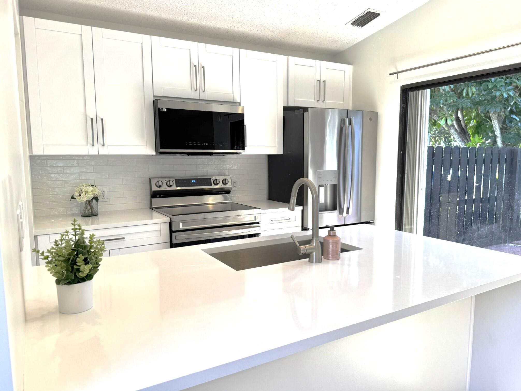 Newly renovated in the heart of Central Boca. You will love this corner villa at Pineapple Walk. Open kitchen with quartz countertops with waterfall edge, soft close shaker cabinets, & subway tile backsplash. Two master bedrooms with walk in closets. It has a new roof 2023, & the exterior just painted. No Assessments. Live worry free & lounge by the lush tropical community pool or in one of your own two patios. Walking distance to shopping, restaurants, & houses of worship. Let's not forget this is an A-Rated school district.