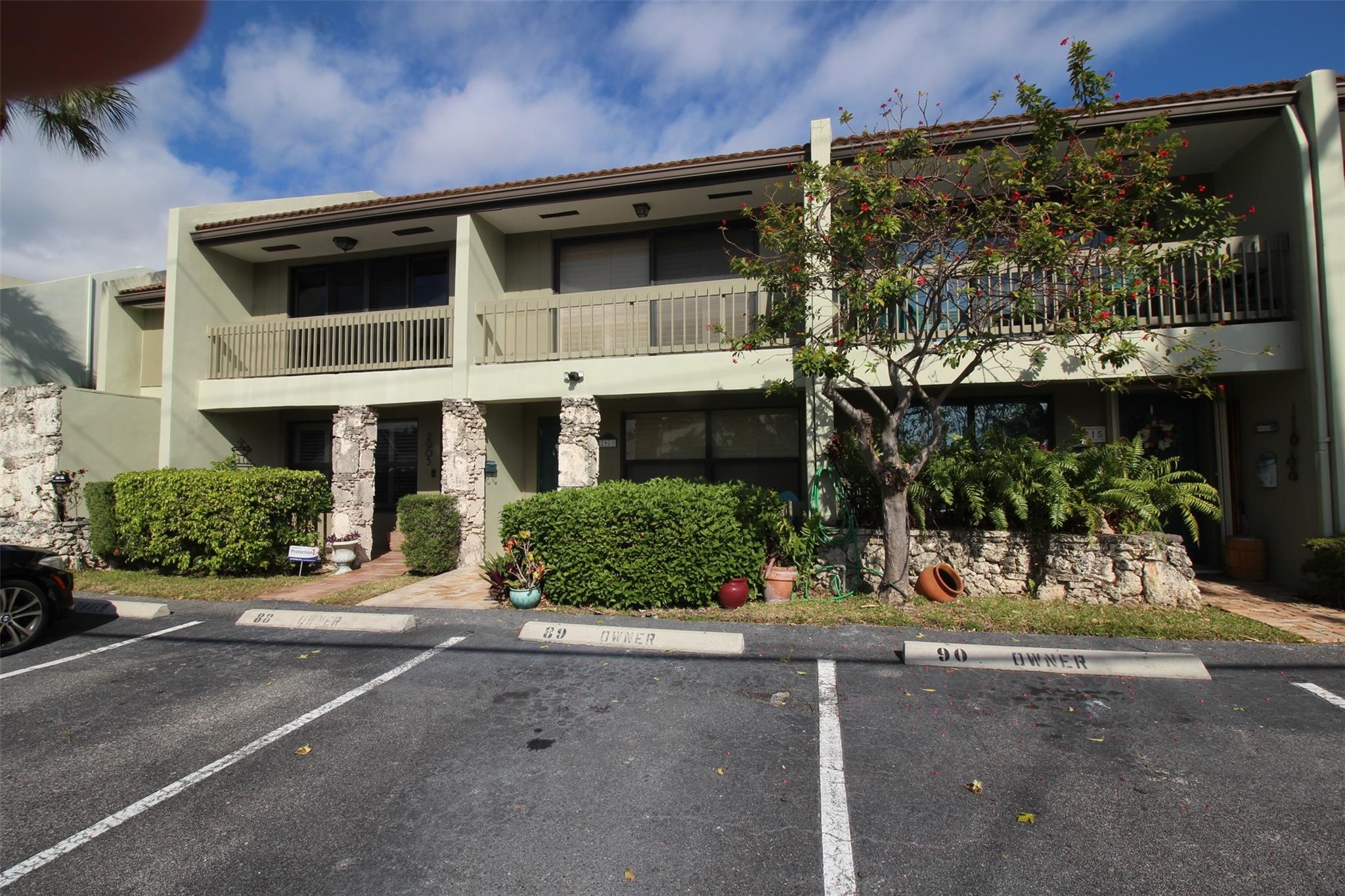 What a location!!! Right off Bayview, with all the feels of a single family neighborhood. Enter this move-in ready, fully furnished unit through the travertine tiled front patio, you are greeted by the expansive and open Living Room/Kitchen/Stairway, viewing all the way through the kitchen and dining room, to the back patio by the pool. The freshly painted, and Beautifully updated kitchen/dining room with matching cabinetry throughout, creates the perfect flow through the entire first floor, great for entertaining. Warm tile flooring throughout the lower level. Kitchen has under-counter full sized washer and dryer, SS Appliances, and granite countertops. There is a powder room on the main level, perfect for your guest, while both bedrooms on the upper level have their own full bathrooms.