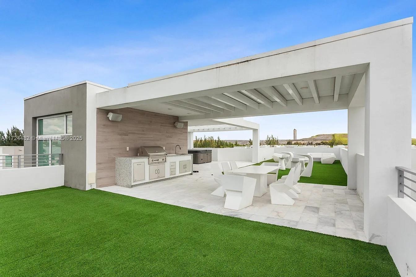 Experience unparalleled luxury in this stunning single-family home located in The Mansions, the most exclusive gated community in Doral. This highly desirable corner lot offers the ultimate in modern living, with 4915 sqft of exceptional design and space. The home features an impressive layout with 4 spacious bedrooms and 5.5 bathrooms on the second floor plus a convenient first-floor bedroom. The Italian-designed kitchen boasts top-of-the-line Sub-Zero and Wolf appliances, perfect for culinary enthusiasts. Step outside to your private oasis, complete with beautiful landscaped backyard featuring a sparkling pool BBQ area and ample space for entertaining. The rooftop terrace takes luxury to new heights with a hot tub BBQ. This is your chance to own a piece of modern elegance and exclusivity