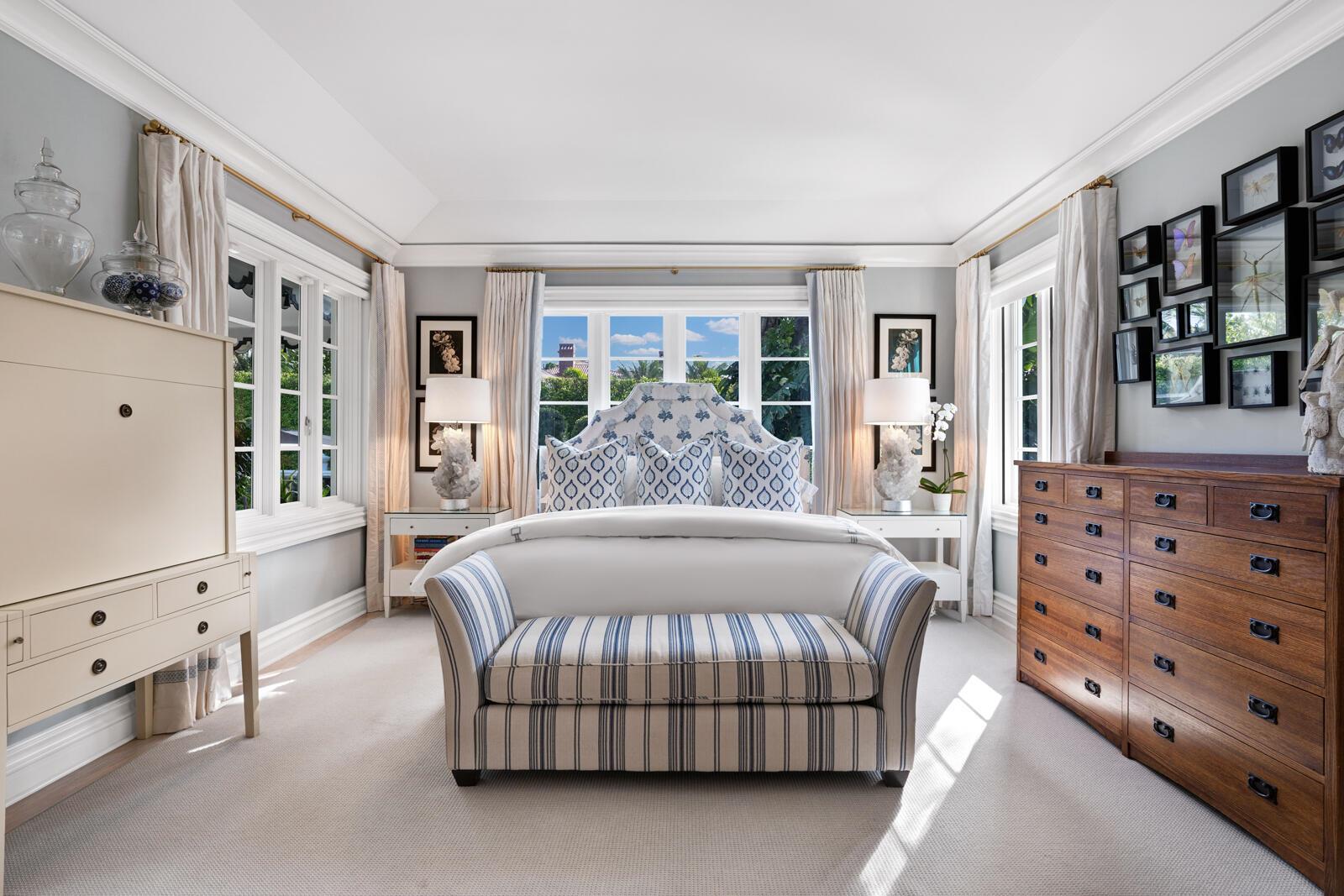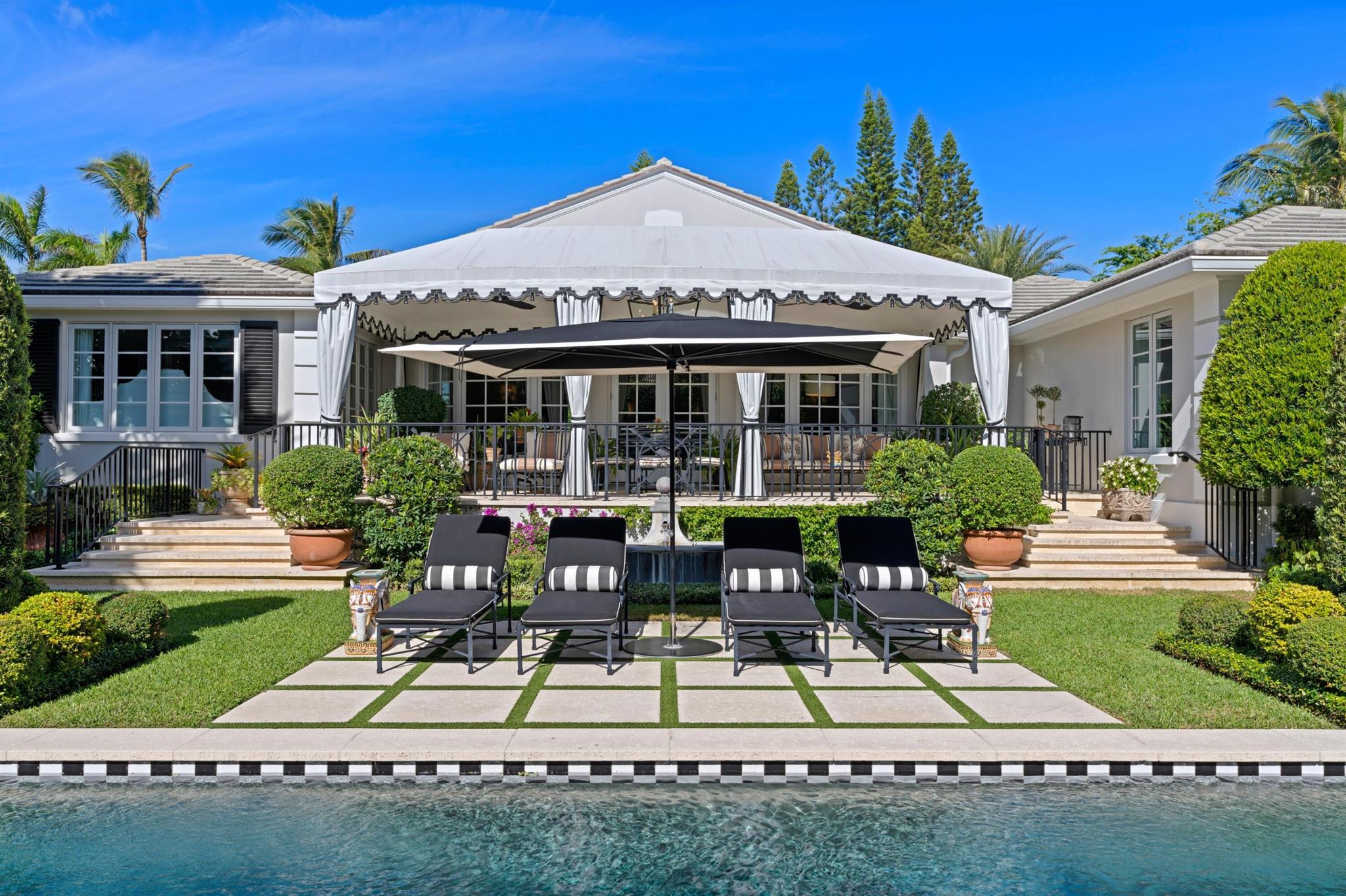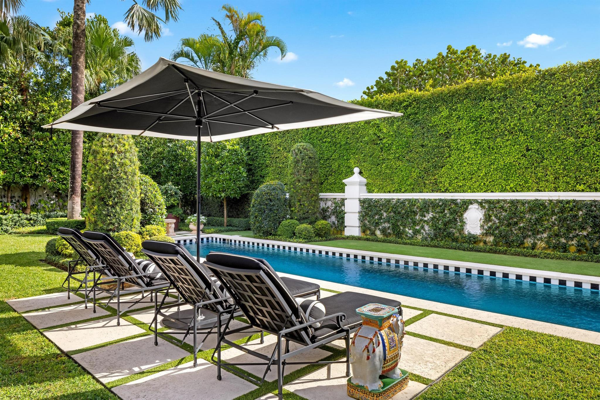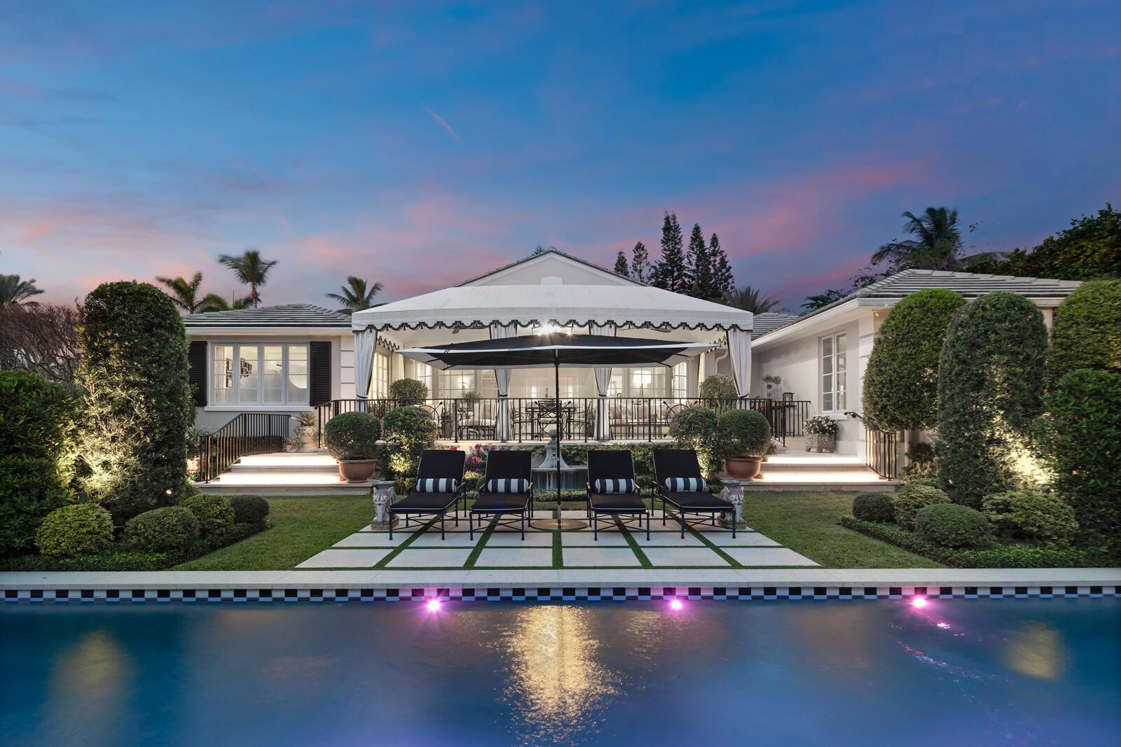 Welcome to 142 Via Palma. This elegant residence is an entertainer's paradise located just steps to Mar-a-Lago in the exclusive estate section enclave of Palm Beach Island. Nestled intimately in between the ocean and intracoastal with deeded beach access, Via Palma is a broad private street, recently upgraded with a lovely view of the Intracoastal and an easement for resident's use. This gracious estate has high ceilings throughout, and generous formal living spaces that flow directly to the large terrace overlooking the pool. The house has two large bedrooms, each of which can be used as a primary suite.
