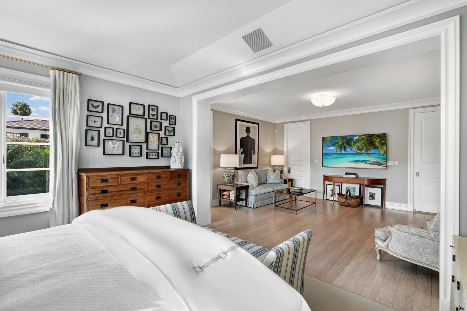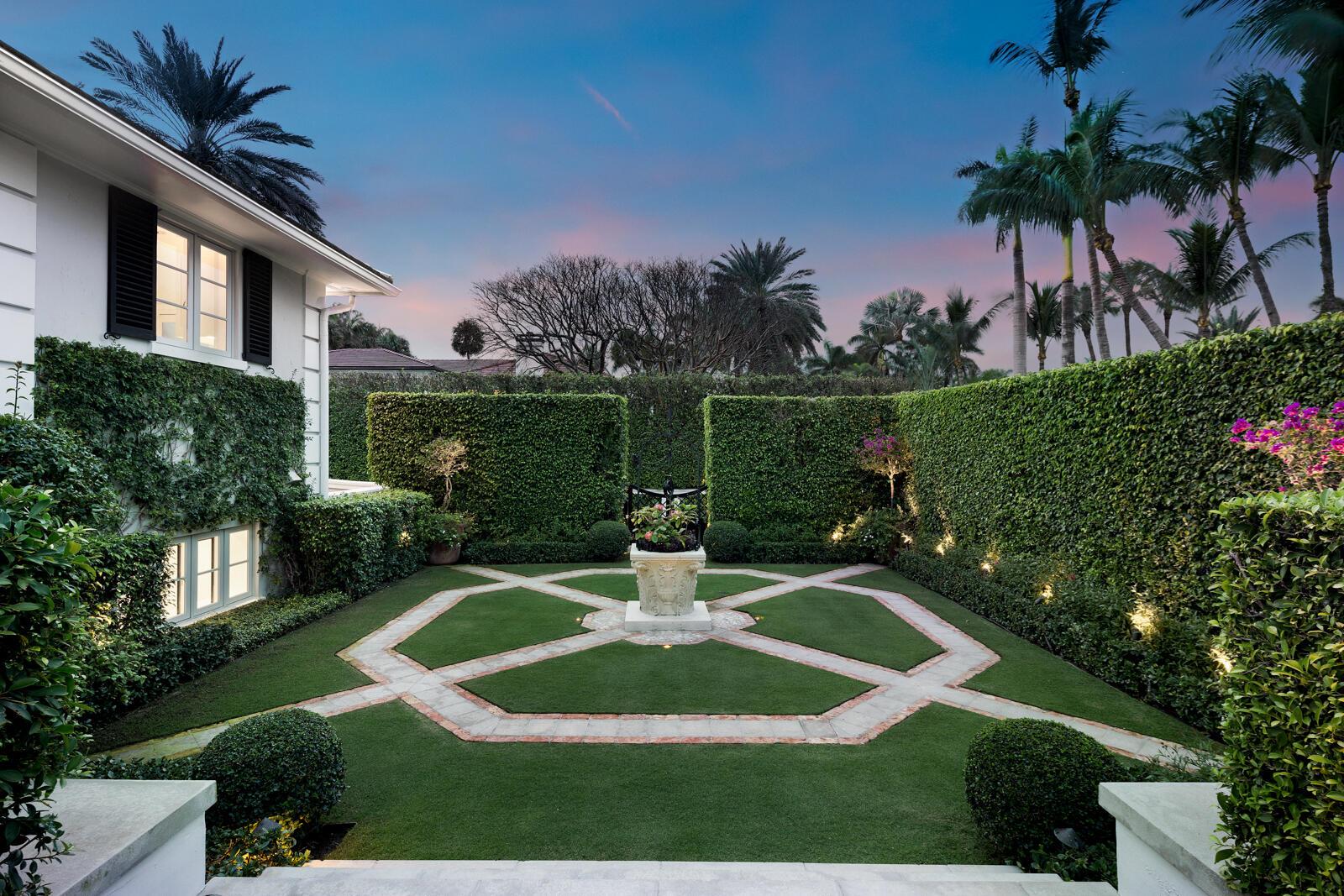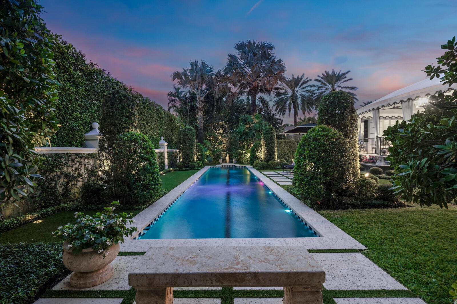 Welcome to 142 Via Palma. This elegant residence is an entertainer's paradise located just steps to Mar-a-Lago in the exclusive estate section enclave of Palm Beach Island. Nestled intimately in between the ocean and intracoastal with deeded beach access, Via Palma is a broad private street, recently upgraded with a lovely view of the Intracoastal and an easement for resident's use. This gracious estate has high ceilings throughout, and generous formal living spaces that flow directly to the large terrace overlooking the pool. The house has two large bedrooms, each of which can be used as a primary suite.