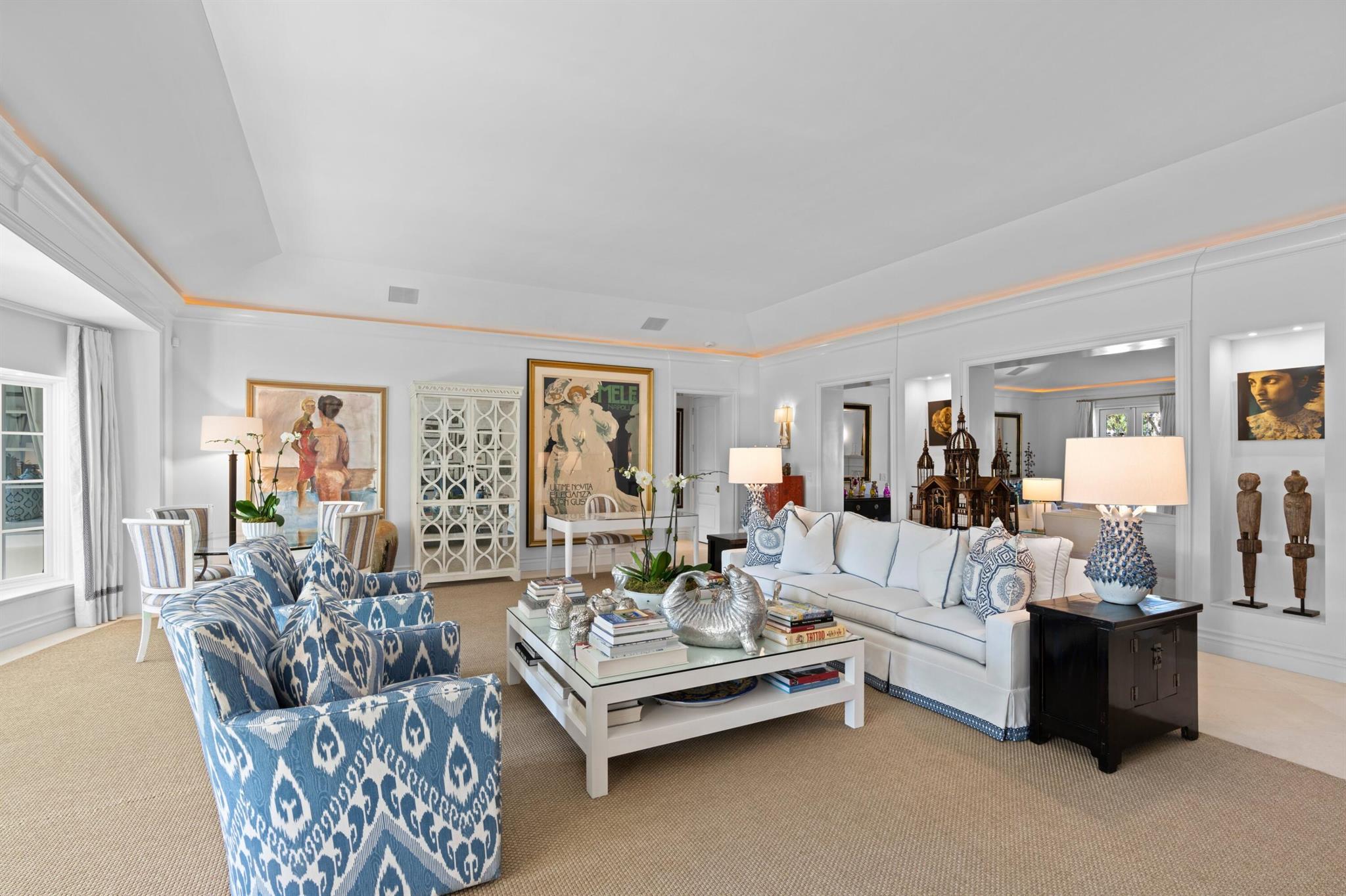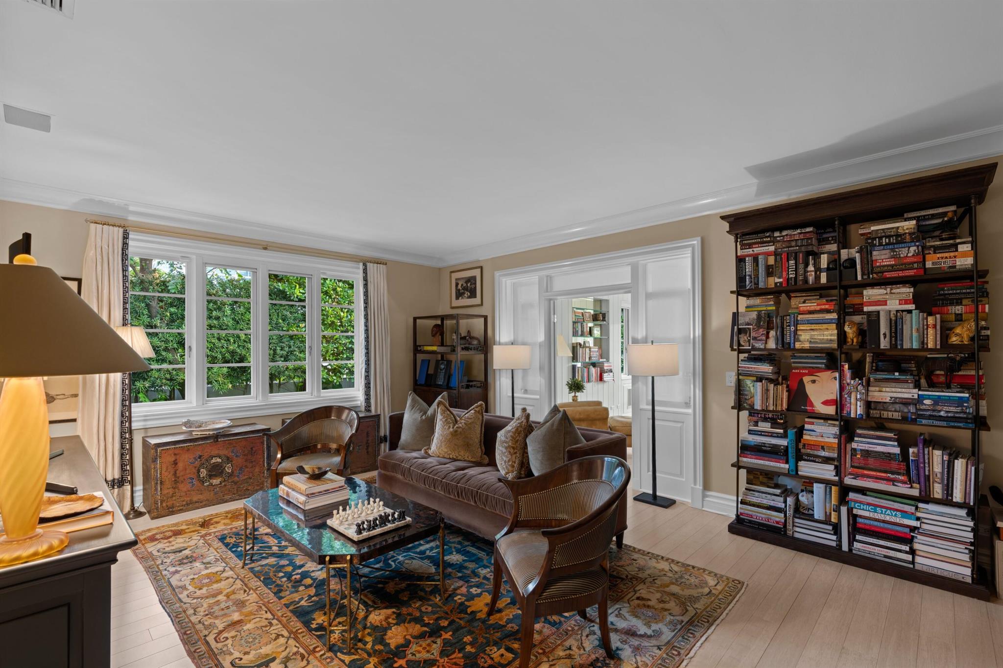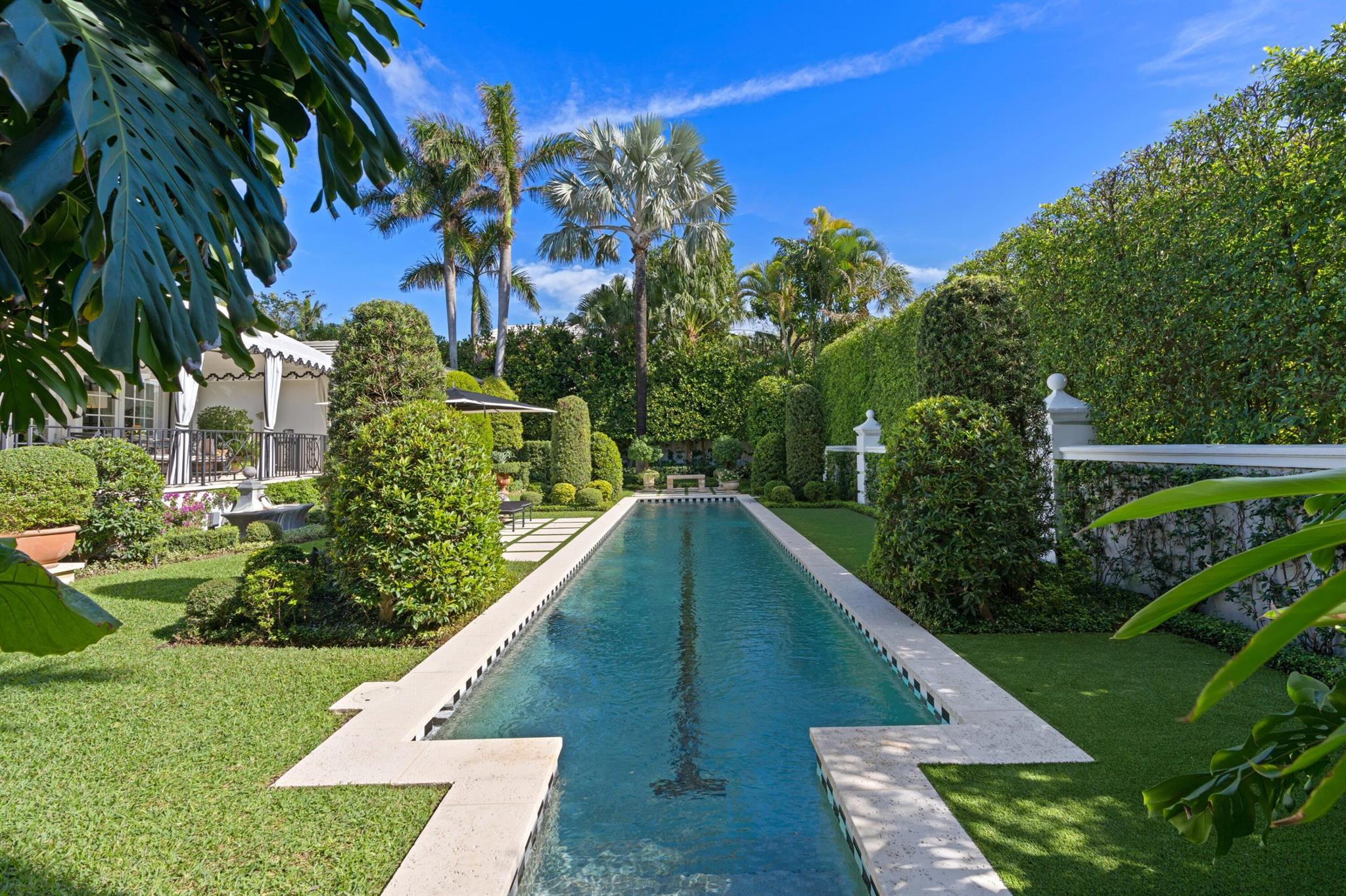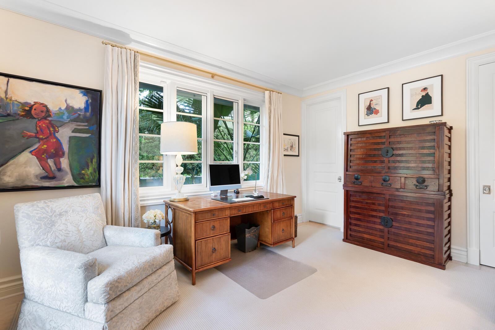 Welcome to 142 Via Palma. This elegant residence is an entertainer's paradise located just steps to Mar-a-Lago in the exclusive estate section enclave of Palm Beach Island. Nestled intimately in between the ocean and intracoastal with deeded beach access, Via Palma is a broad private street, recently upgraded with a lovely view of the Intracoastal and an easement for resident's use. This gracious estate has high ceilings throughout, and generous formal living spaces that flow directly to the large terrace overlooking the pool. The house has two large bedrooms, each of which can be used as a primary suite.