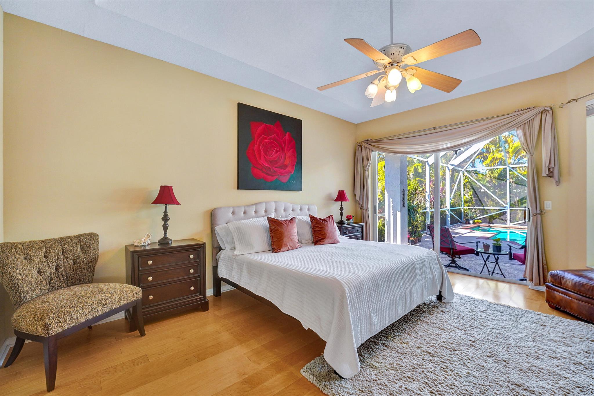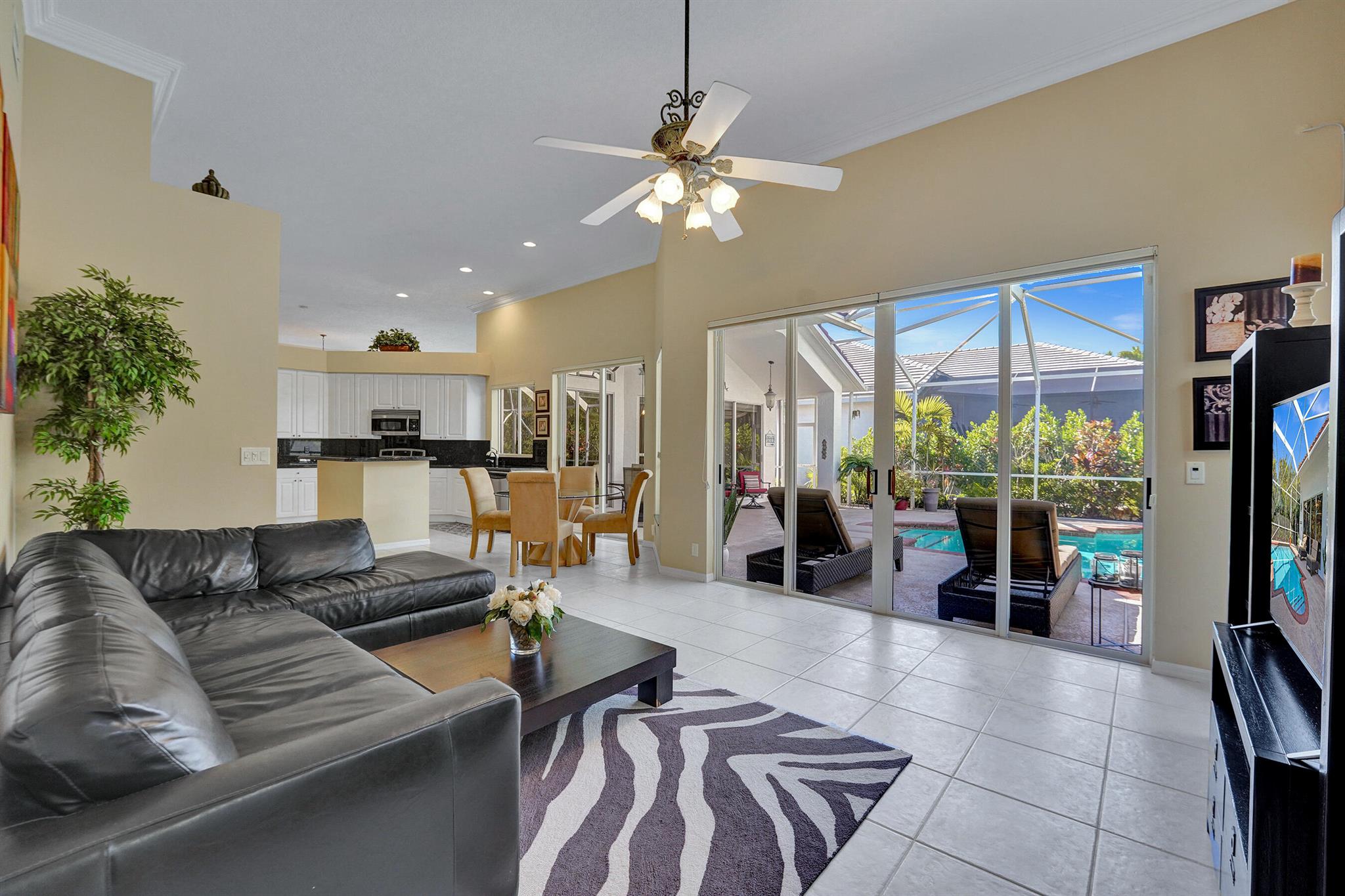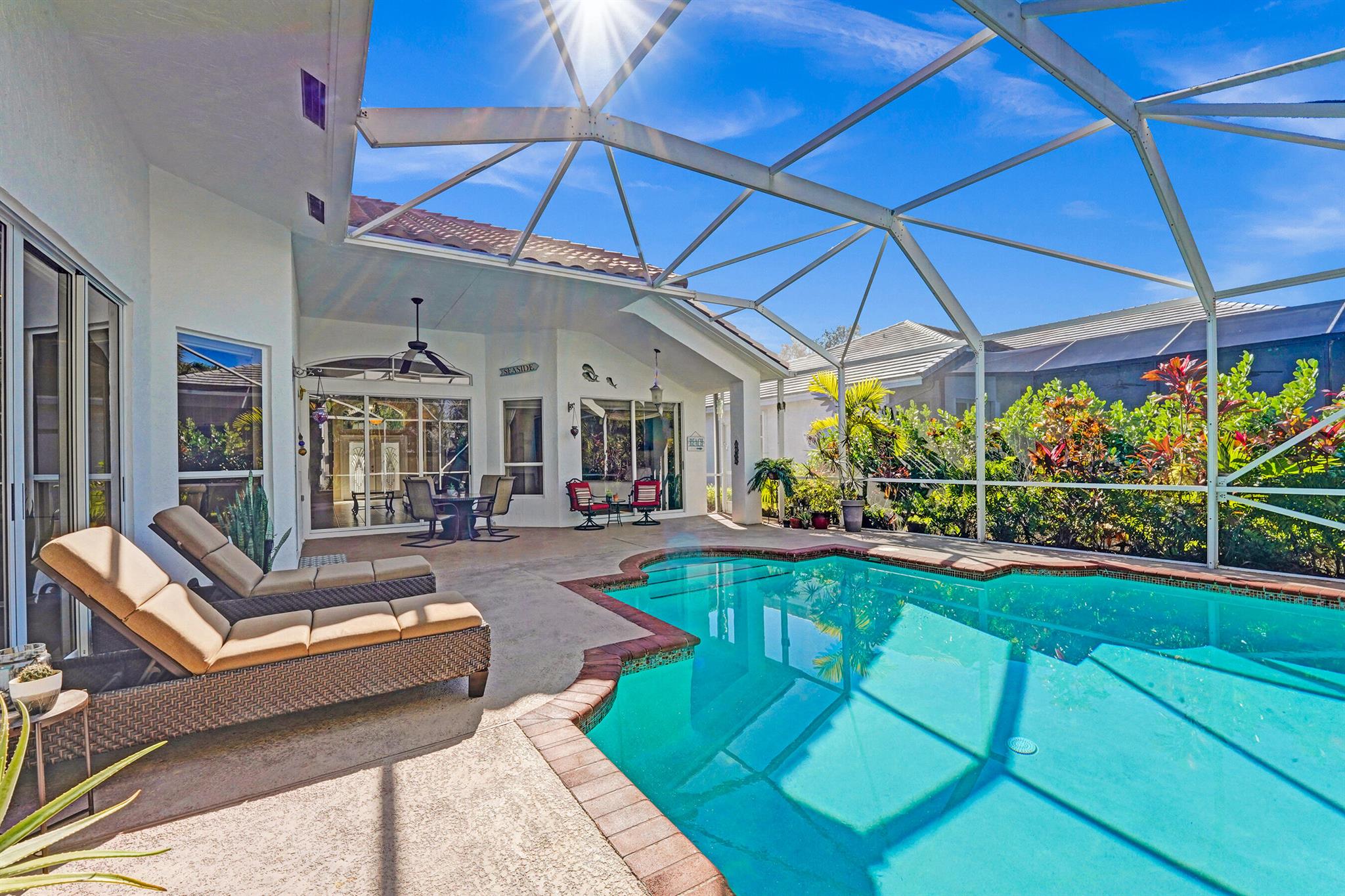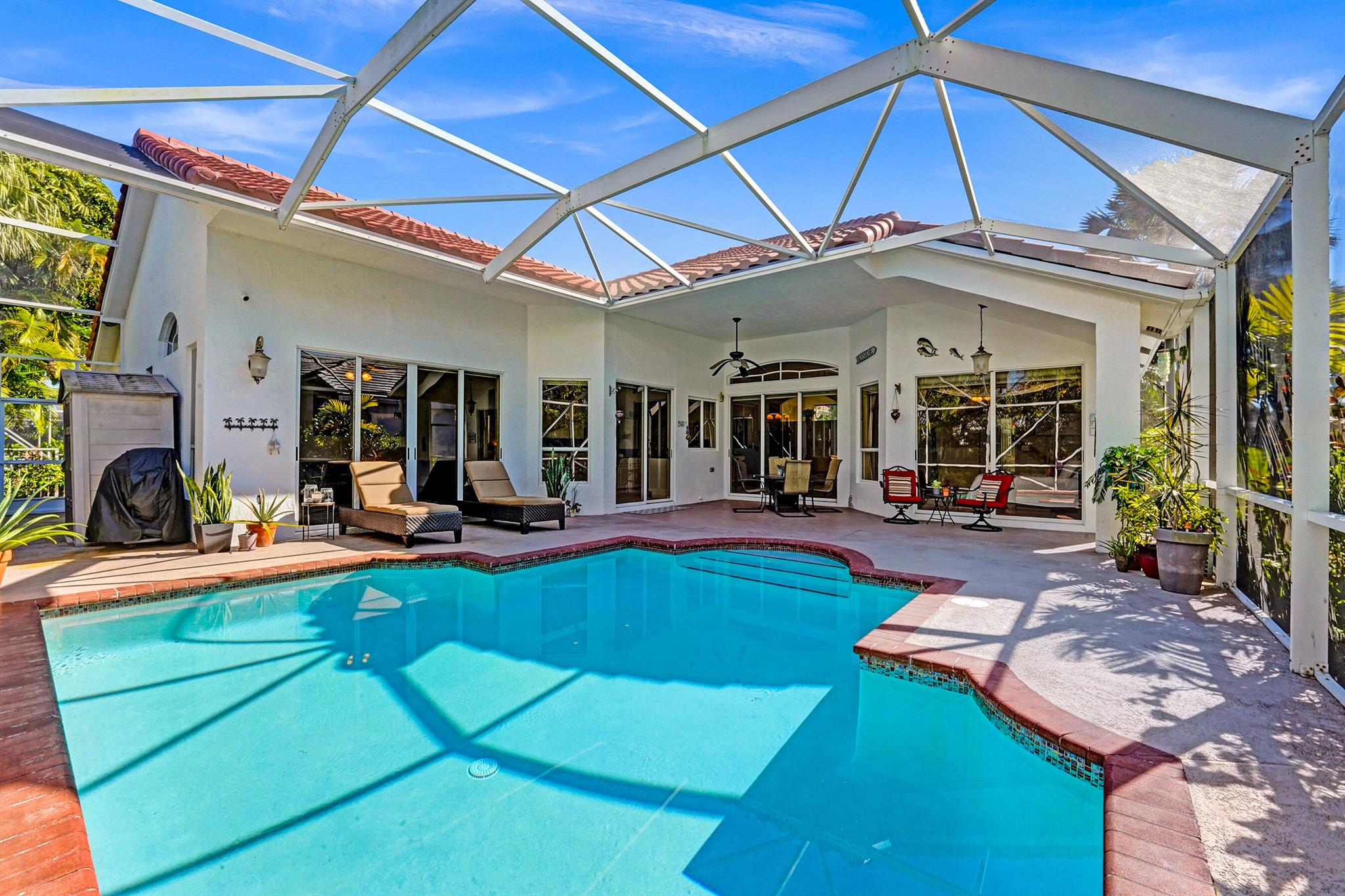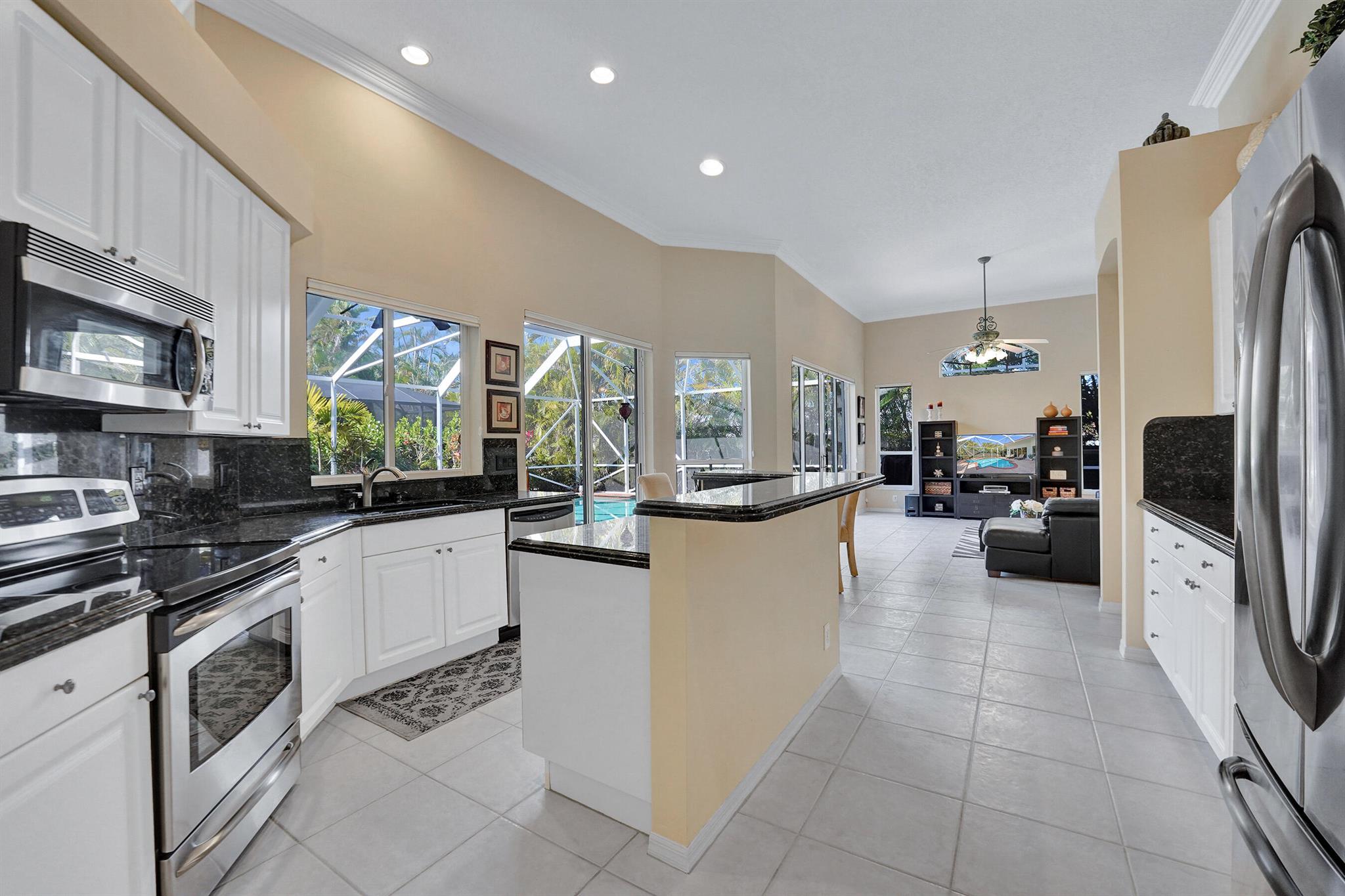 Welcome to this meticulously maintained home with a NEW 2023 ROOF! This beautiful residence is move-in ready and features a SPLIT FLOOR PLAN with 4 beds, 3 full baths, plus an ADDITIONAL OFFICE/DEN! Enjoy family gatherings in your LARGE OPEN PATIO complete with a SPARKLING SALTWATER POOL and NEW SCREEN ENCLOSURE! Inside, notice high ceilings, two living areas, a formal dining area and a GOURMET KITCHEN w/ granite countertops, island, abundant cabinet space and s.s. appliances. The primary suite features 2 WALK-IN CLOSETS, glass-enclosed shower, jacuzzi and his/hers vanities. Off of the laundry room is the 2-CAR GARAGE with area for storage. Available furnished or unfurnished! Located in the stunning community of Lexington Estates in A-RATED SCHOOL DISTRICTS close to shops and restaurants!