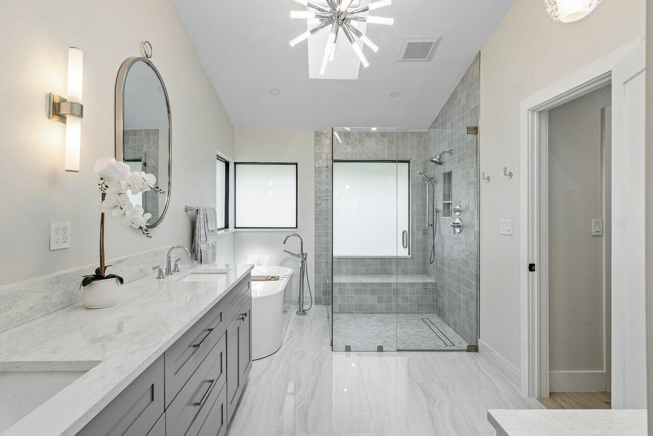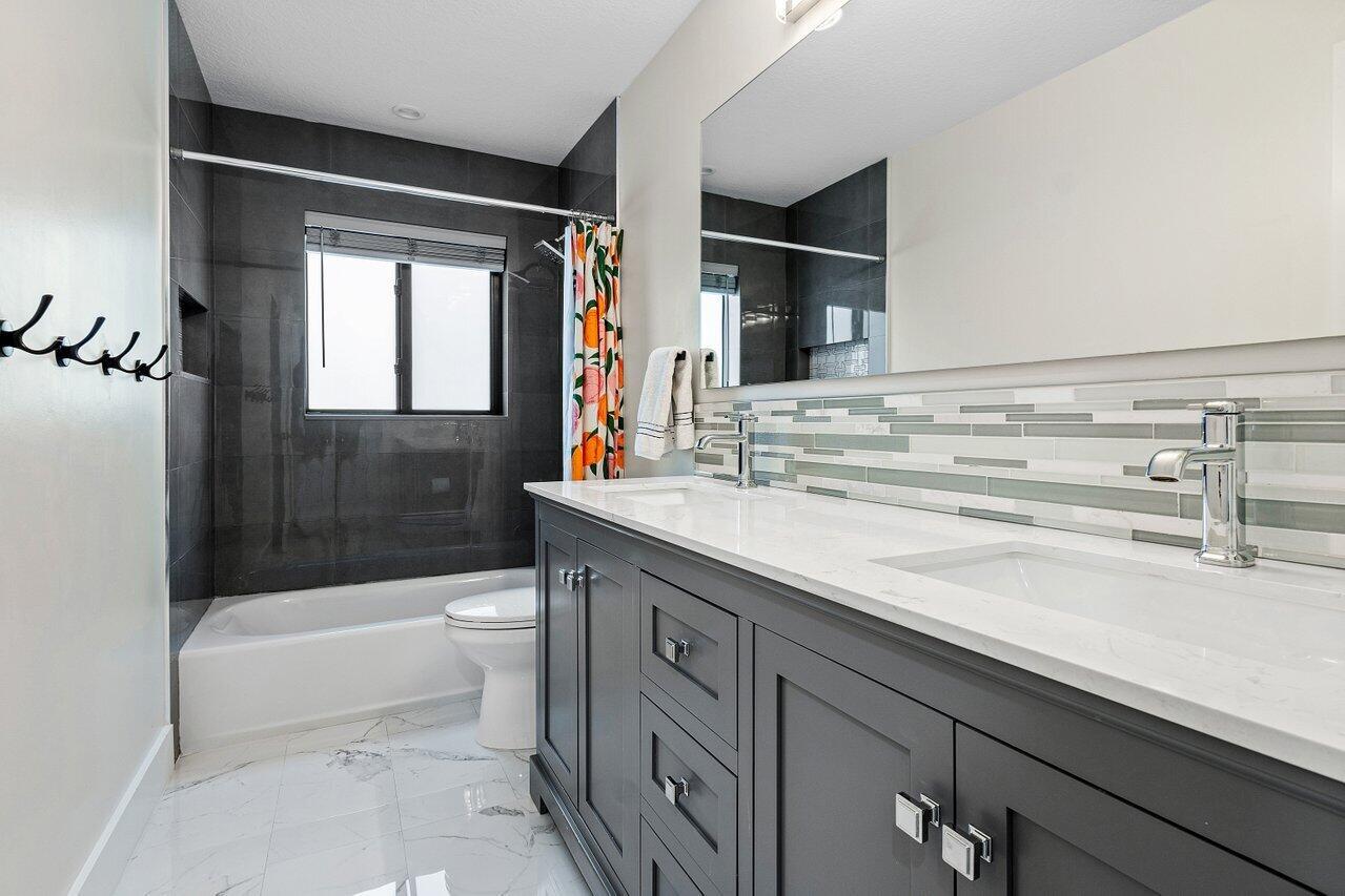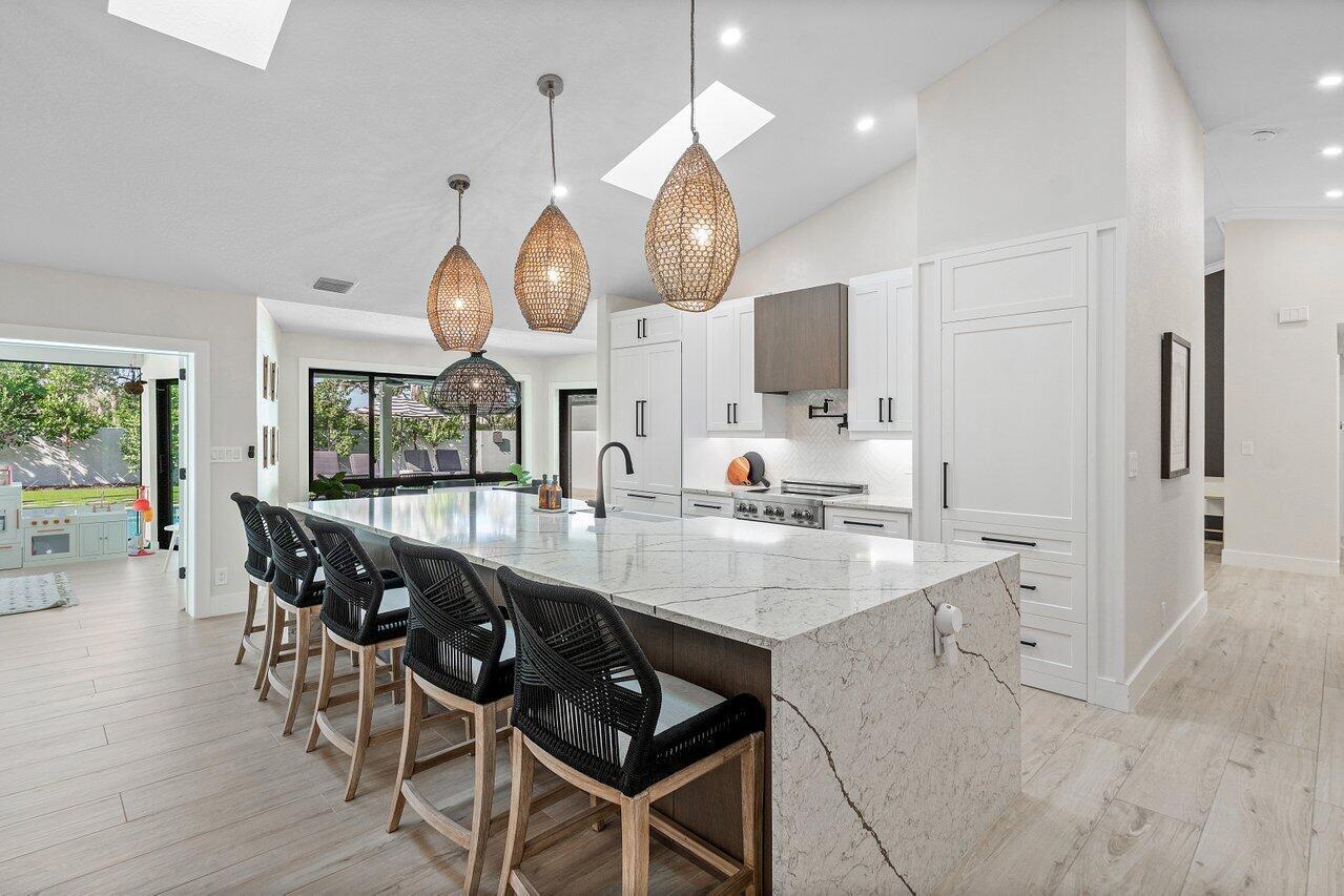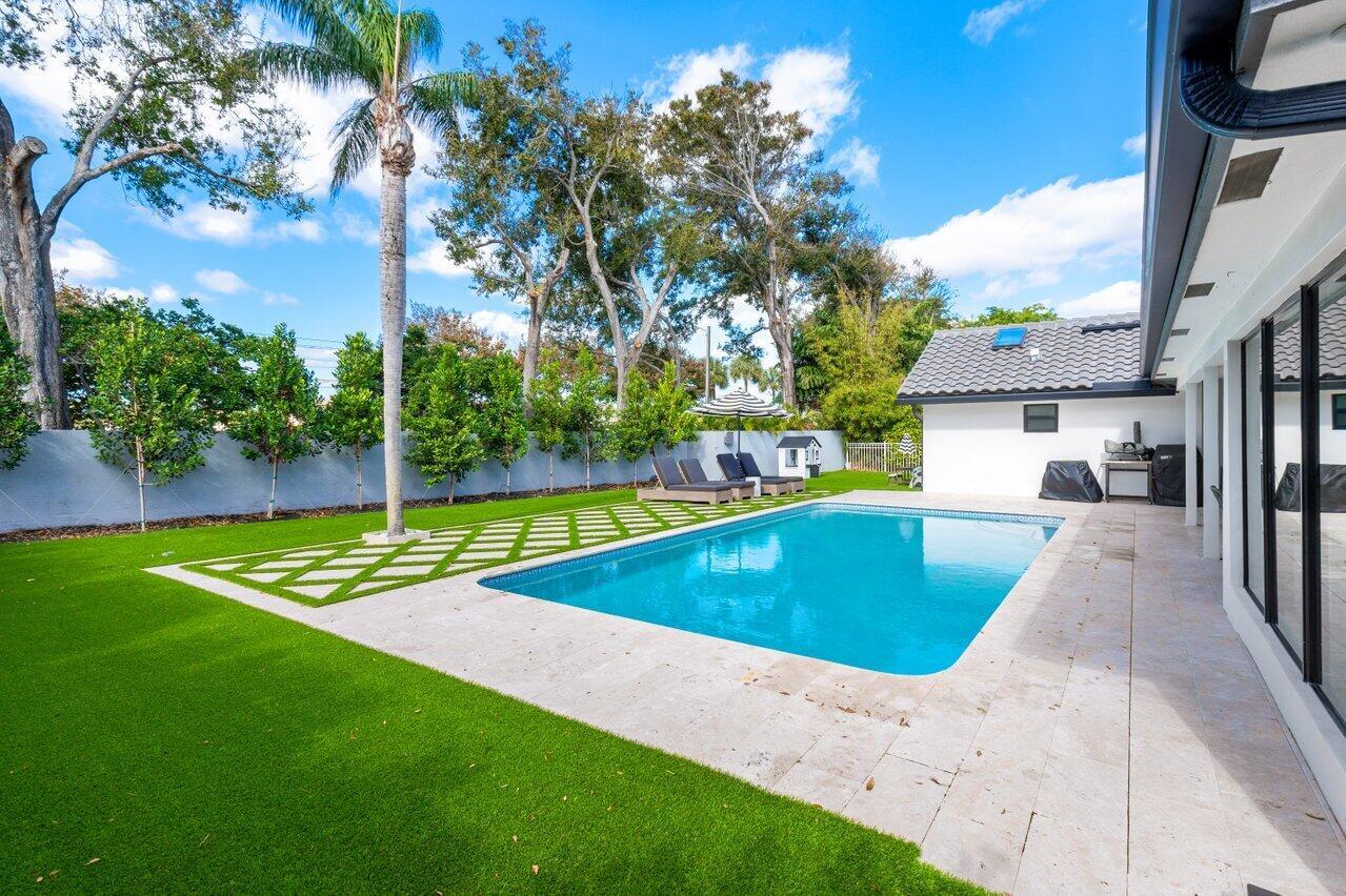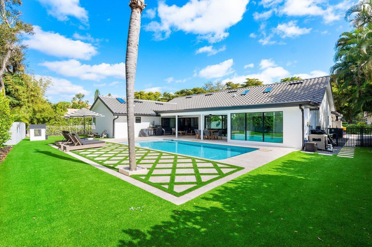 Stunning home completely renovated and no detail left unturned. NEW roof, NEW hurricane impact windows, NEW porcelain floors, NEW kitchen with beautiful quartz countertops and tons of storage, NEW circular driveway, NEW pavers, NEW LED lighting and so much more! This 5 bedroom, 3.5 bathroom home is completely turnkey. The pool has recently been resurfaced and has a new heater and pool pump. All of the gutters are new and there is new turf in the yard and new landscaping all around. Parkside is a highly desired gated community with tennis and pickleball courts, playground, basketball court and a party room. The community is located in east Boca Raton and is zoned for Top Rated schools. This home is a MUST SEE.