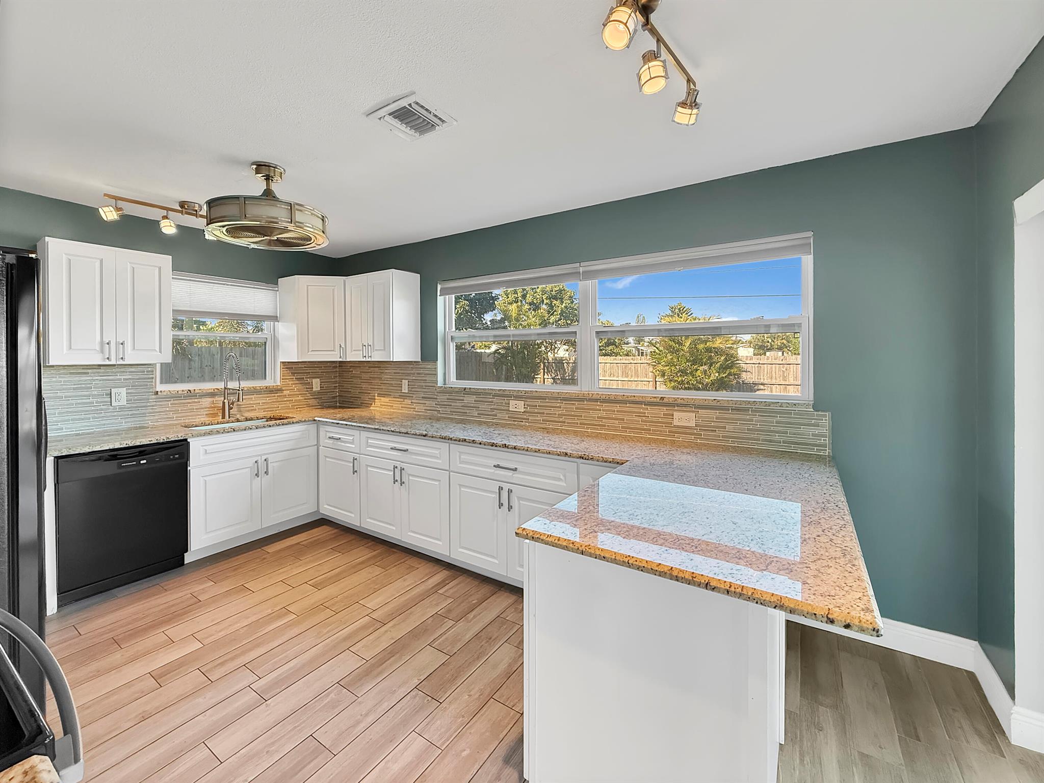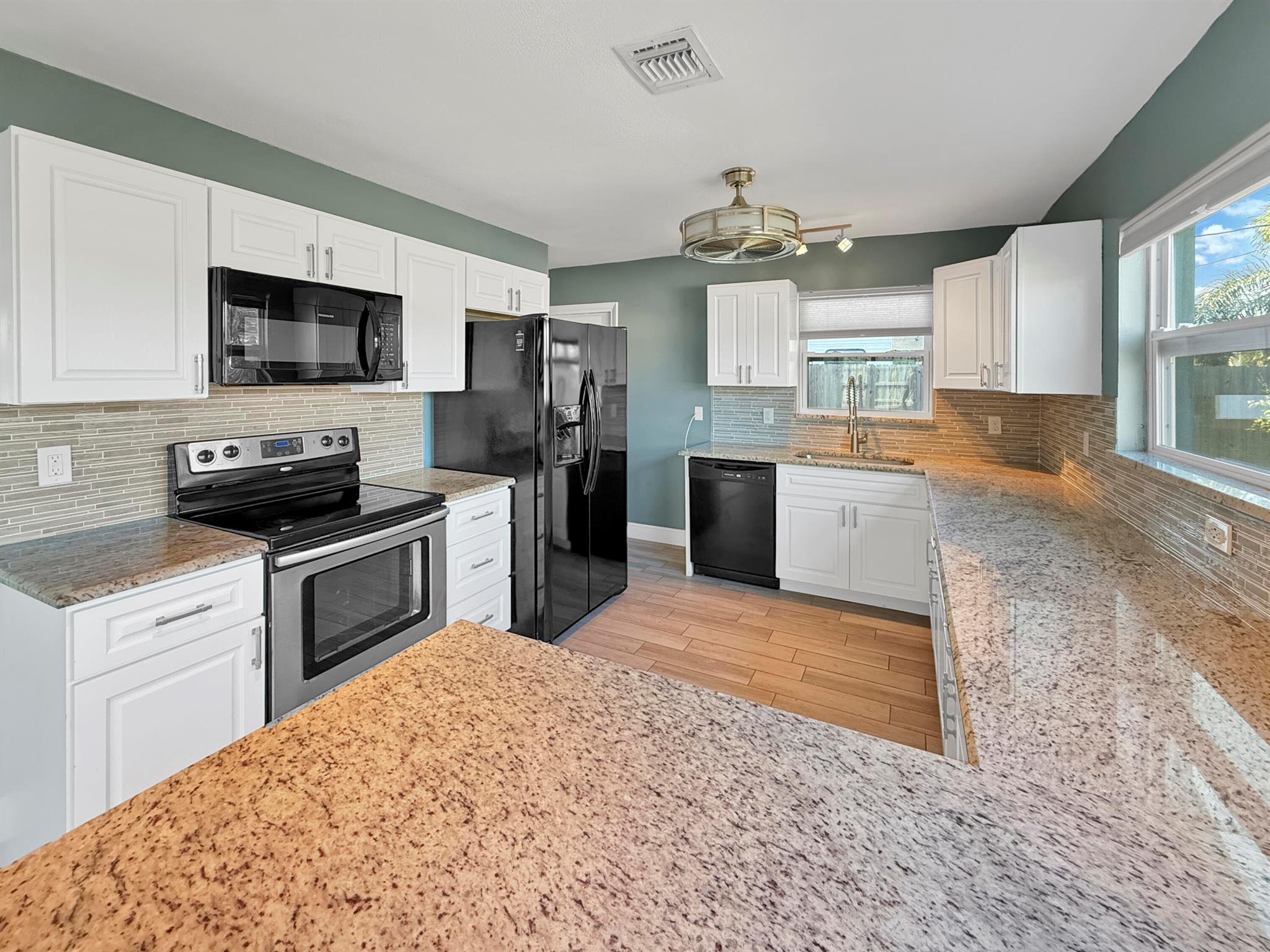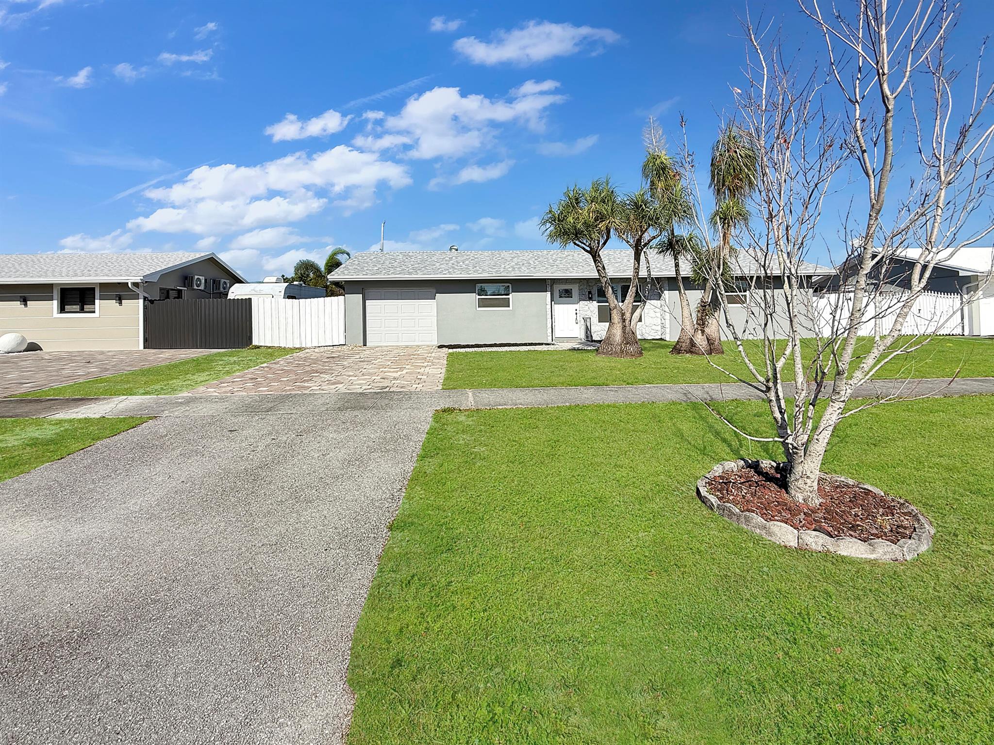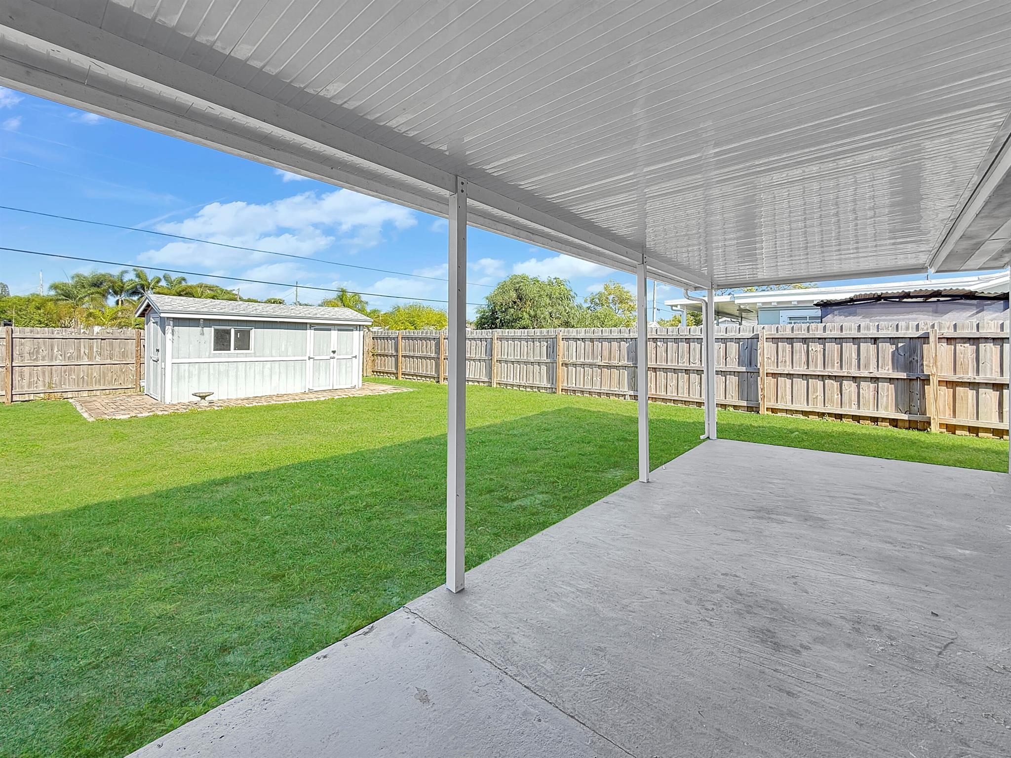 PRICE IMPROVED!! Spacious 3-bed, 2-bath home in West Palm Beach with 1-car garage on nearly 1/4 acre. Features include a workshop, large storage shed, and private fenced yard with room for a pool. The updated kitchen boasts granite countertops, white wood cabinets, stainless steel appliances, and garden views. The split floor plan offers a great room with space for formal dining and living areas, opening to a covered patio ideal for entertaining. The primary suite includes an en-suite bath and ample storage, while two additional bedrooms enjoy natural light and a modern bath. New luxury vinyl and wood-like tile flooring throughout, fresh paint, and updated baseboards add warmth and style. Impact windows, a 2020 roof, and a home warranty provide peace of mind. COME BY AND MAKE AN OFFER!