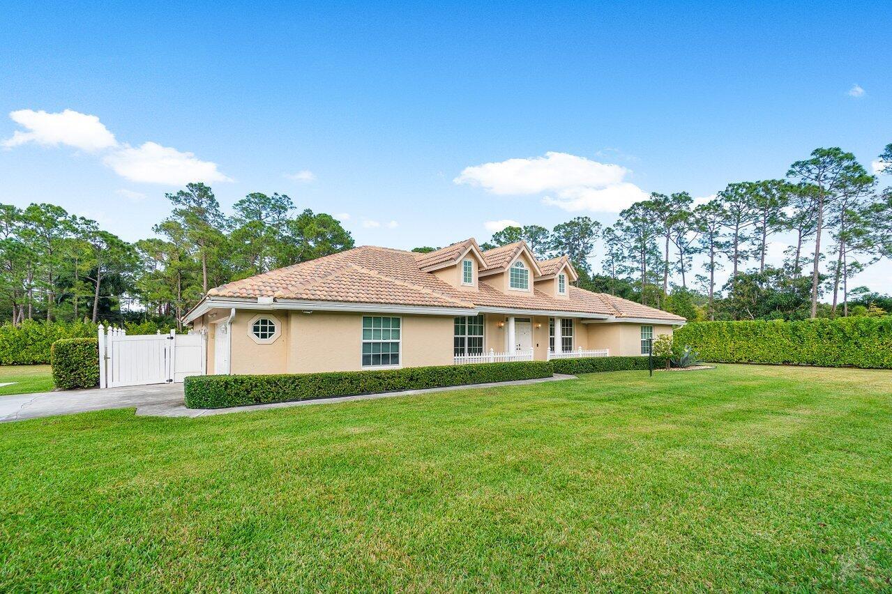 HUGE PRICE IMPROVEMENT! Don't miss viewing this beautiful property! Welcome to this true 4 bedroom plus office/den home with a great split floor plan and open concept living. Conveniently located just off of Northlake Blvd. on all paved roads. NEW TILE ROOF installed in 2022. Wood like ceramic tile throughout the house. Both bathrooms have been renovated. Home is complete with Generac Generator, Impact Windows new sprinkler system, newer water system and new appliances. Mature Caluscia hedges surround the entire property. There are 2 entrances both with electric gate systems. One entrance has a separate driveway leading to the rear of property to easily store your boat, RV, work equipment, toys and much more.