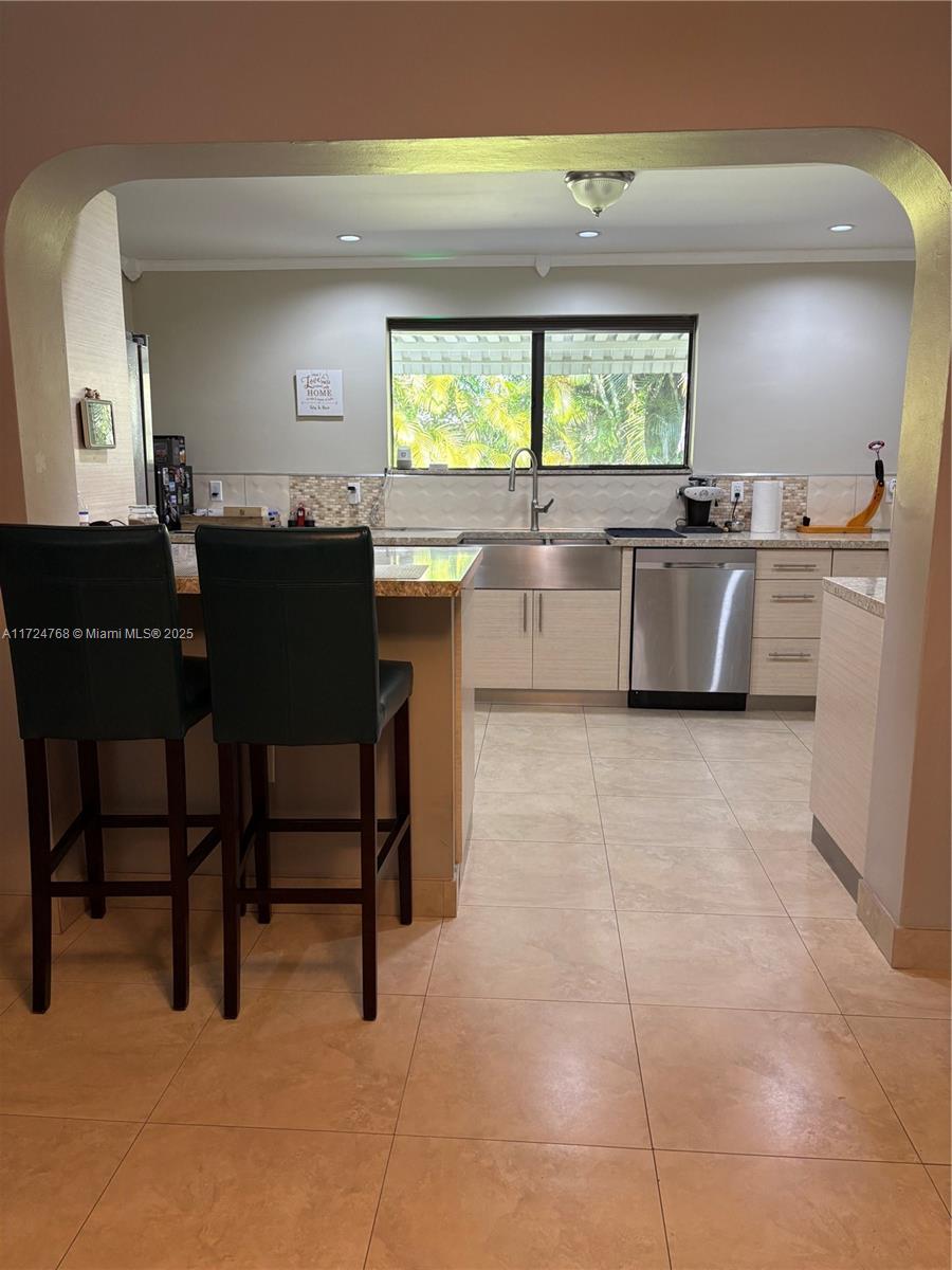 This stunning 3 bedroom with 2 and a half bathroom home offers an open split floor plan with elegant floors throughout. The oversized kitchen features quartz countertops, stainless steel appliances, and high-end wood cabinetry. Enjoy a huge family room, formal dining room, and a versatile media room that can serve as a fourth bedroom. The hurricane-impact windows and garage door provide added security. Relax in the private backyard, complete with a tiled screened porch, outdoor kitchen, and lush banana and avocado trees. Located just minutes from the beach and Gulfstream Park, this home combines comfort, style, and convenience.
