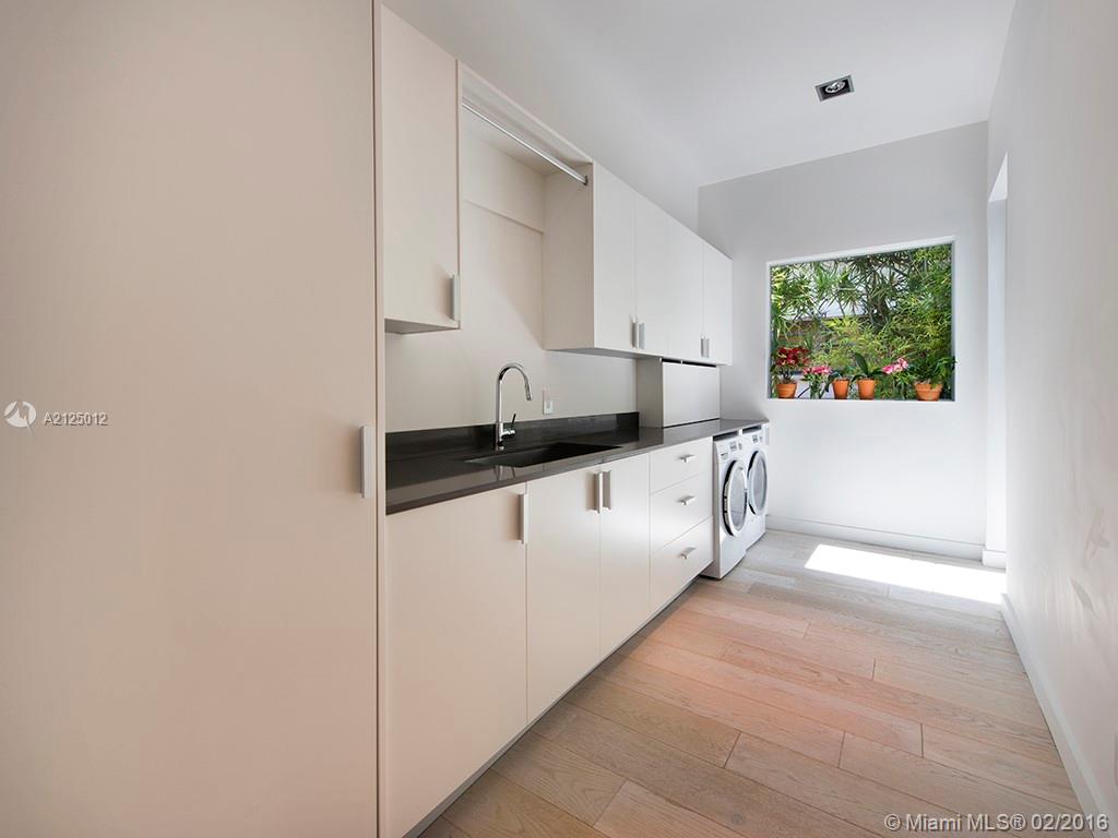 This gorgeous 6 bed 7.5 bath modern home set on the highly sought after Venetian Islands is truly a tropical oasis in the heart of Miami Beach. Features include contemporary architectural design, spacious open floor plan, white oak flooring throughout, cu stom Officine Gullo professional chef's kitchen and stunning master suite with adjoining office. Enjoy the sunsets every night from a 1600 sf rooftop deck with views of Downtown Miami. Professionally designed, this home is completely one of a kind.