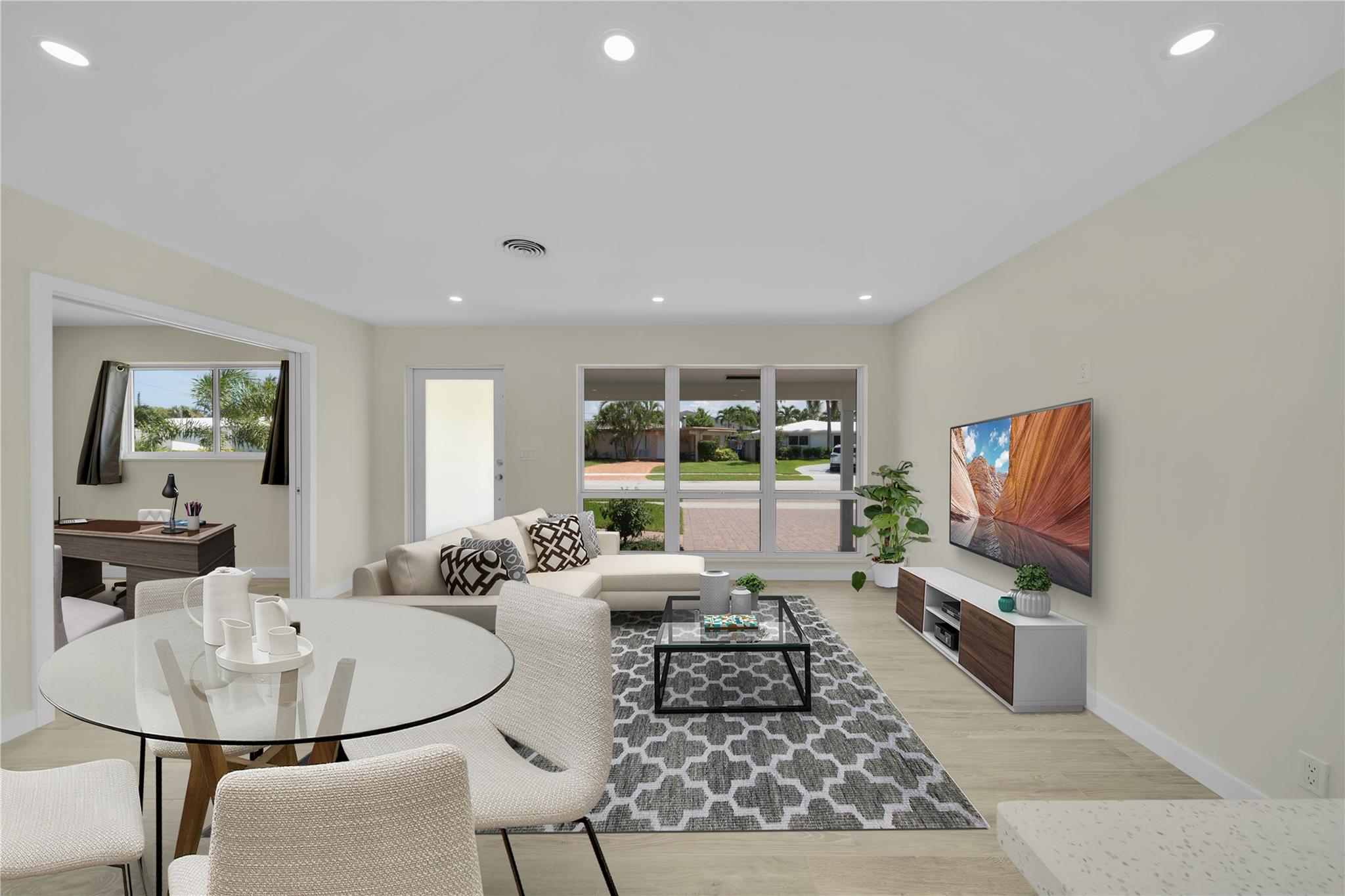 Florida Living at its Best! This fully renovated gem is the ultimate sanctuary. Just minutes from the beach. Top-rated schools, restaurants and entertainment. With NO HOA or RESTRICTIONS, you will enjoy freedom and convenience in this move-in-ready masterpiece. Upgraded for modern living. New plumbing, underground pipes, wiring, and electrical panel. Impact-rated doors and windows for safety and efficiency. Stunning kitchen and luxurious bathrooms with Quartz countertops and smart appliances. Sleek Italian porcelain tile, new A/C system, tankless water heater. Step into your private oasis, a fenced yard with an upgraded 15X30 pool, custom lighting and a sprinkler system for lush landscaping. Perfect for entertaining and relaxing in peace. Own this stylish, turnkey home today!