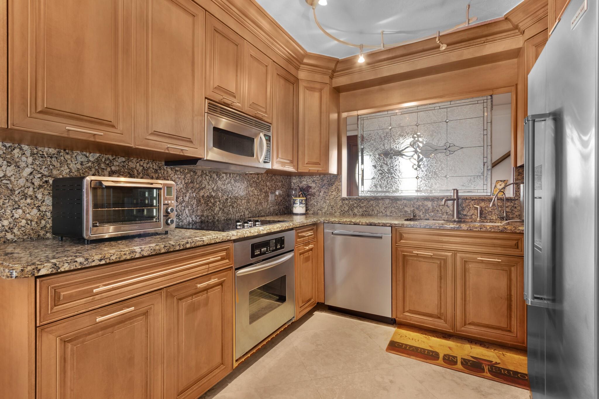 Beautiful tri-level home on an oversized lot over a 1/4 acre in the sought-after Coral Ridge neighborhood. Open floor plan with high exposed beam ceilings, granite kitchen, stainless appliances marble and hardwood floors. The main room has plenty of natural light and warmth with a stone fireplace. Split floor plan with the primary bedroom being just off the living area and the other two bedrooms upstairs. The sparkling blue pool with a privacy fence and two-car garage with extra parking on the side of the house is perfect for a boat or RV. This property sits on a ridge and is not in a flood zone. A great home and school district.
