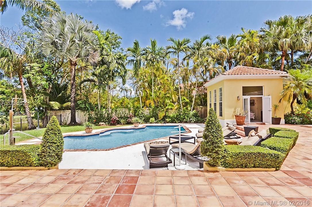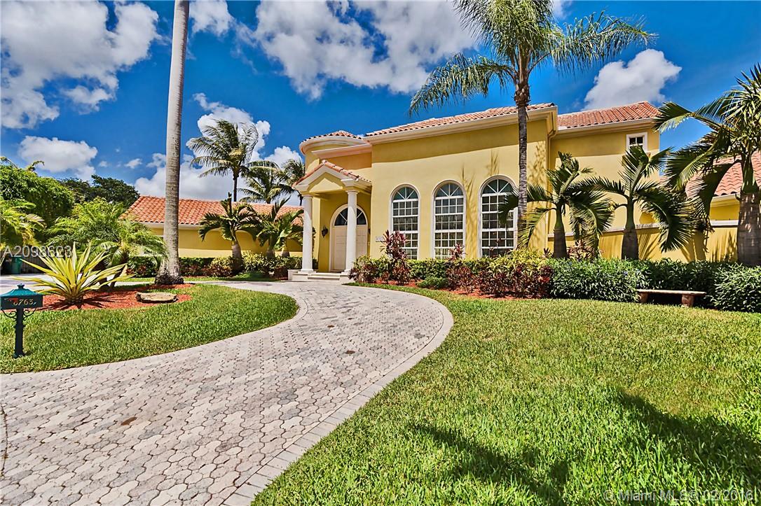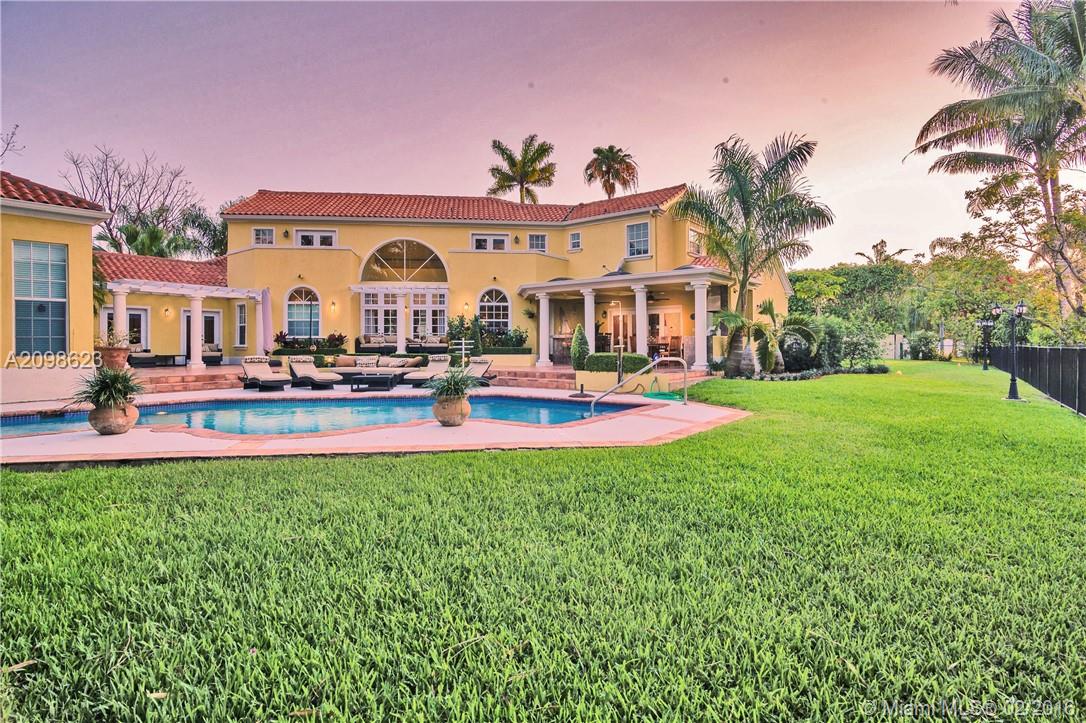Rarely available North Pinecrest Home in Private Gated Community of Only 11! This stately 2 story Mediterranean sits along canal offering serenity and privacy. Volume ceilings, great floor plan for entertaining in large living and dining areas, open kitch en and family room, master on first. 3 large bedrooms/2baths on second. All rooms open to outstanding outdoor spaces including: built in Bar B-Q, large overhang and lounging areas + separate guest house with bedroom and bath.