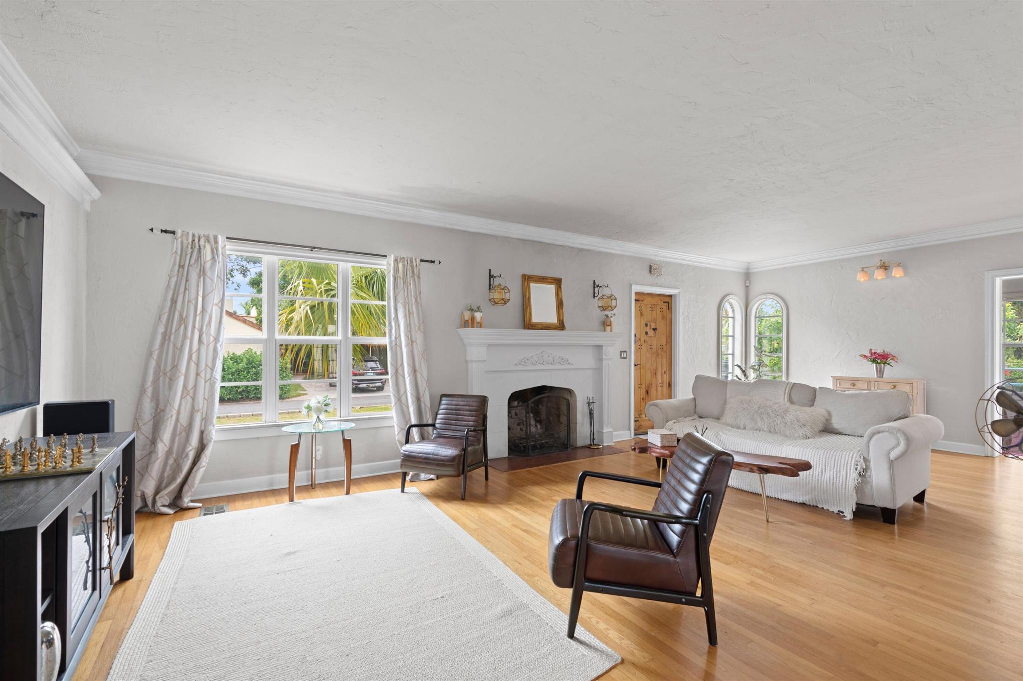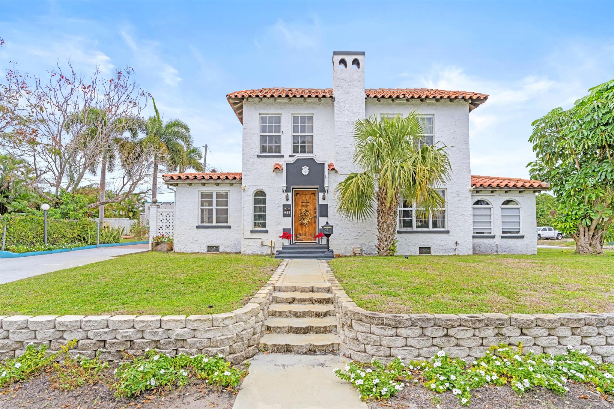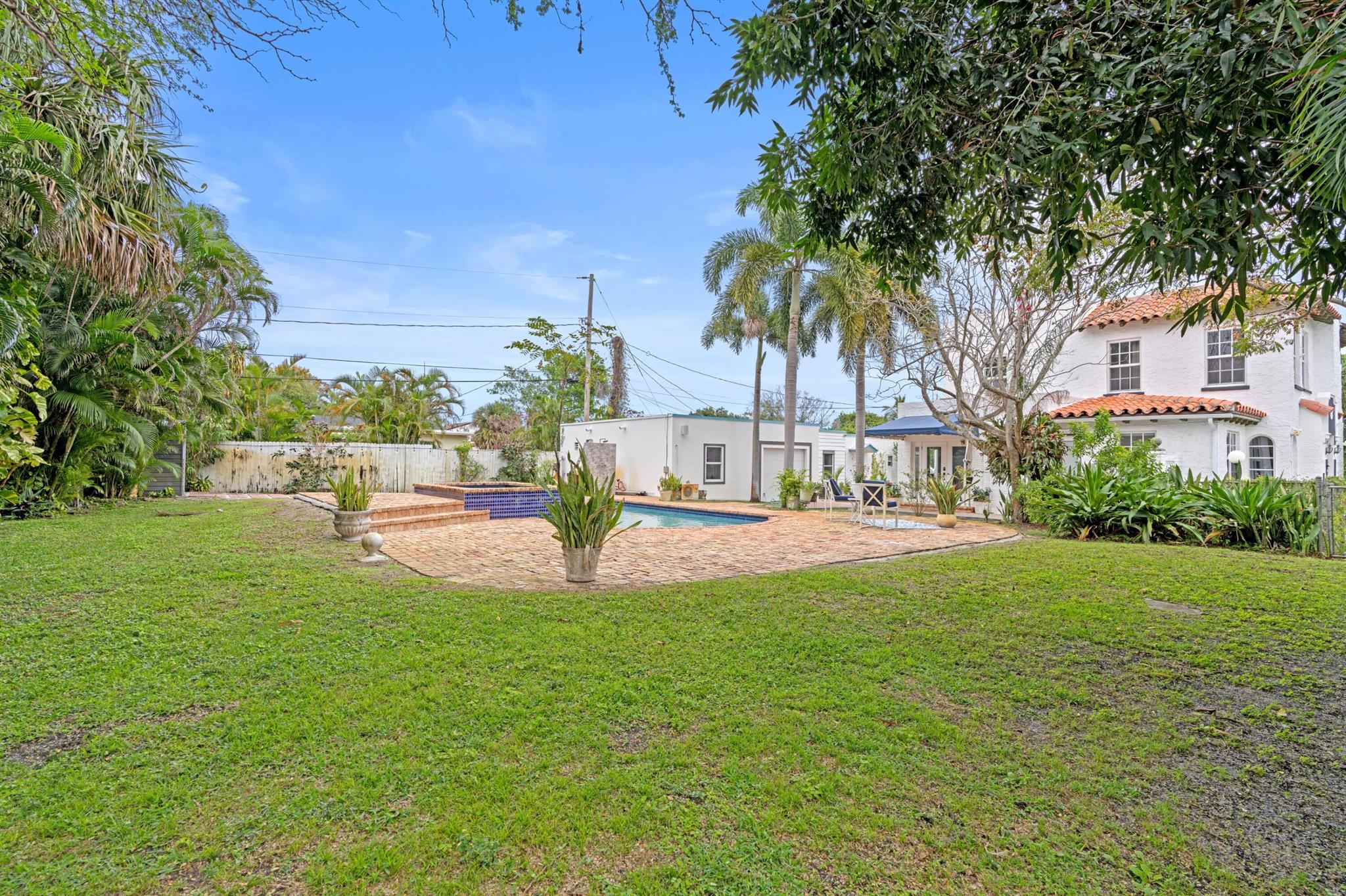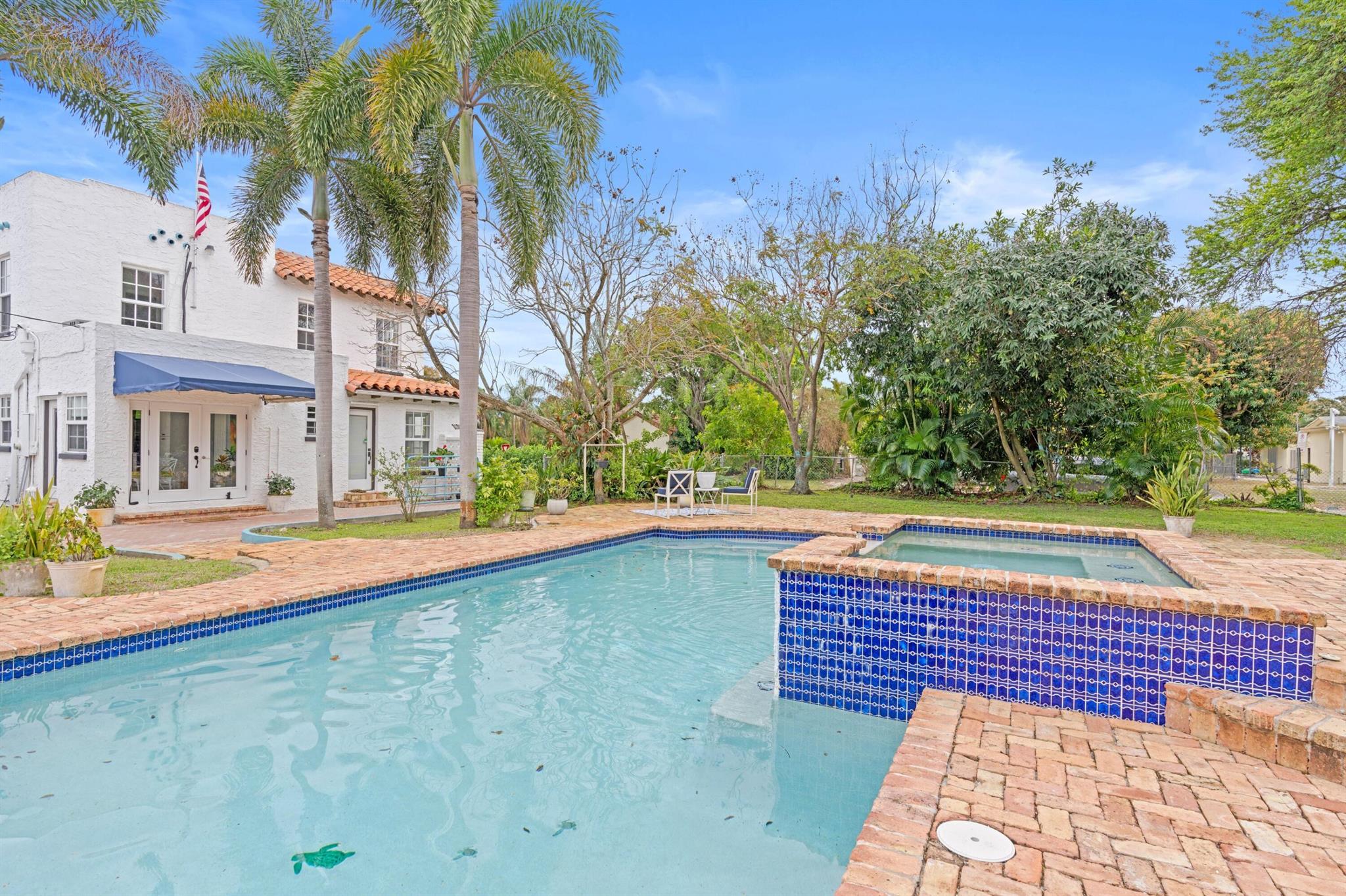 Beautifully updated mini-compound located close to antique row, and Southern Blvd. The main house is a 3 bedroom 2 bath, with a 2 BR, 1BA guest house. The home has many original feature, including; hardwood flooring, fireplace, original clay-tile floors in the dining room, original plaster walls. There is a 1st floor BR, and full bath. The kitchen is updated with quartz counters. The windows are 90% new impact glass. 2 of the 2nd floor bedrooms were combined in to a new master suite and bath, with walk-in closets. The lot is over 14K sq. ft. w/ a beautiful pool deck and yard. Brick paver patio & walkways. The guesthouse has an updated full kitchen, living area, and is a legal rental w/sep.meter. There is a large finished garage/workshop with A/C and an office area. This home has it all!