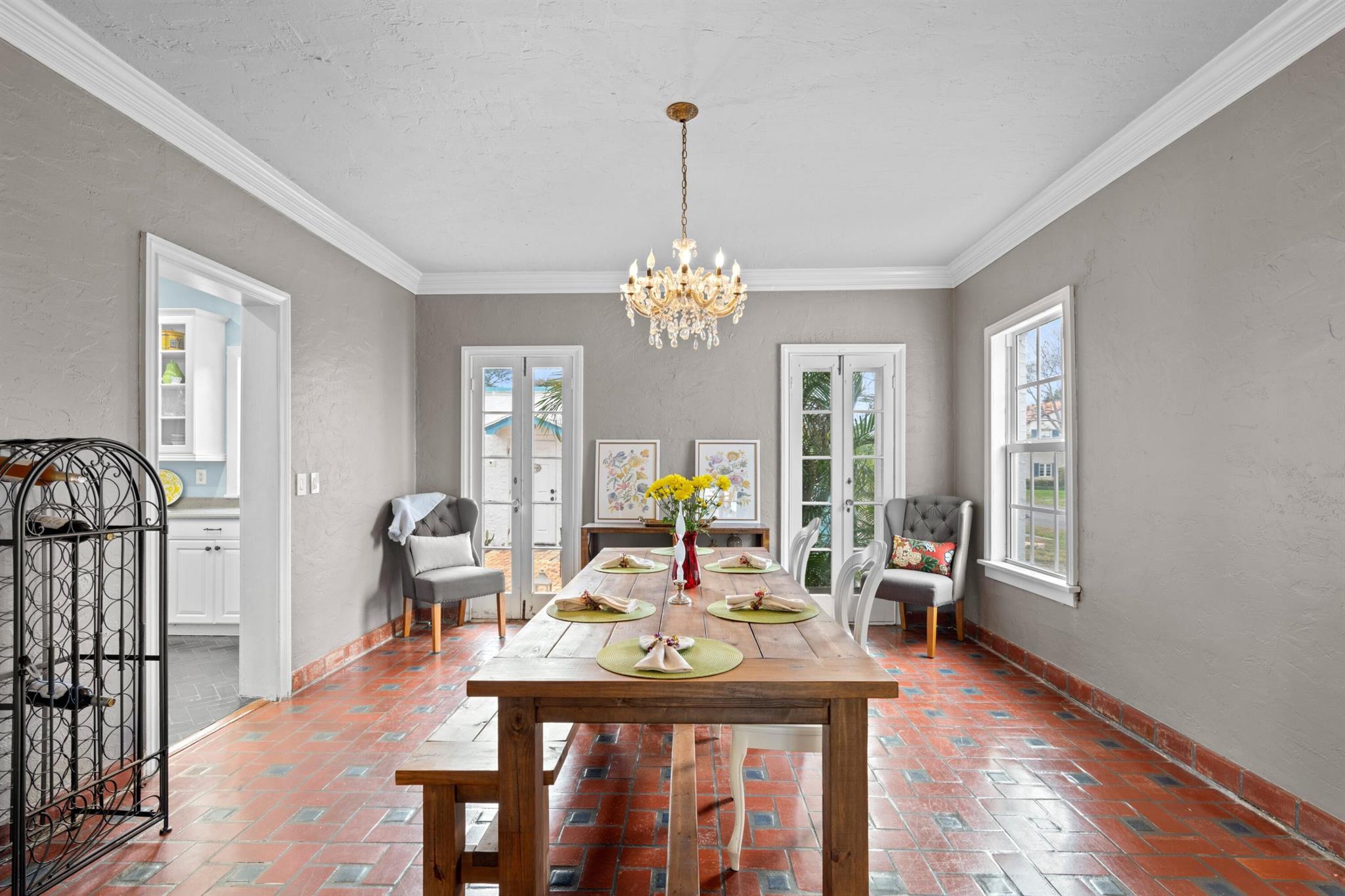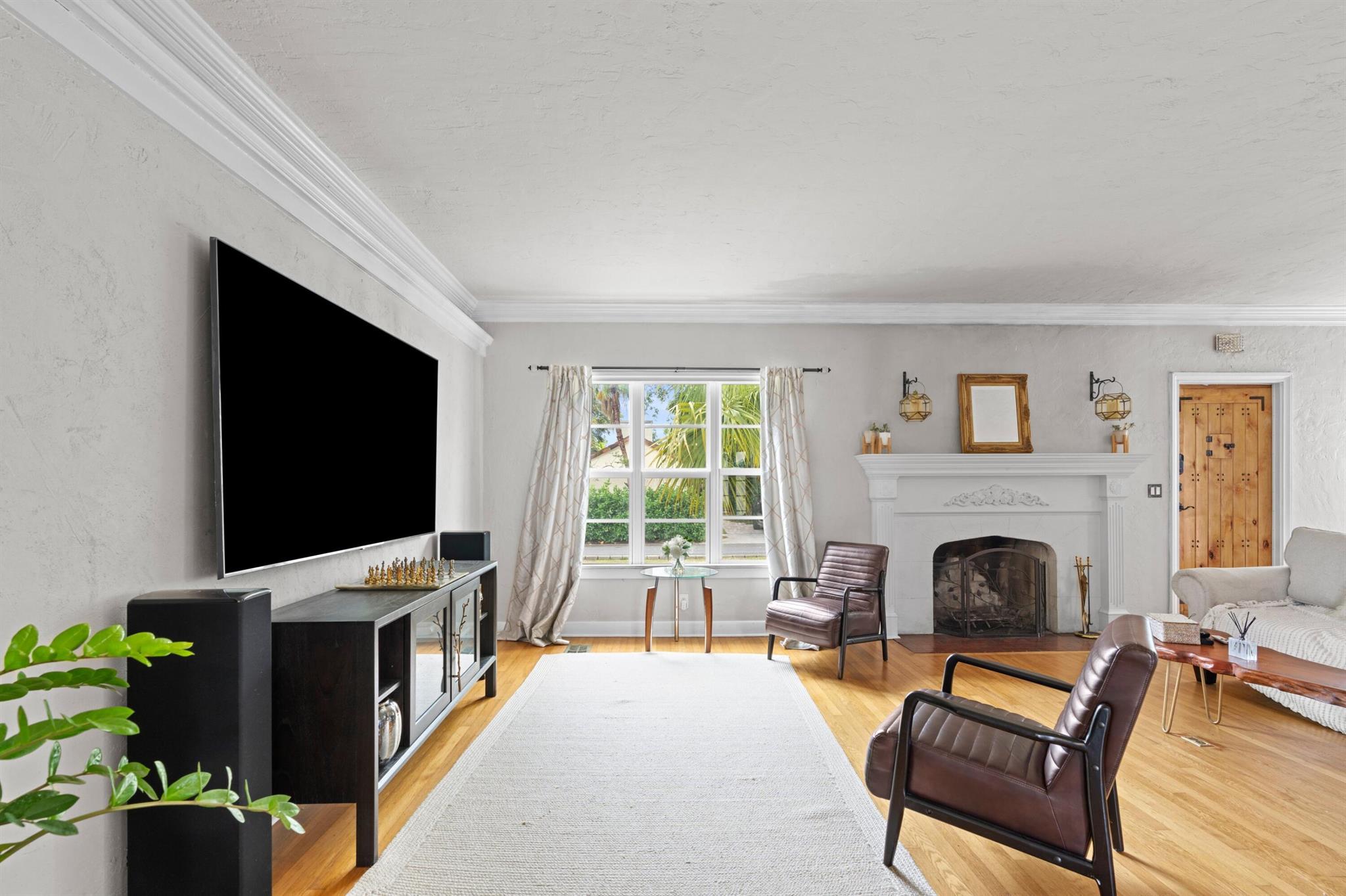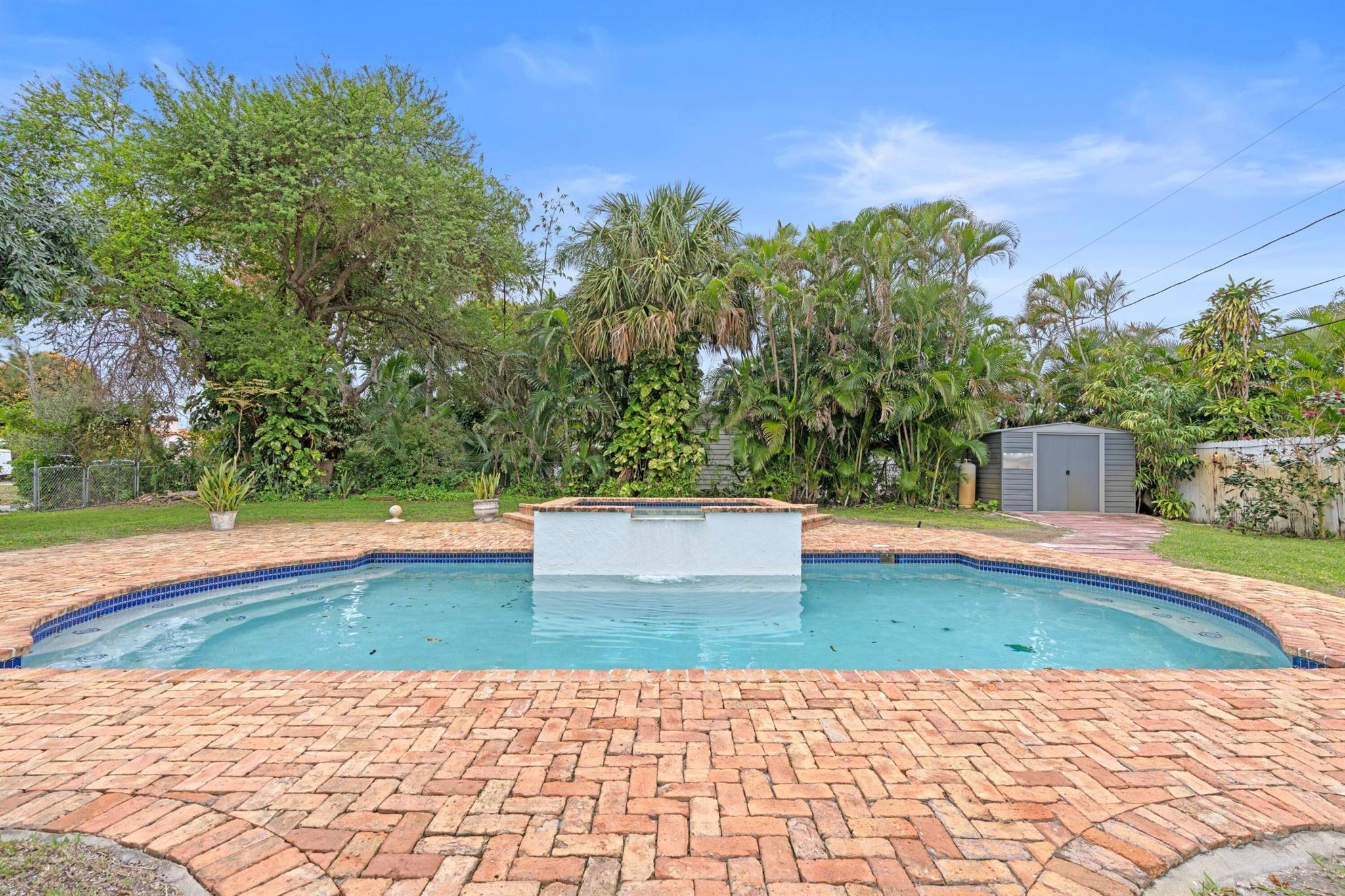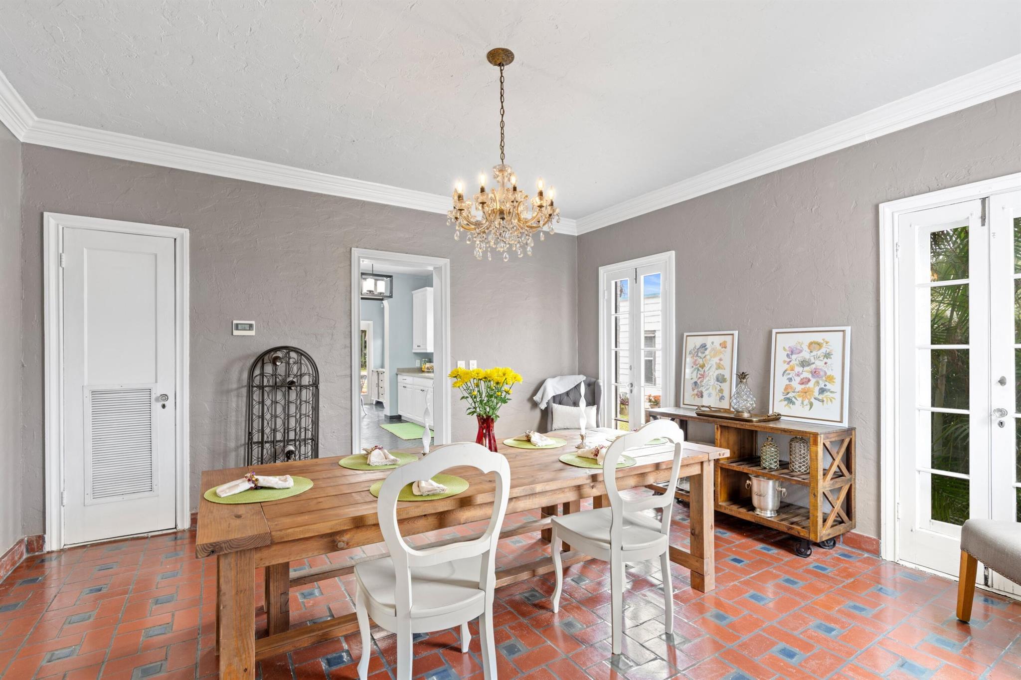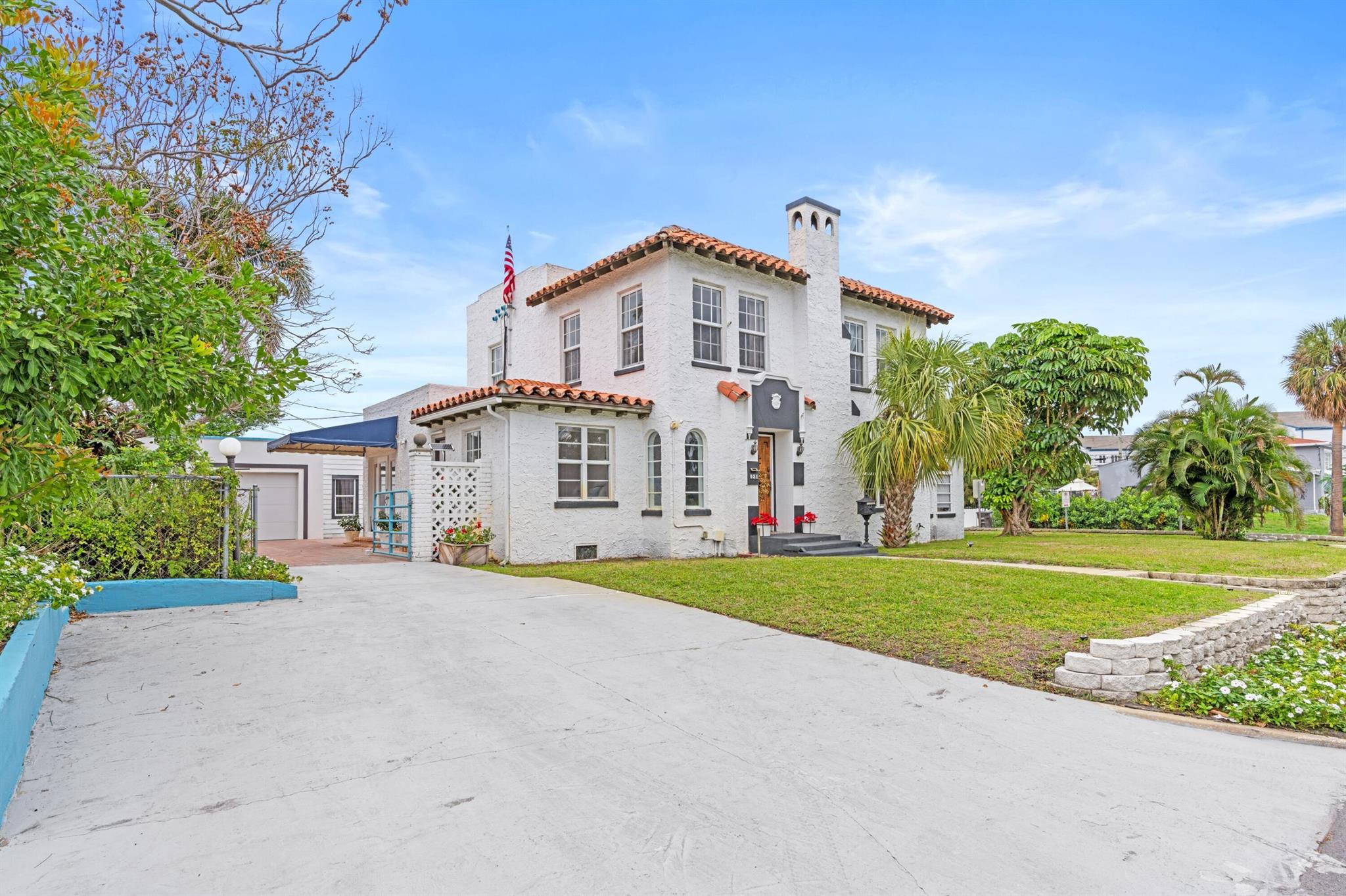 Beautifully updated mini-compound located close to antique row, and Southern Blvd. The main house is a 3 bedroom 2 bath, with a 2 BR, 1BA guest house. The home has many original feature, including; hardwood flooring, fireplace, original clay-tile floors in the dining room, original plaster walls. There is a 1st floor BR, and full bath. The kitchen is updated with quartz counters. The windows are 90% new impact glass. 2 of the 2nd floor bedrooms were combined in to a new master suite and bath, with walk-in closets. The lot is over 14K sq. ft. w/ a beautiful pool deck and yard. Brick paver patio & walkways. The guesthouse has an updated full kitchen, living area, and is a legal rental w/sep.meter. There is a large finished garage/workshop with A/C and an office area. This home has it all!