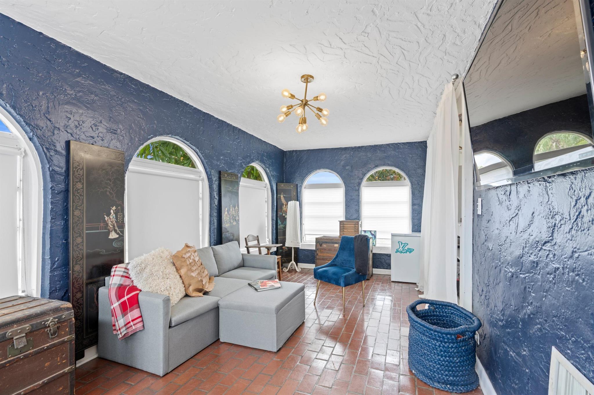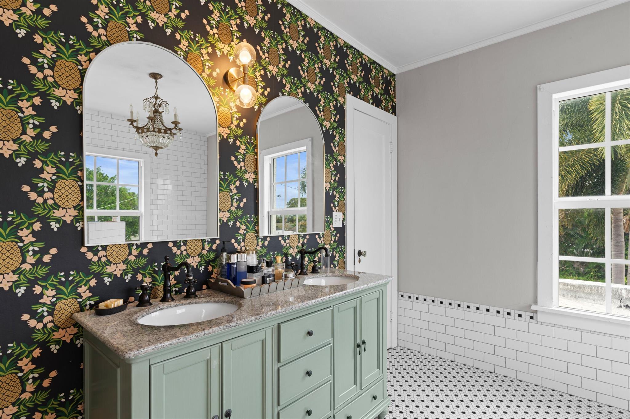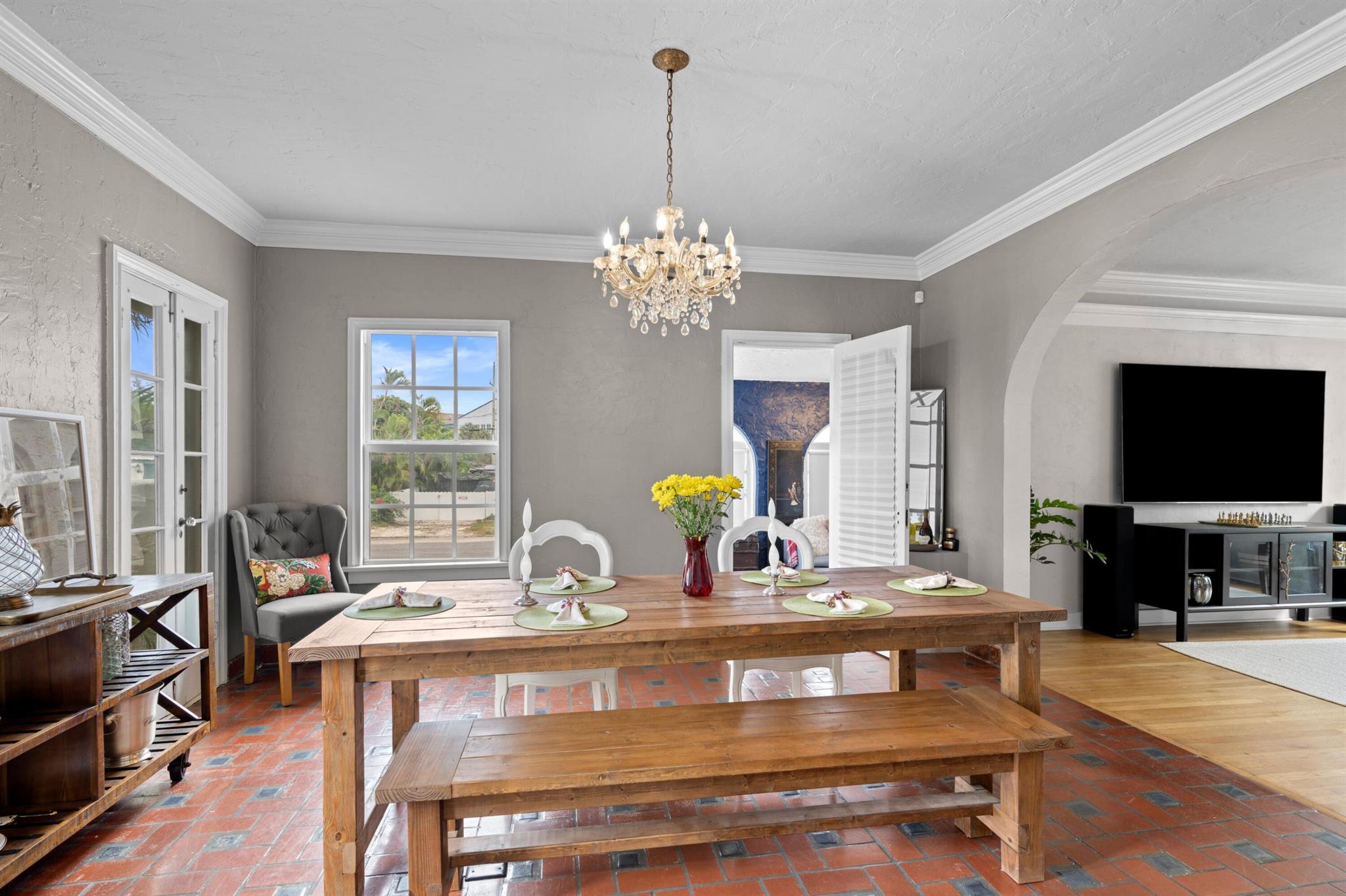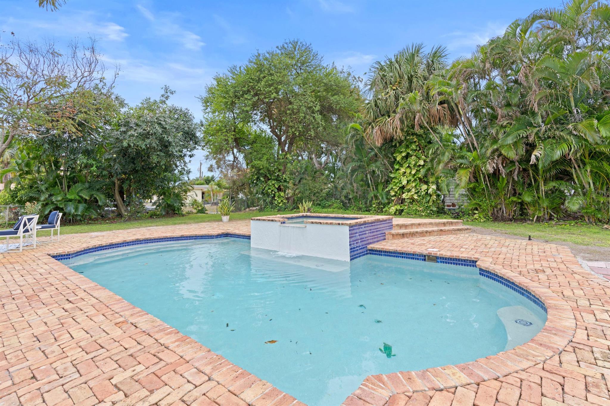 Beautifully updated mini-compound located close to antique row, and Southern Blvd. The main house is a 3 bedroom 2 bath, with a 2 BR, 1BA guest house. The home has many original feature, including; hardwood flooring, fireplace, original clay-tile floors in the dining room, original plaster walls. There is a 1st floor BR, and full bath. The kitchen is updated with quartz counters. The windows are 90% new impact glass. 2 of the 2nd floor bedrooms were combined in to a new master suite and bath, with walk-in closets. The lot is over 14K sq. ft. w/ a beautiful pool deck and yard. Brick paver patio & walkways. The guesthouse has an updated full kitchen, living area, and is a legal rental w/sep.meter. There is a large finished garage/workshop with A/C and an office area. This home has it all!