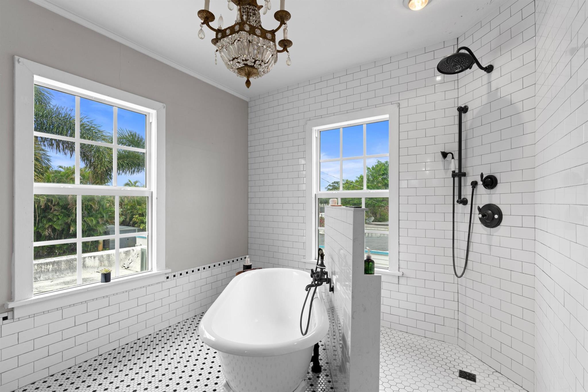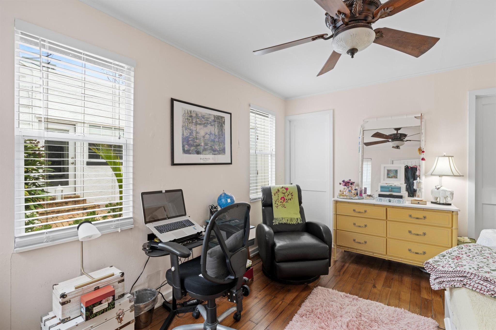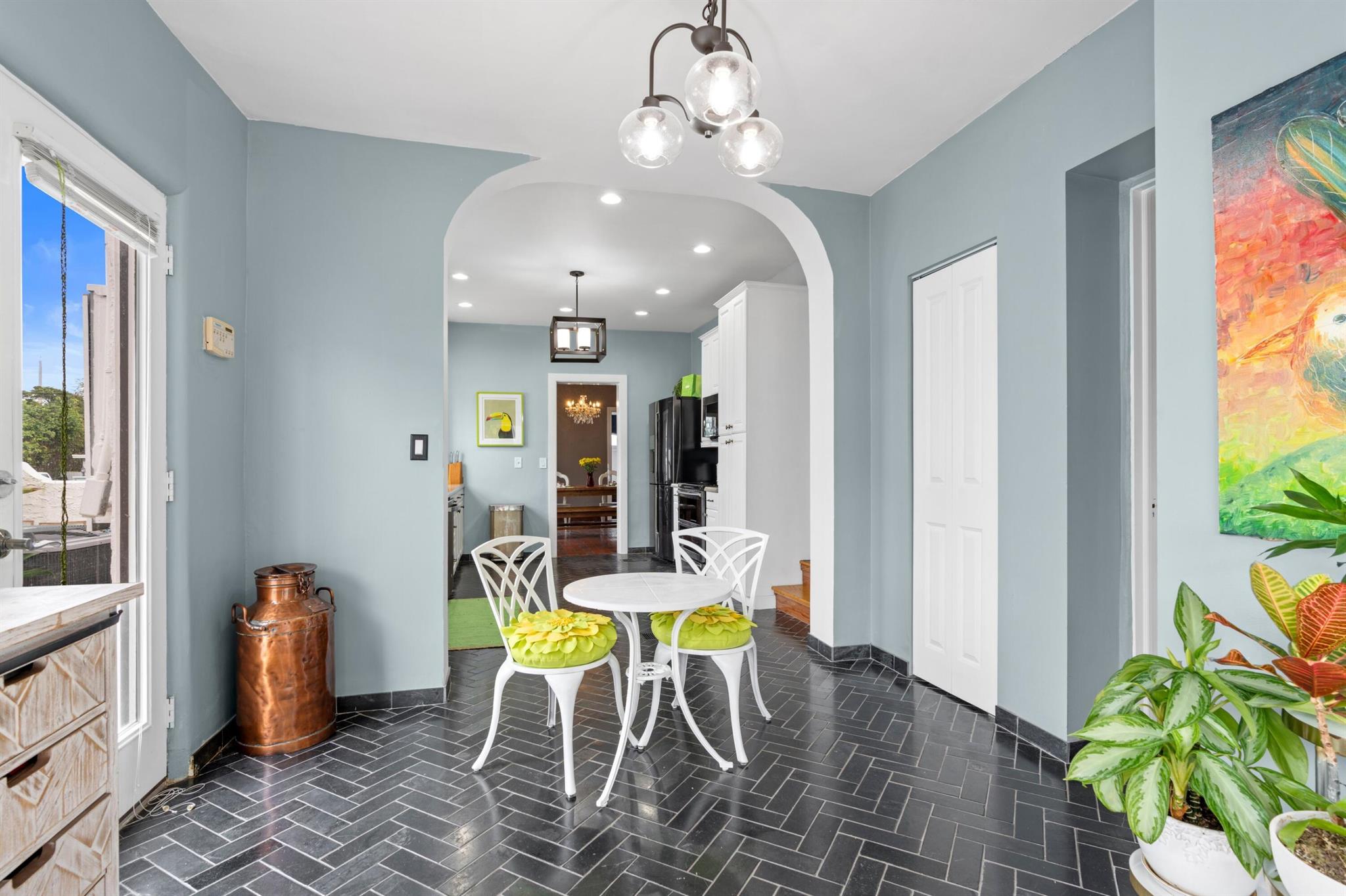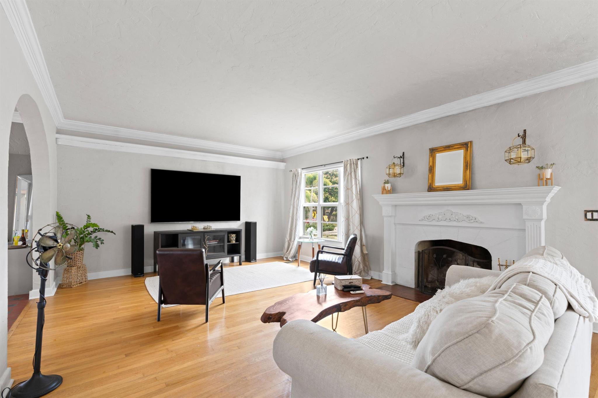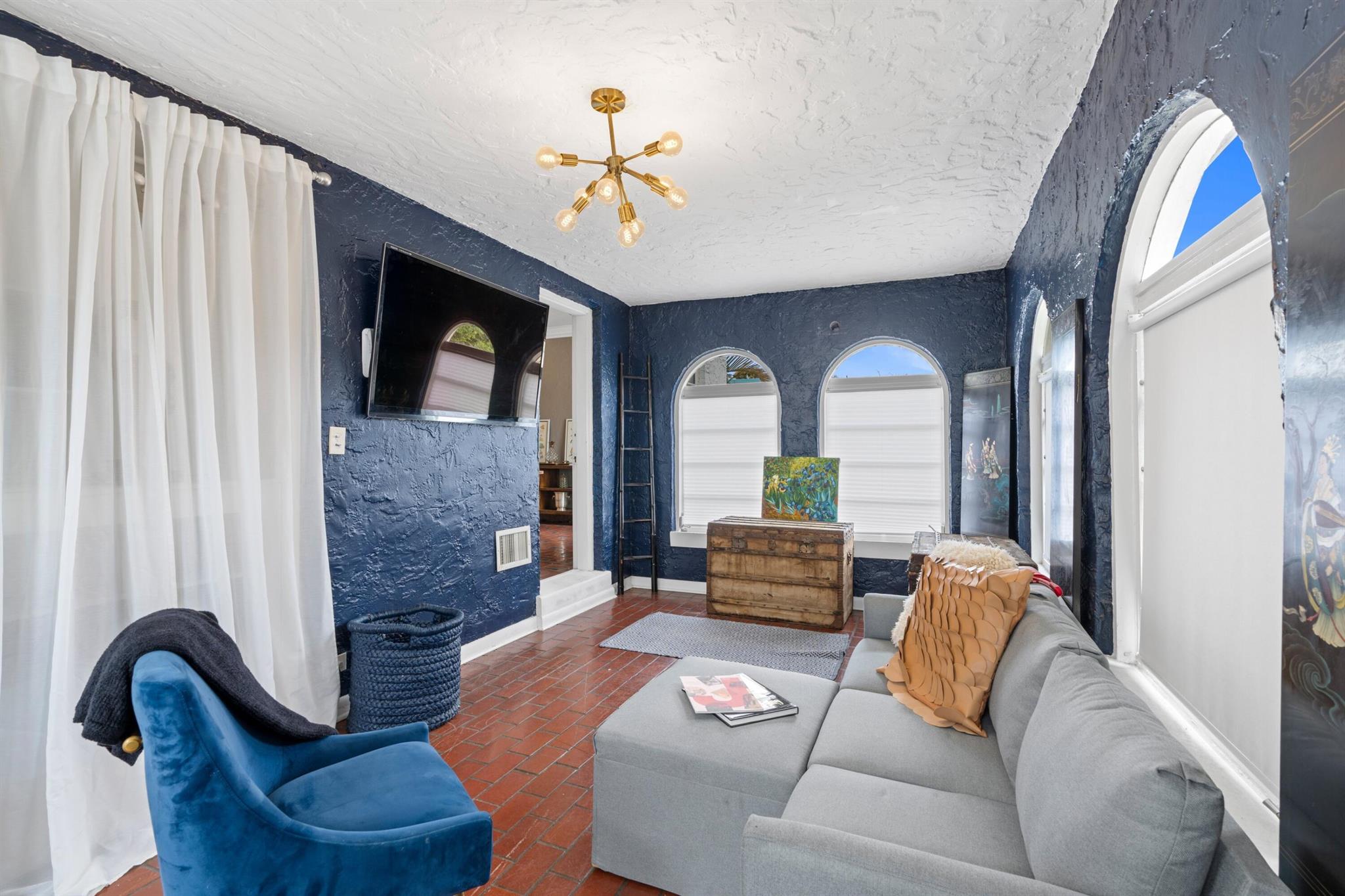 Beautifully updated mini-compound located close to antique row, and Southern Blvd. The main house is a 3 bedroom 2 bath, with a 2 BR, 1BA guest house. The home has many original feature, including; hardwood flooring, fireplace, original clay-tile floors in the dining room, original plaster walls. There is a 1st floor BR, and full bath. The kitchen is updated with quartz counters. The windows are 90% new impact glass. 2 of the 2nd floor bedrooms were combined in to a new master suite and bath, with walk-in closets. The lot is over 14K sq. ft. w/ a beautiful pool deck and yard. Brick paver patio & walkways. The guesthouse has an updated full kitchen, living area, and is a legal rental w/sep.meter. There is a large finished garage/workshop with A/C and an office area. This home has it all!