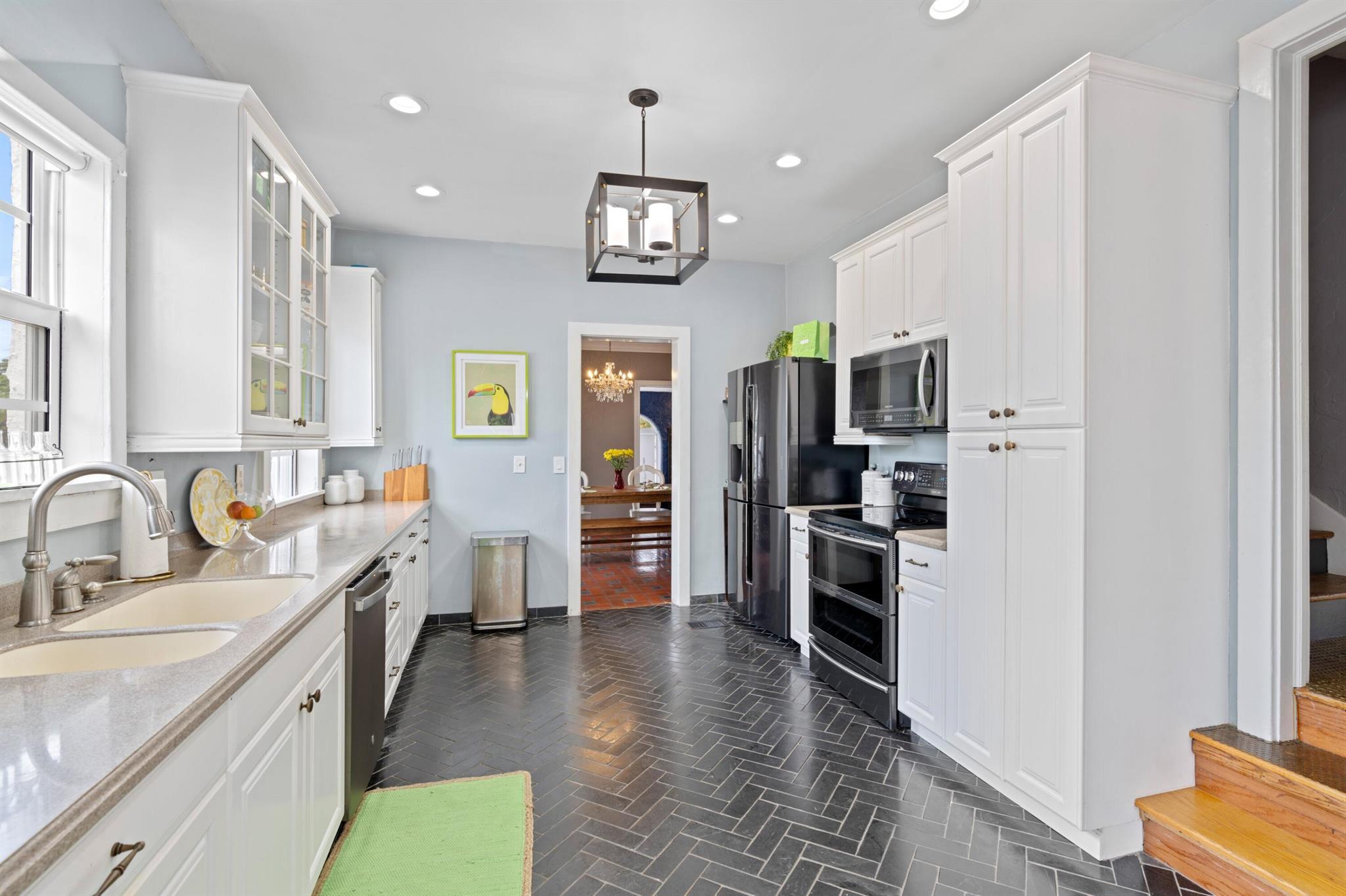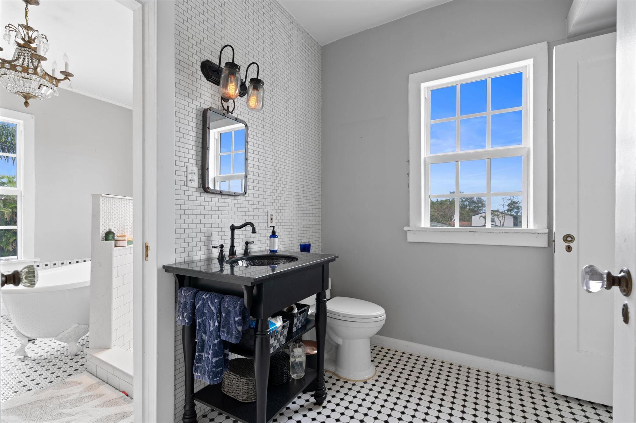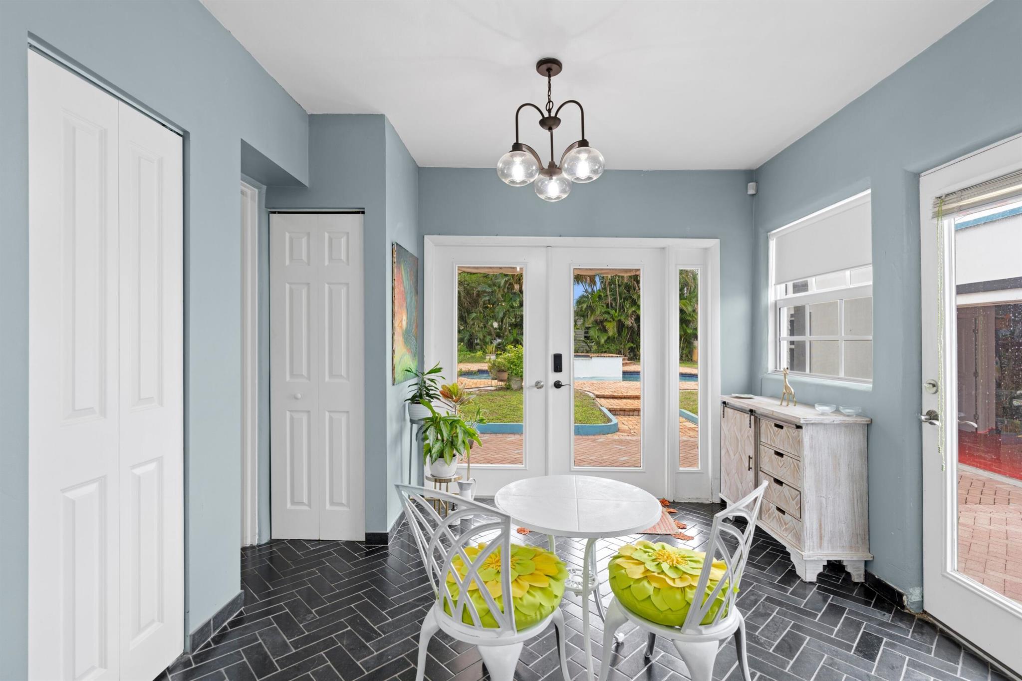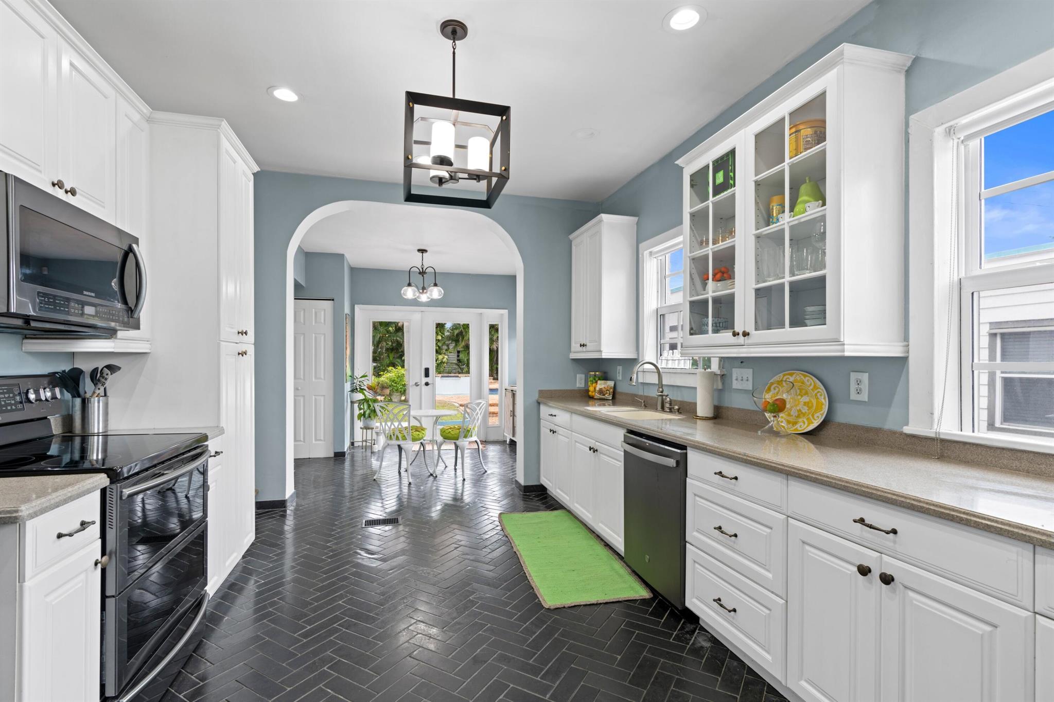 Beautifully updated mini-compound located close to antique row, and Southern Blvd. The main house is a 3 bedroom 2 bath, with a 2 BR, 1BA guest house. The home has many original feature, including; hardwood flooring, fireplace, original clay-tile floors in the dining room, original plaster walls. There is a 1st floor BR, and full bath. The kitchen is updated with quartz counters. The windows are 90% new impact glass. 2 of the 2nd floor bedrooms were combined in to a new master suite and bath, with walk-in closets. The lot is over 14K sq. ft. w/ a beautiful pool deck and yard. Brick paver patio & walkways. The guesthouse has an updated full kitchen, living area, and is a legal rental w/sep.meter. There is a large finished garage/workshop with A/C and an office area. This home has it all!