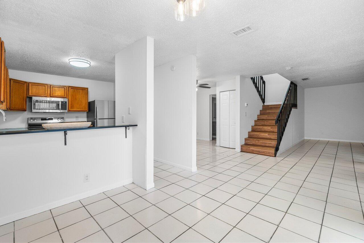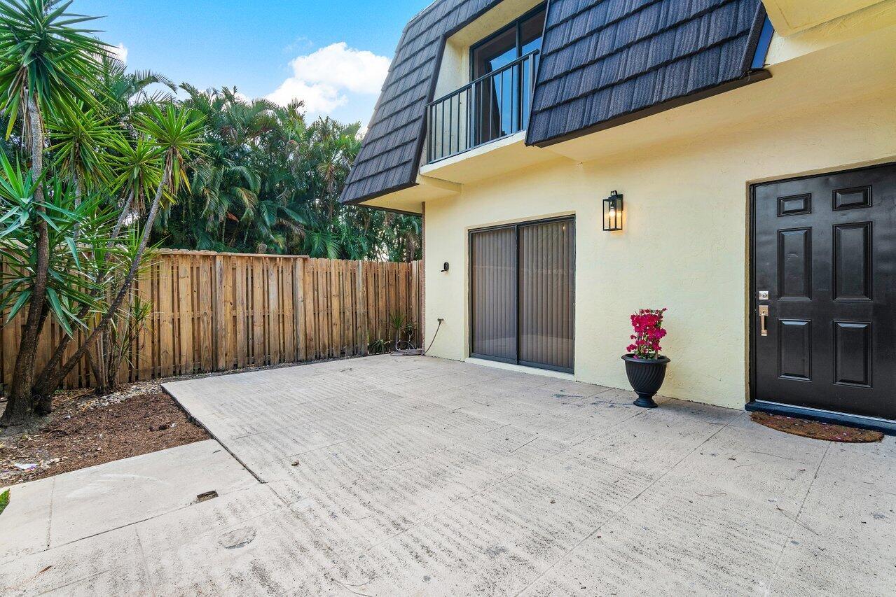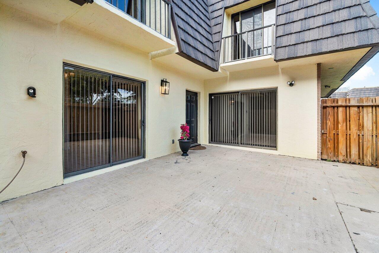 This beautiful and well-maintained 3-bedroom, 2.5-bathroom residence boasts durable CBS construction and offers a perfect blend of comfort and style. Enjoy serene mornings on your private balconies, accessible from each bedroom, overlooking a spacious patio--perfect for entertaining or relaxing. This spacious townhome (1788 sqft of living space!!) is ideal for hosting gatherings. Many NEW features, such as...stainless steel appliances, light fixtures, ceiling fans, water heater, updated electric and newly painted interior. Great central location, close to PBIA, beaches and Palm Beach outlet mall. Don't miss the opportunity to make this beautiful home yours! HOA maintains ROOF!