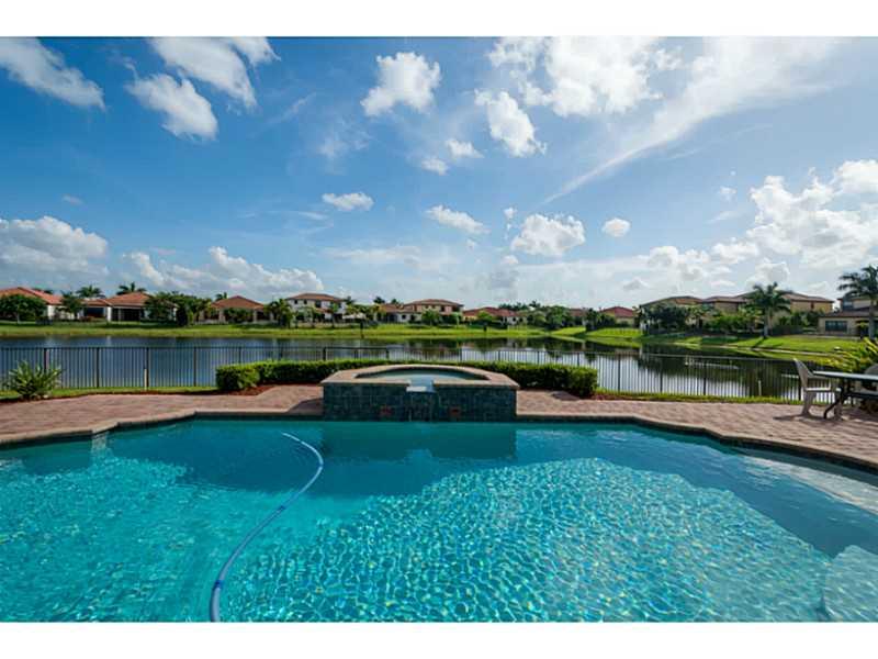 OVERSIZED LOT! RARELY AVAILABLE LE VERONA MODEL HOME WITH A SALT WATER POOL SYSTEM OFFERING A HIGHLY DESIRABLE OPEN FLOOR PLAN WITH 5 BEDROOMS & 4.5 BATHS. THE HOME FEATURES A STATE OF THE ART KITCHEN WITH DOUBLE OVENS, DIAGONAL MARBLE & HAND SCRAPED WOOD FLOORS, 22' CEILINGS, CROWN MOLDING, IMPACT GLASS, JACUZZI TUB IN THE OVERSIZED MASTER BATH, 3 A/C UNITS & 3 CAR GARAGE. A+ RATED SCHOOOLS, MINUTES FROM MAJOR HIGHWAYS.