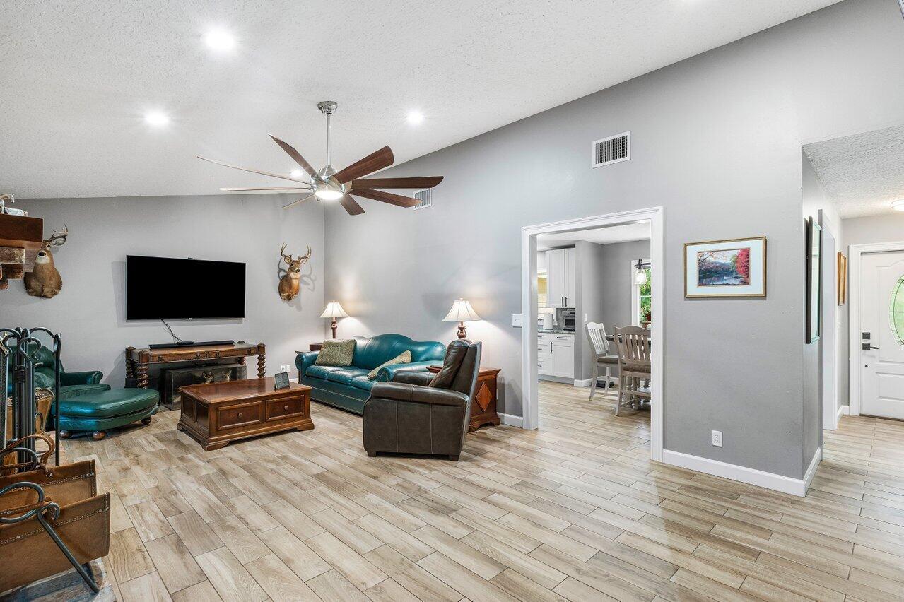 If your looking for you own slice of old Florida look no further than this stunning modern farmhouse. This amazing acreage home is set on a unique 1.81 acre lot that is fully fenced and filled with stunning live oaks that give this home a look like no other. Once you make your way into this beauty you will be astonished by the detail given to each room. From the recessed lighting to the fully trimmed out Impact windows. No detail was over looked. The stunning kitchen features quarts tops an new top of the line appliances. The bathrooms have been completely remolded and feature custom showers with floor to ceiling tile and stunning vanities. This home also has room for all the toys and a place to store them, as it features pole barn with small shop . This is a must see