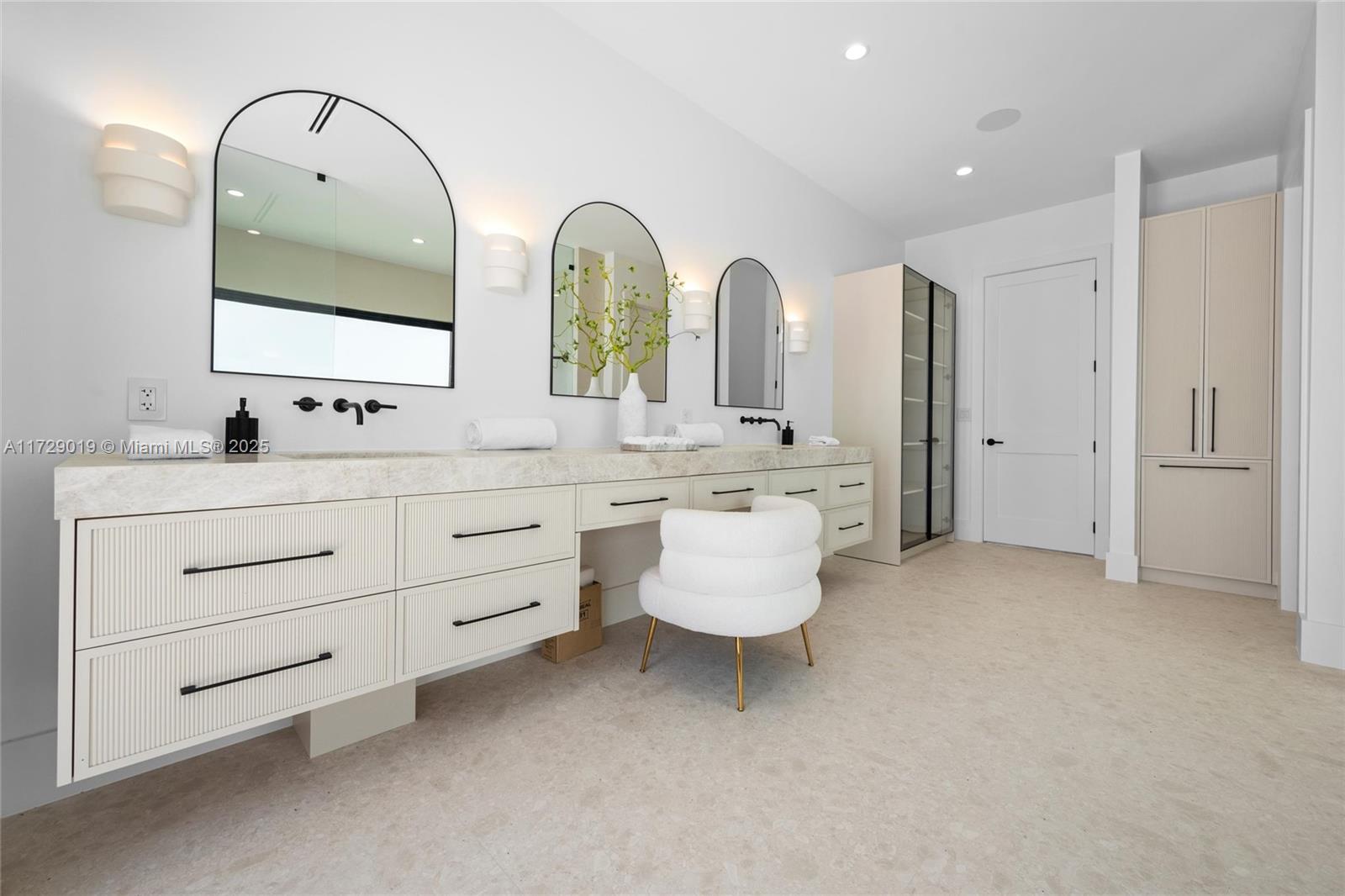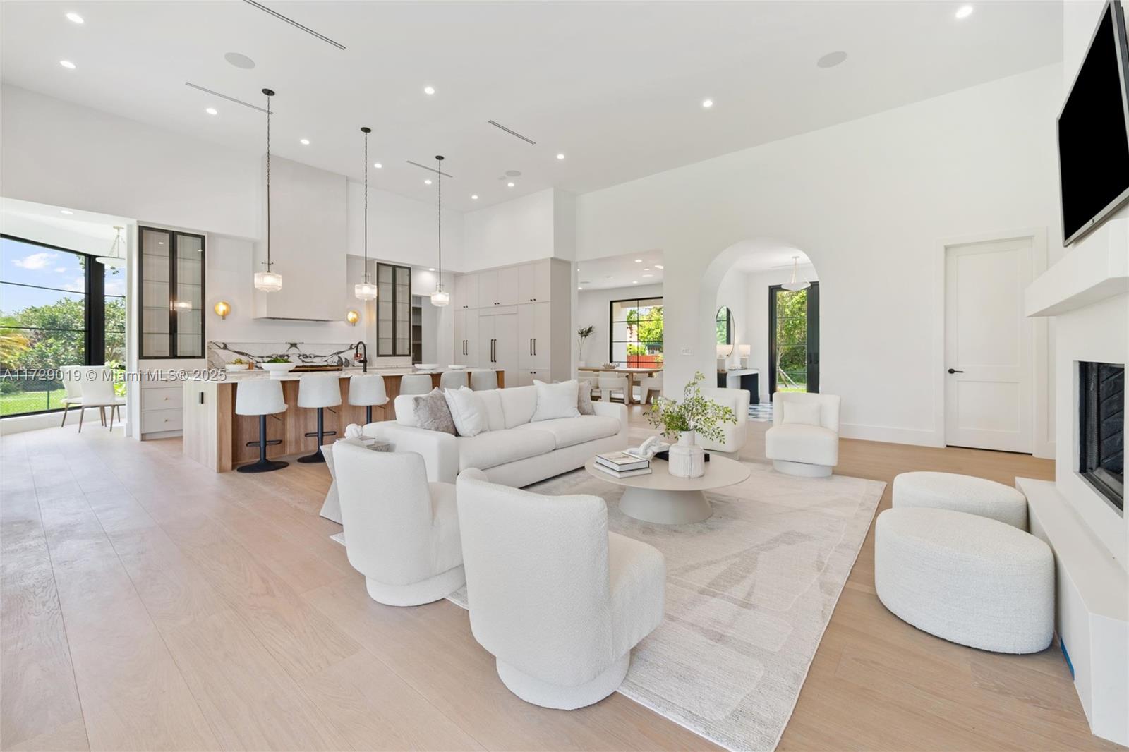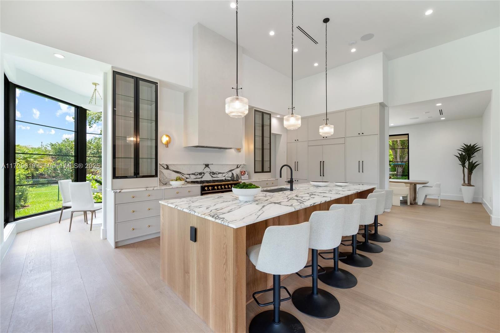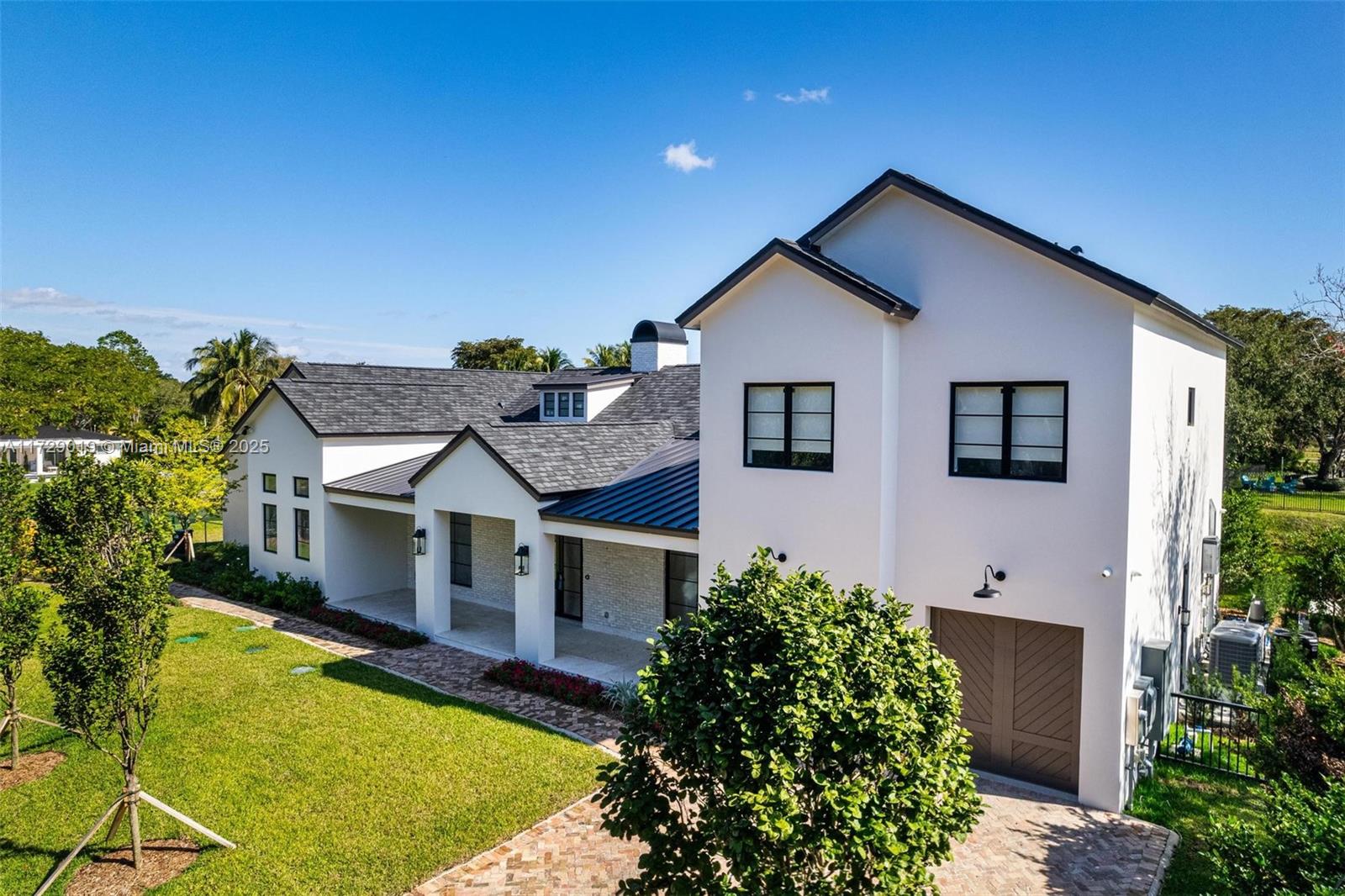 Exquisite Pinecrest residence just completed with CO ready for immediate occupancy! This contemporary modern farmhouse is one of a kind sitting on a quiet dead-end street with canal on 2 sides. Integrating a seamless indoor/outdoor living experience with natural white oak wood floors which blend the immaculate architecture & expressive details. With 6,389 SF this home includes 4 full bedrooms plus an office downstairs, 1 bedroom upstairs plus a flex space which can be used as a guest quarters, gym, office and/or home theater. 5.5 bathrooms inside main home plus full cabana bath. Must see it in person to appreciate! 2 car garage with lift space.