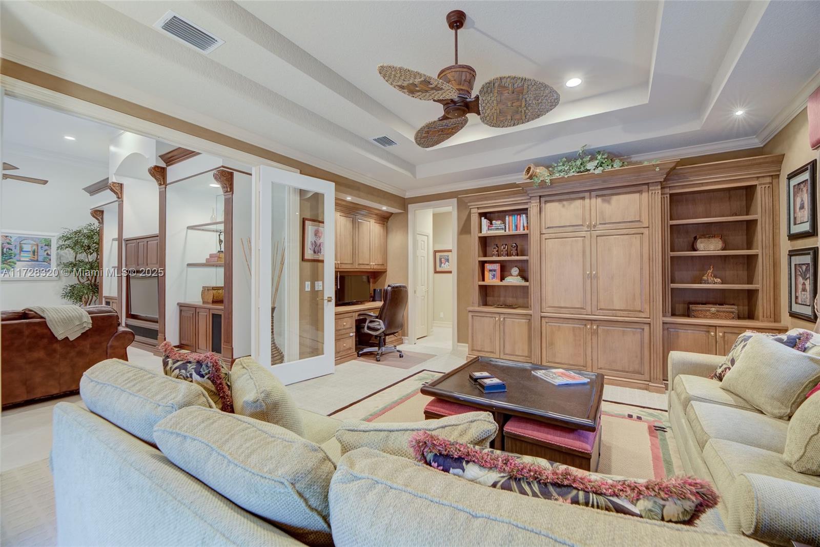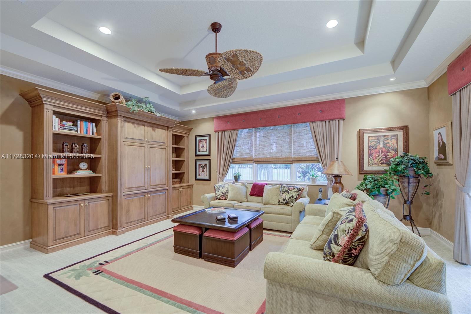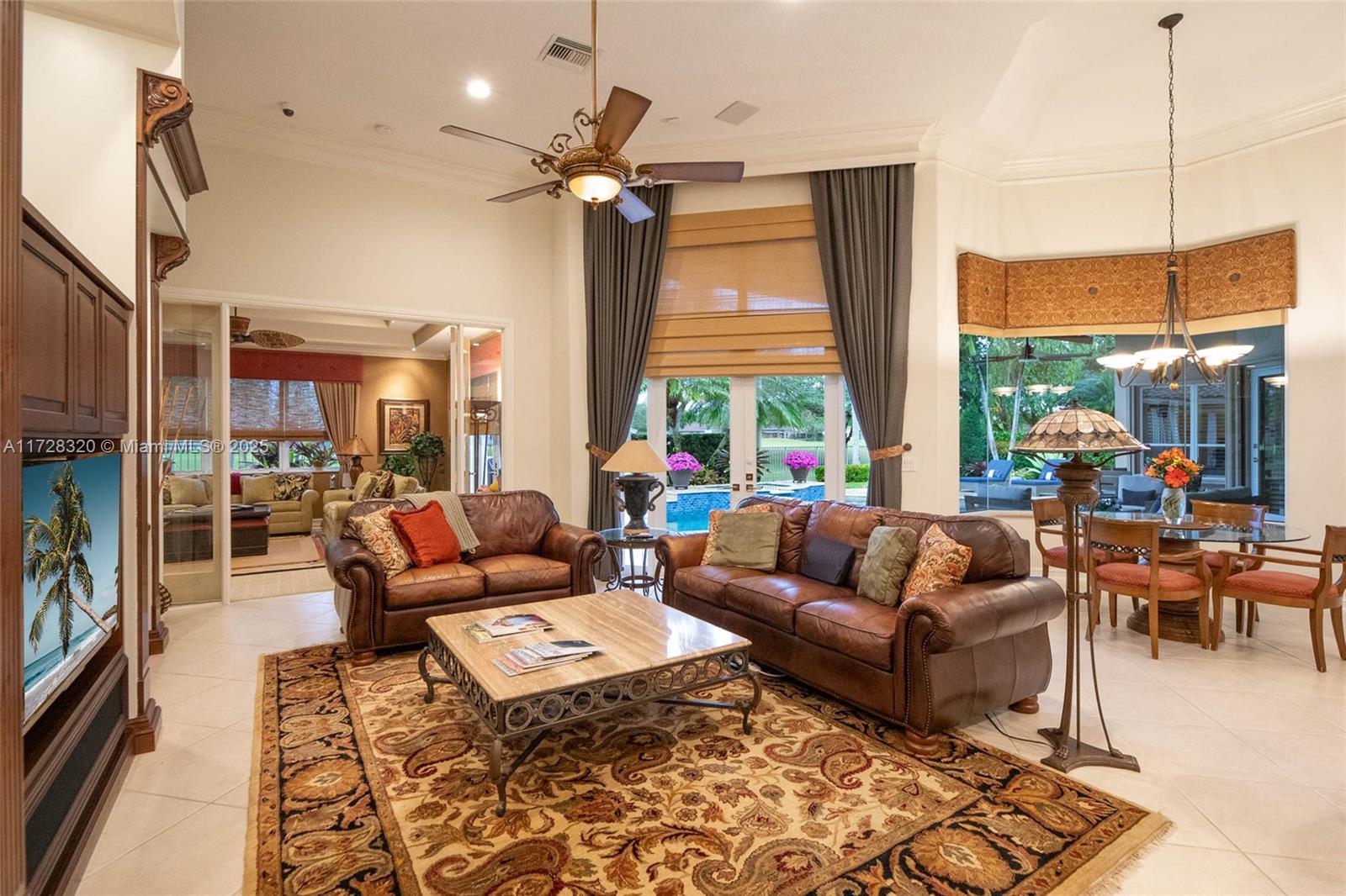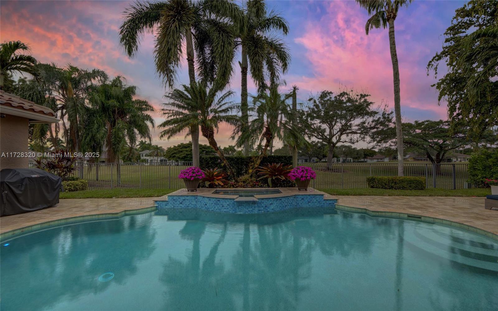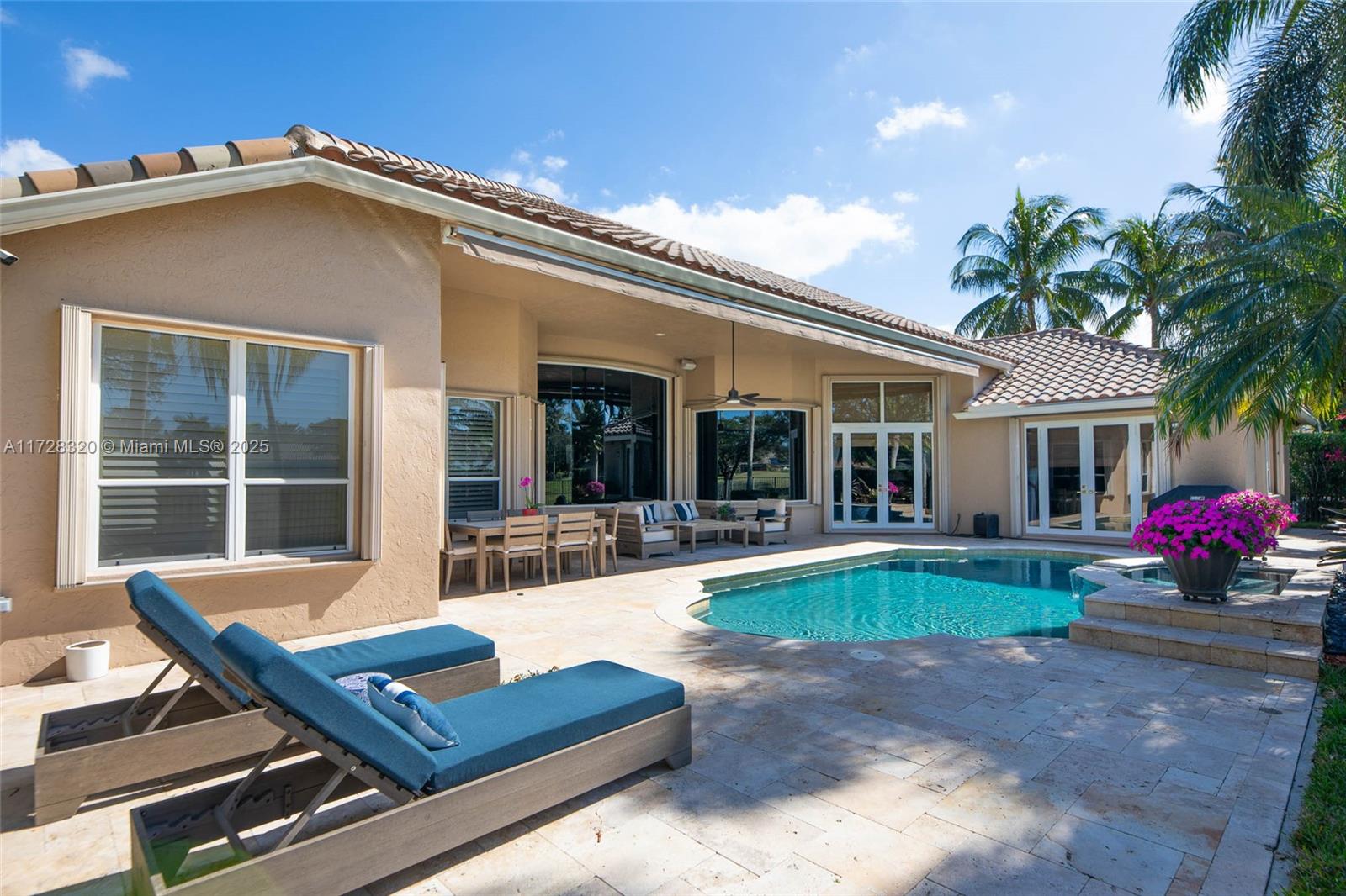 Discover this exquisite 4-bed 3.5-bath w/office & den pool home nestled in the prestigious gated community of Weston Hills. Thoughtfully designed split floor plan has soaring ceilings & an abundance of natural light. Gourmet kitchen features granite countertops, ample cabinetry, a walk in pantry with seamless flow into the expansive family room. Step outside to a tranquil backyard oasis, recently re-surfaced pool, spa & stunning travertine deck w/panoramic golf course views galore. Retreat to the luxurious owners suite, complete with a spa-like bath, dual walk-in closets, & private sitting room or gym. With a newer tile roof, 3-zone HVAC, full hurricane protection & meticulous attention to detail, this elegant residence exudes pride of ownership. A-rated schools & coveted Weston lifestyle.