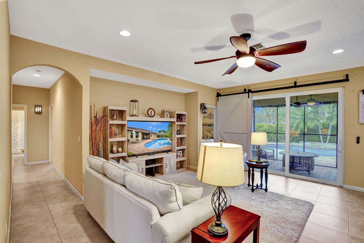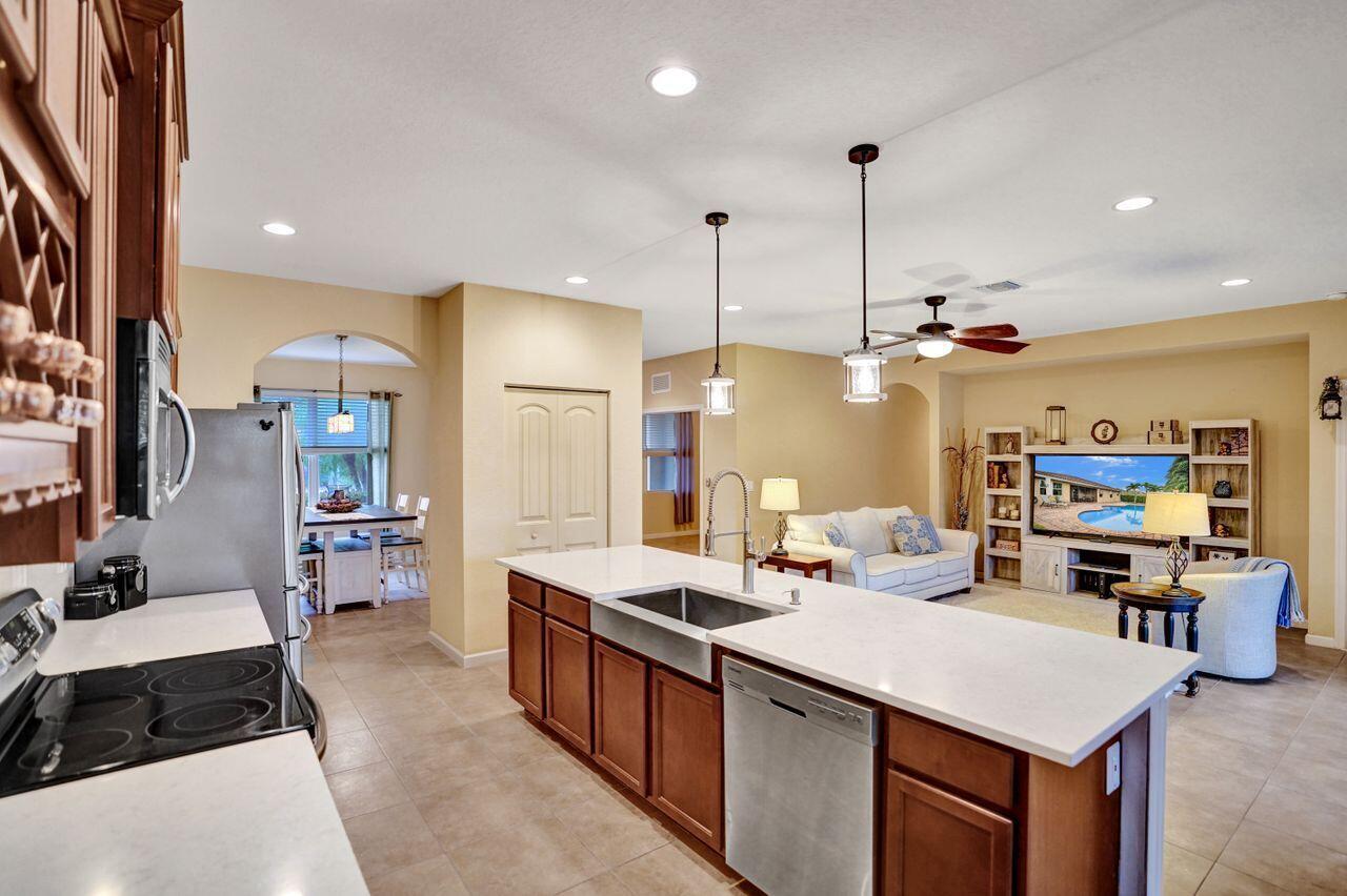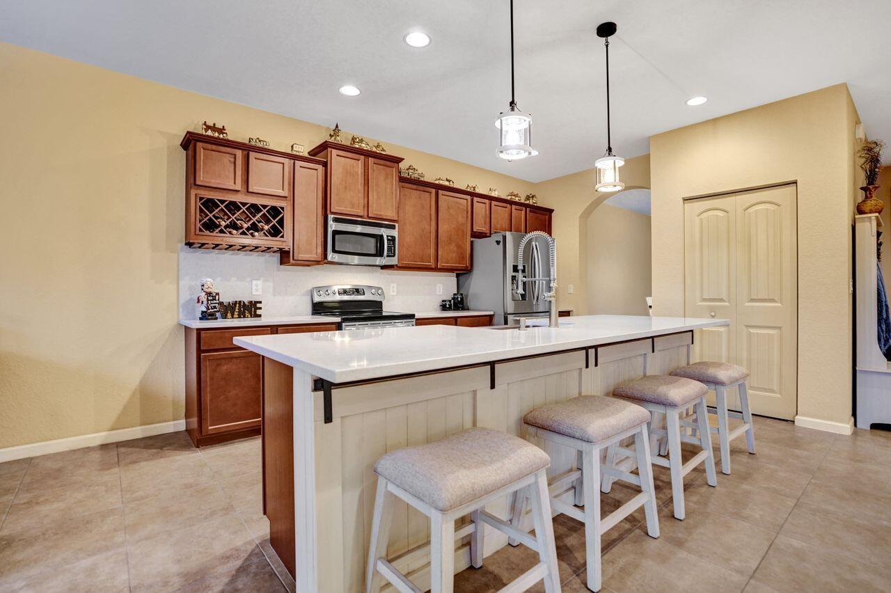 Immaculate pool home with 3 bedrooms, spacious den & 2 bathrooms on a large corner lot. Upgraded kitchen showcases a newly redesigned expansive quartz center island & counters that overlook the eat-in kitchen nook & family room. Open concept floor plan that flows from room to room for easy entertaining & relaxed living. The primary bedroom, family room & kitchen nook all overlook the private backyard & sparkling pool highlighted by waterfall and sunning shelf features. The low HOA fee covers landscaping, irrigation, park like settings, pickleball & tennis courts. At price, this move-in-ready home comes with a 1-year American Home Shield home warranty.The gated community of Whispering Woods is conveniently located near excellent schools, restaurants, movies...