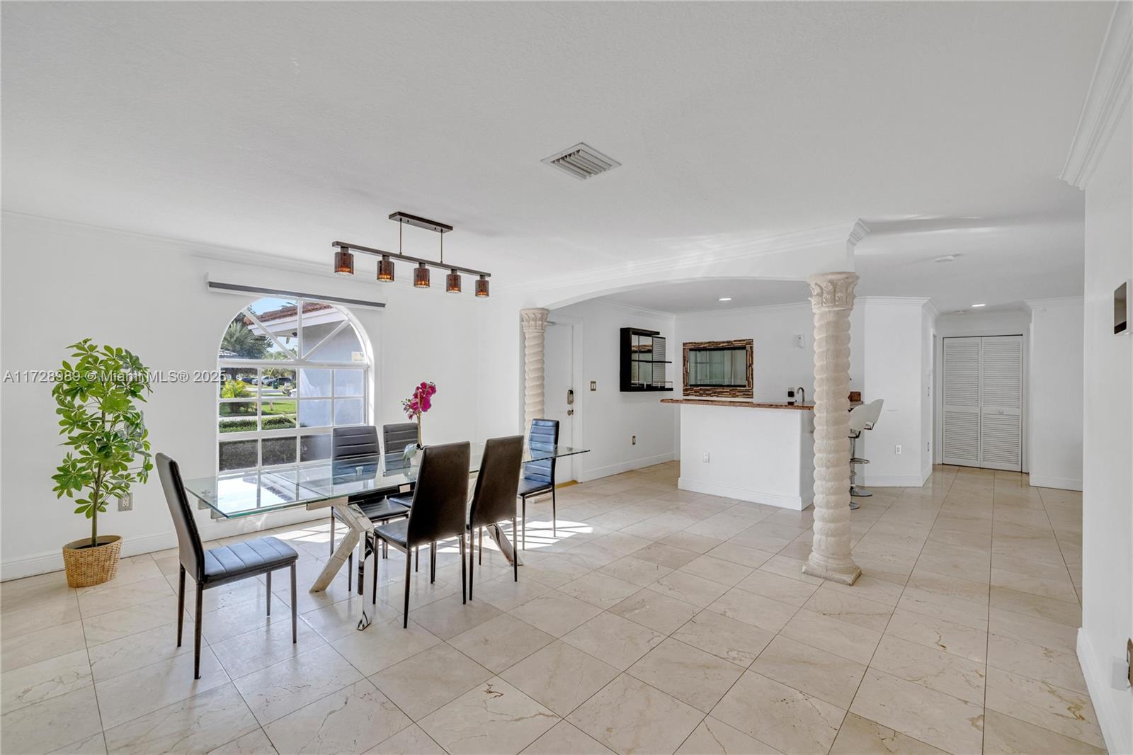 The Entertainers dream awaits! This corner lot property has it all! Beautiful custom staircase elegantly greets visitors while soaring ceilings allow for an abundance of natural light to drape the living spaces with color and softness. Spacious living areas serve perfectly for large get-togethers allowing for the party to spill out onto the gorgeous patio. All bedrooms amply sized with spacious closets and lovely wood flooring. Oversized primary bedroom offers plenty of room for a sitting area, private balcony, and spacious bathroom with private toilet room and jacuzzi tub. Exterior amenities include a travertine adorned patio/pool area complete with hot tub, summer kitchen and pergola to enjoy year round. Close to Zoo Miami, great schools, shops, parks and restaurants.