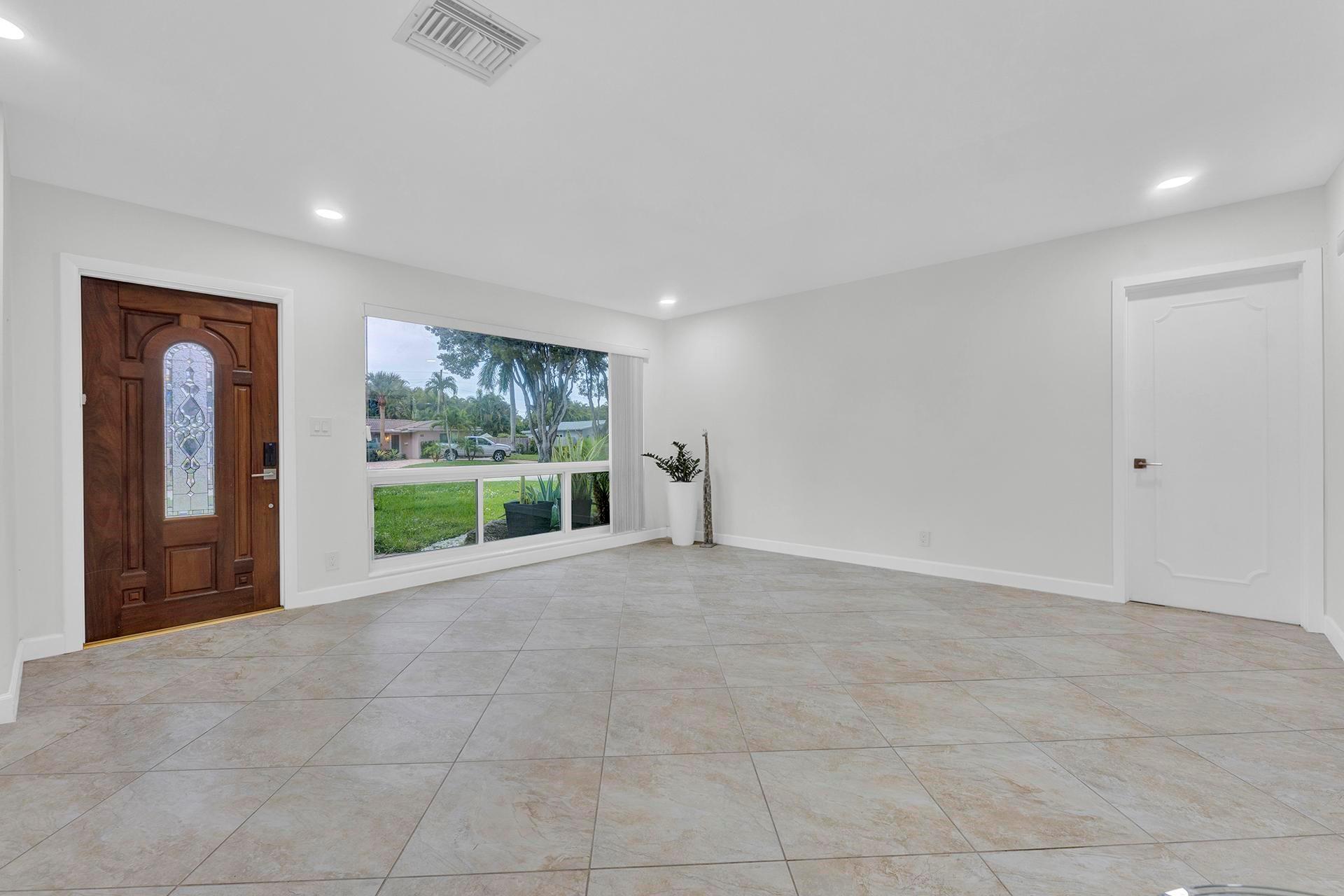 This home is just waiting for you to add your finishing touches and additional updates. Come see this large 3-bed 3-bath home in Coral Ridge Isles. Each bedroom has its own attached bathroom for split 3 Master Bedrooms. Featuring New Impact Windows in the front half of the home and Accordion Shutters for remaining windows for your hurricane protection. All 3 bathrooms have been nicely updated. Two bathrooms feature new white cabinet vanities with new quartz countertops, new marble look tile, new lighted mirrors. A converted 2 car garage is your 3rd master bedroom/bathroom. Large Florida room for extra living space. Separate laundry room. Natural Gas. Two of the bedrooms have terrazzo floors in great condition and tile in rest of the house.