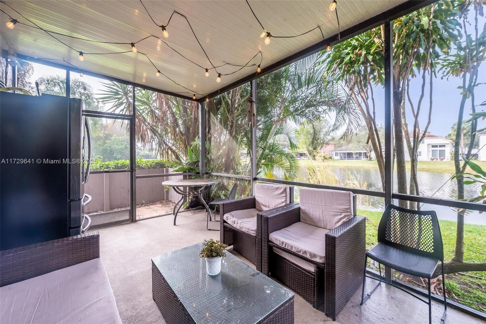 Modern and renovated 2 bedrooms + den/2.5 baths two-story townhouse with a beautiful lake view. The property features an inviting, bright space with tastefully renovated bathrooms and a modern kitchen. The den area has been closed off to create a third bedroom, with a closet. Highlights include: quartz countertops, laminate flooring & wooden stairs. Second bedroom with private bath. Centrally located in Pembroke Pines, and at the same time this corner unit provides a secluded and private atmosphere. Enjoy your morning coffee in the sitting area at the front of your home, the covered patio, or the master bedroom balcony, all offering serene water views. No assessment, 2 assign parking spaces. Community pool, clubhouse & tot lot.
