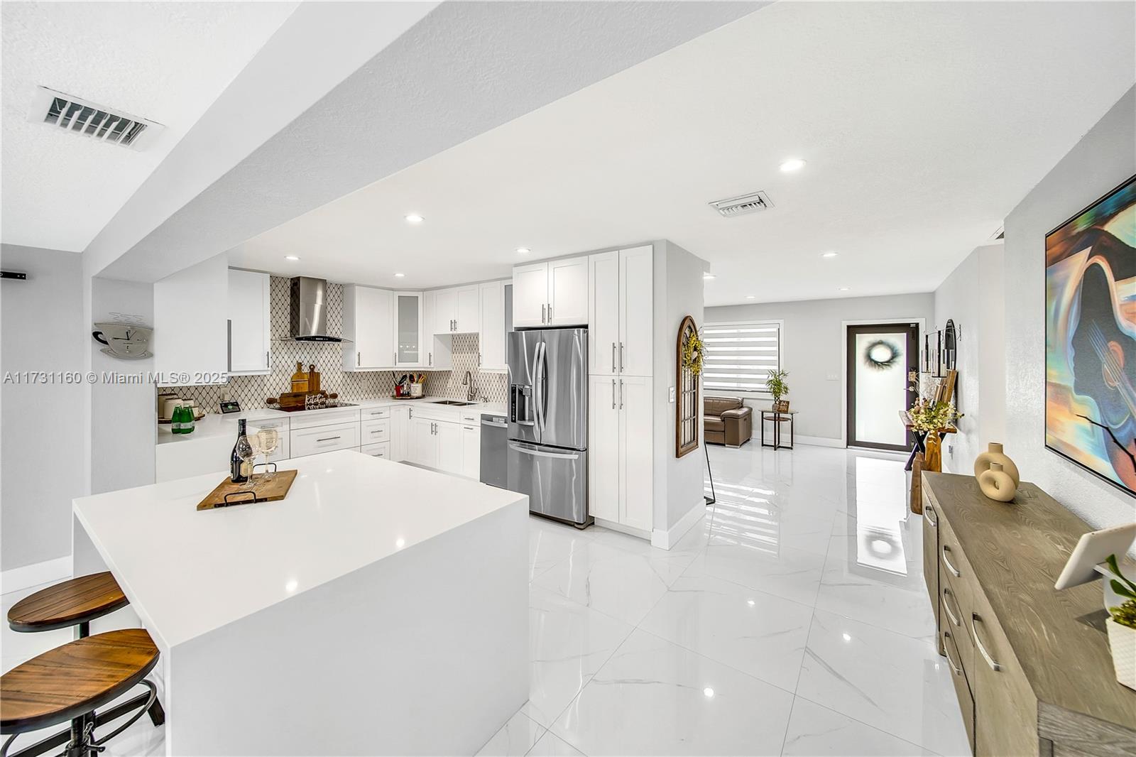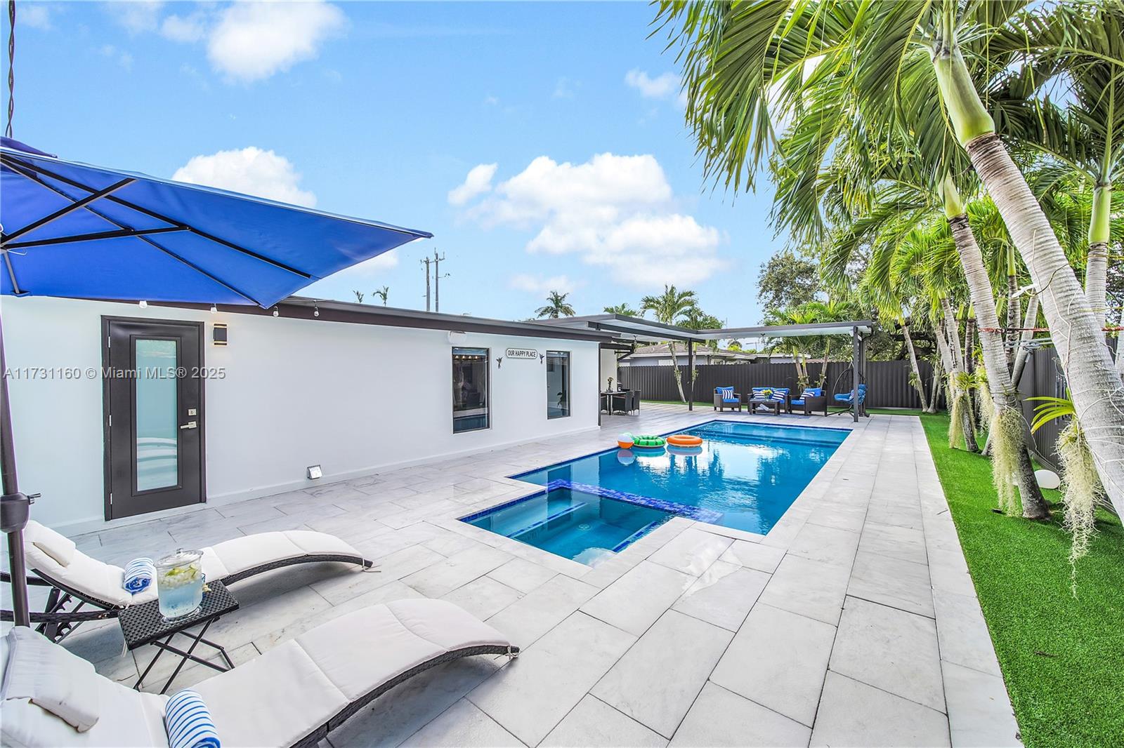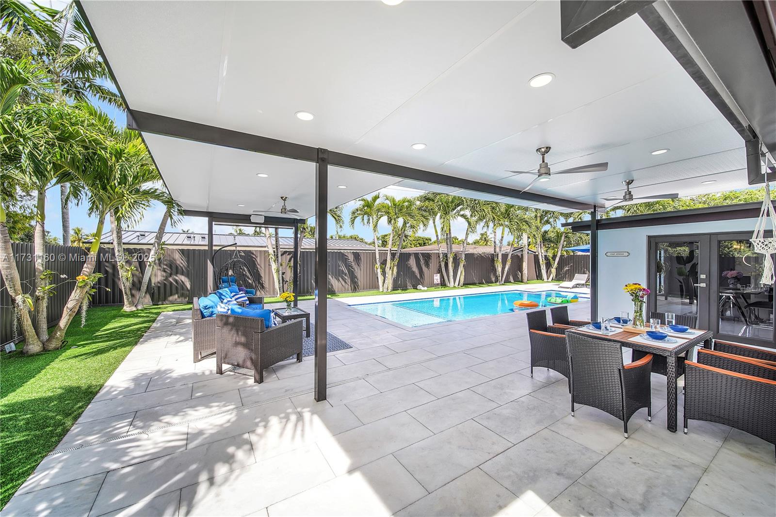 Completely Remodeled Turn-key 4-Bed, 3-Bath Pool Home, blending modern comfort and style. This gem includes a versatile private suite w/its own entrance, bathroom, and walk-in closet—perfect for guests, in-laws, or home office. Inside, enjoy sleek porcelain tile floors, a cozy living room w/a TV wall + chimney, and a chef-inspired kitchen with a Large Kitchen Island, featuring custom shaker cabinets, quartz countertops, and premium stainless steel appliances. The backyard is a private paradise, boasting a 15x30 heated pool with Jacuzzi, an insulated pergola, and lush landscaping with orchids and palm trees. Recent upgrades include a new roof, pool, and pergola, plus hurricane-impact windows and a smart home system. Located near Baptist Hospital, Dadeland Mall, and major highways.