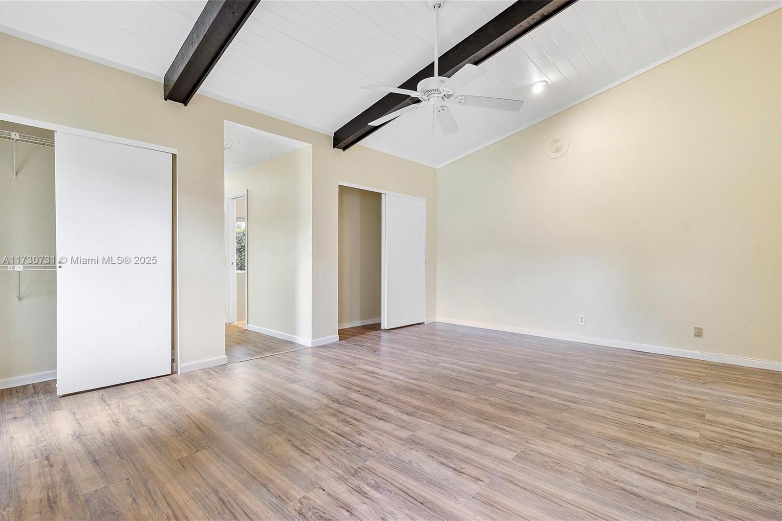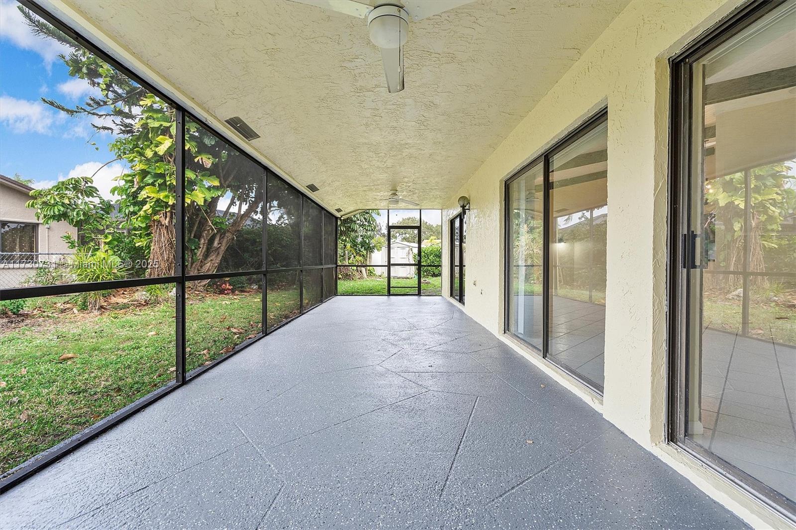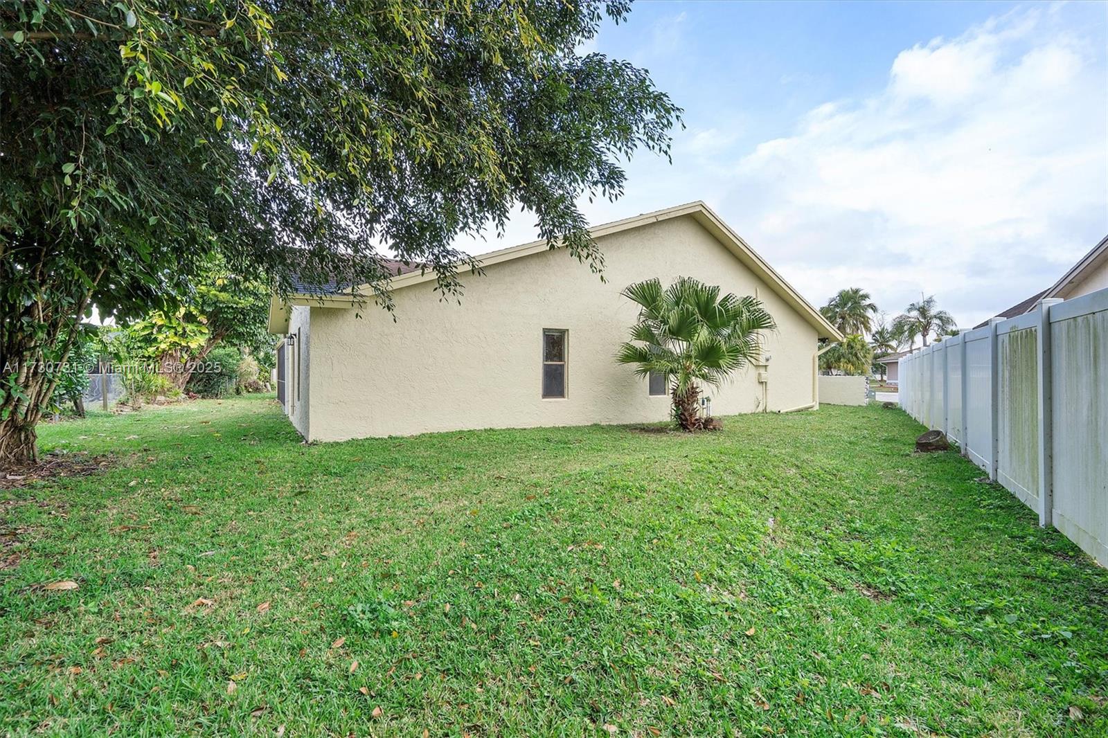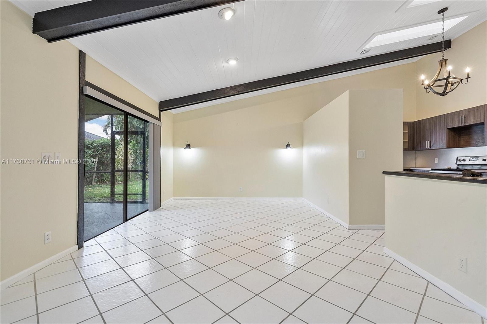 Spacious single family with 3 bedrooms and 2.5 bathrooms, centrally located on a cul-de-sac at Woodmont with NO ASSOCIATION. This home features a brightly renovated kitchen with skylights, an open floor plan, and vaulted ceilings with tongue-and-groove white planks accented by beautiful beams. Renovated bathrooms. Tile and luxury vinyl flooring. Fully fenced backyard, with two cabana bath doors, room to add a lap pool, and large screened and covered patio, perfect for outdoor living and entertaining. Large laundry room. 2-car Garage. Conveniently close to shopping, dining, and the beach. Investment or primary residence this home is perfect.