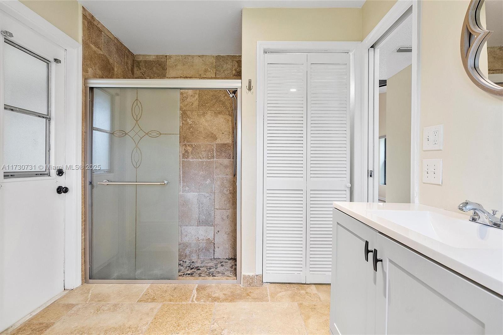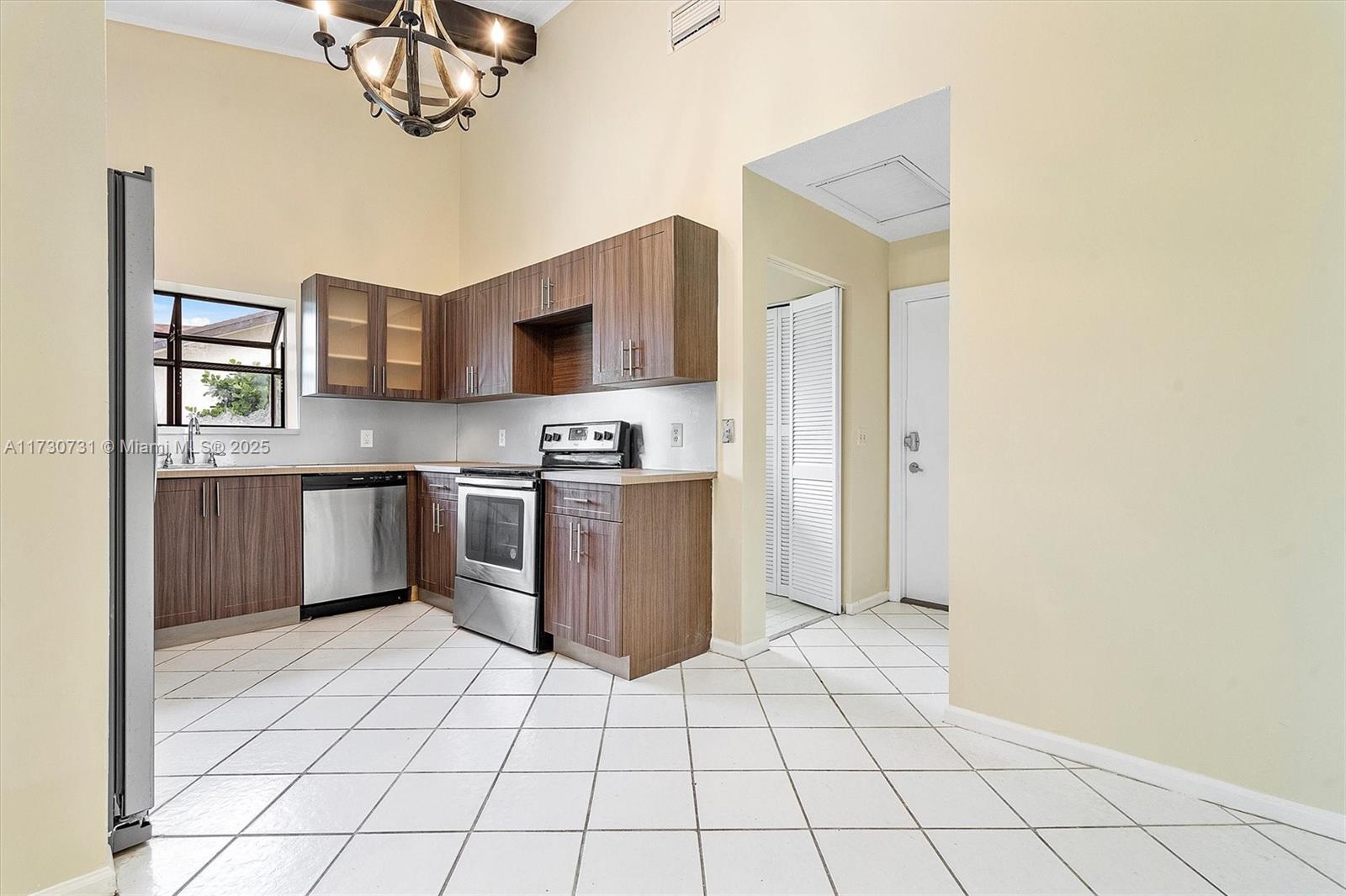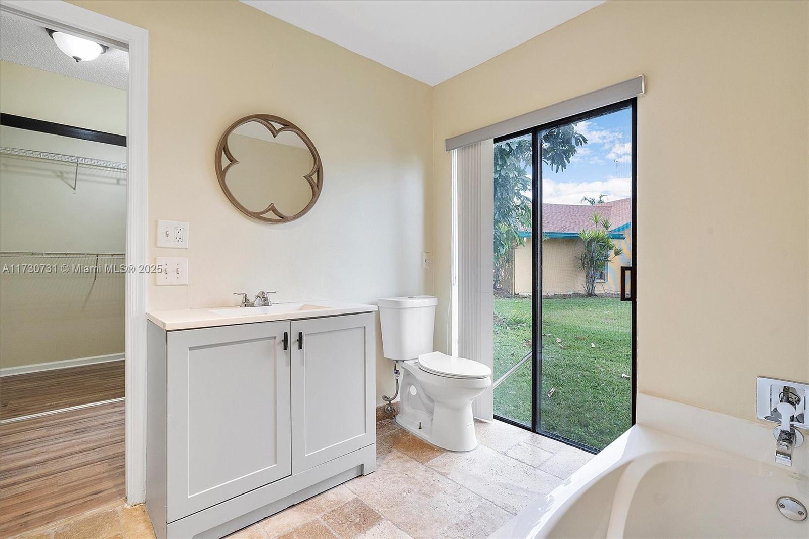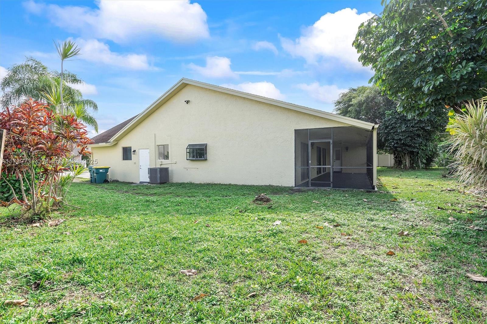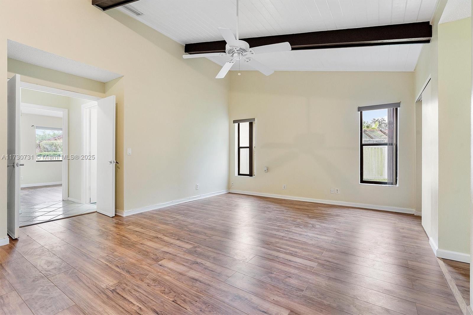 Spacious single family with 3 bedrooms and 2.5 bathrooms, centrally located on a cul-de-sac at Woodmont with NO ASSOCIATION. This home features a brightly renovated kitchen with skylights, an open floor plan, and vaulted ceilings with tongue-and-groove white planks accented by beautiful beams. Renovated bathrooms. Tile and luxury vinyl flooring. Fully fenced backyard, with two cabana bath doors, room to add a lap pool, and large screened and covered patio, perfect for outdoor living and entertaining. Large laundry room. 2-car Garage. Conveniently close to shopping, dining, and the beach. Investment or primary residence this home is perfect.