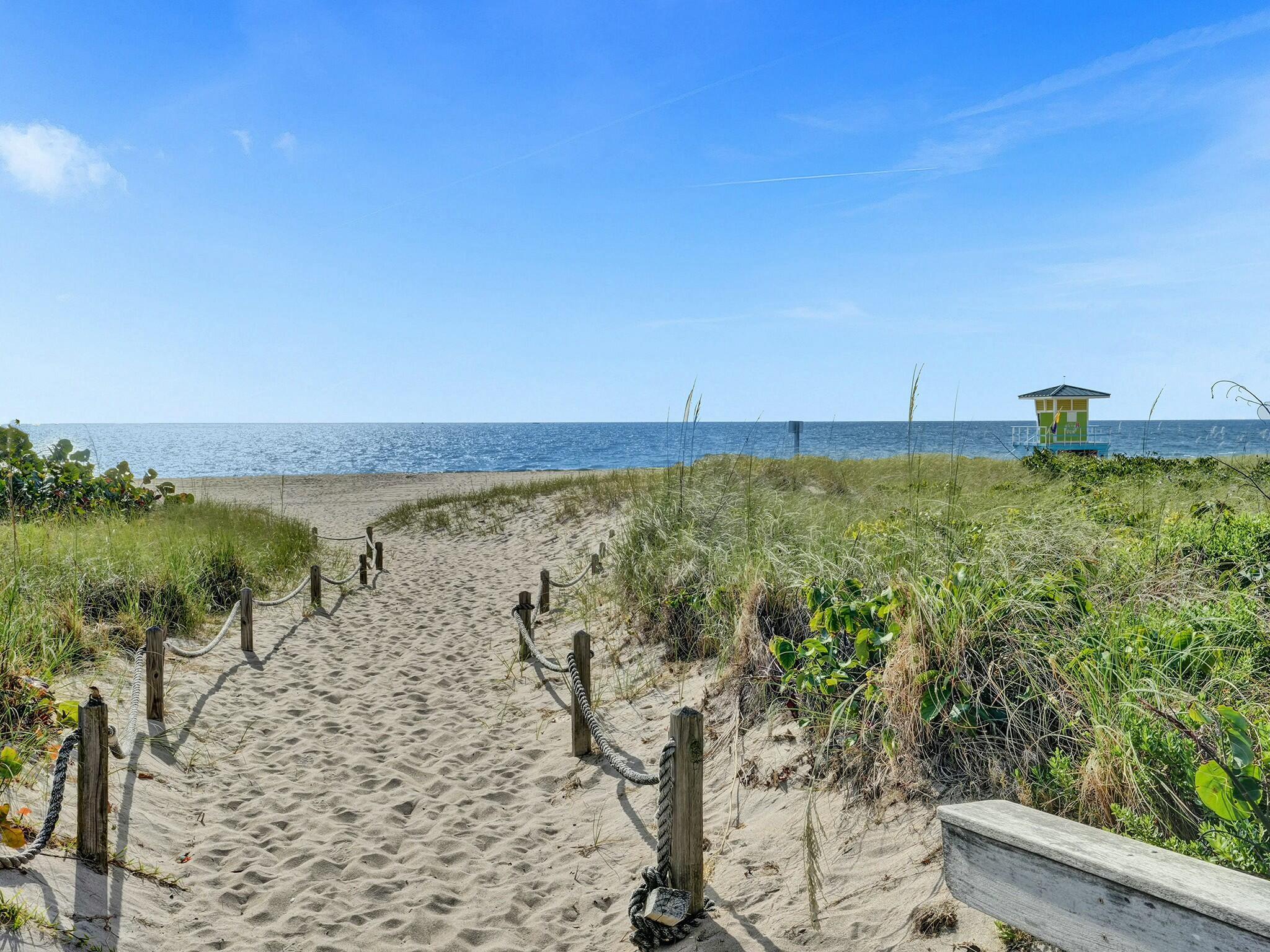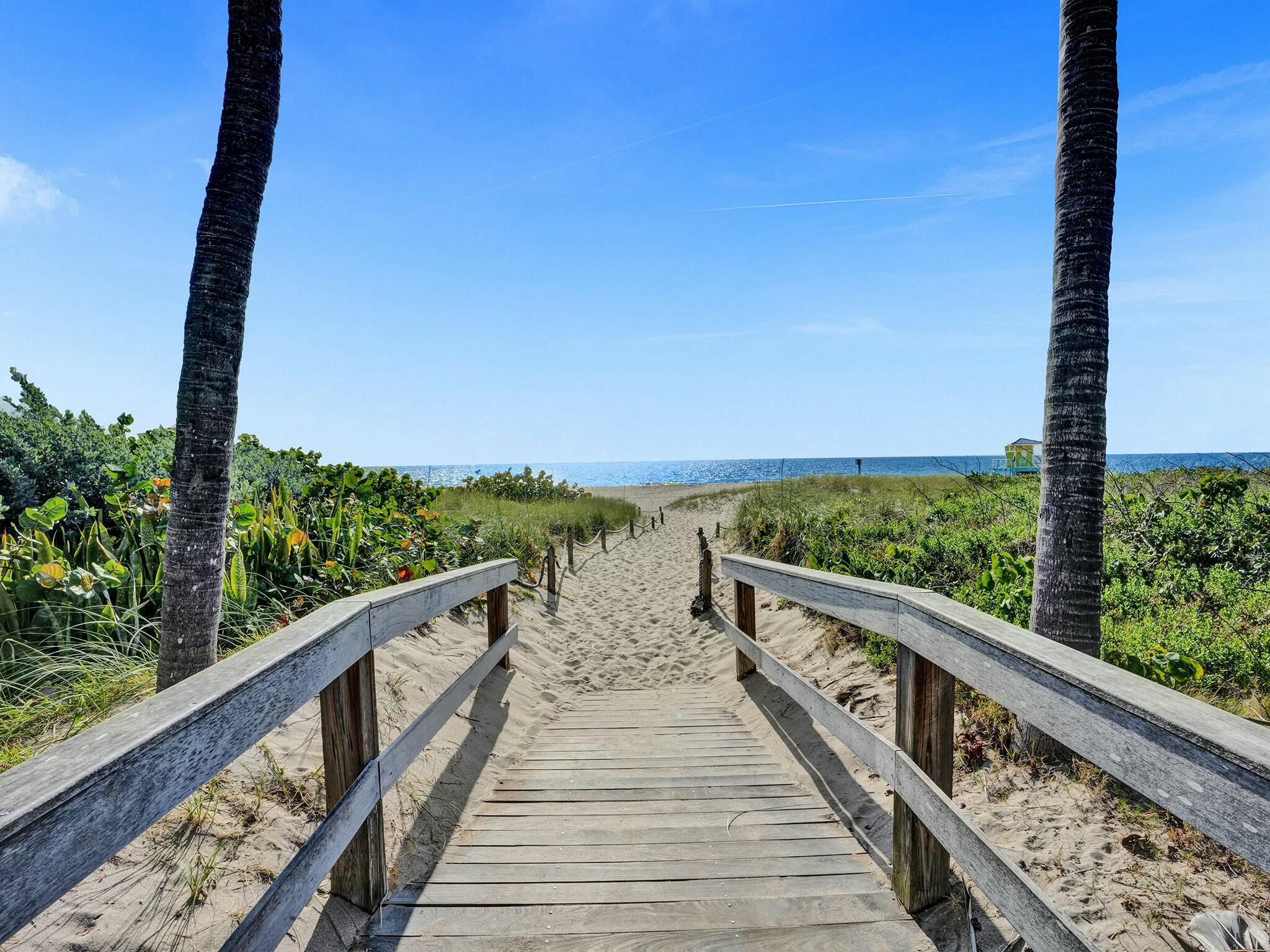 Located just a short walk from the beach, this stunning 3-bedroom, 2.1-bath townhouse with impact windows offers the ultimate in coastal living. Enjoy the soothing sounds and refreshing ocean breezes right from your private master suite balcony. The luxurious en suite bathroom features a spa-like jacuzzi. Fully equipped kitchen includes stainless steel appliances, a wine fridge, and plenty of counter space, making it ideal for both everyday living and entertaining. The second floor is graced with beautiful wood flooring.Outside, your private patio provides an excellent space for cookouts. With no HOA fees, this home also offers excellent investment potential.Just minutes from local dining, shopping, and entertainment.Don't miss your chance to own a piece of paradise