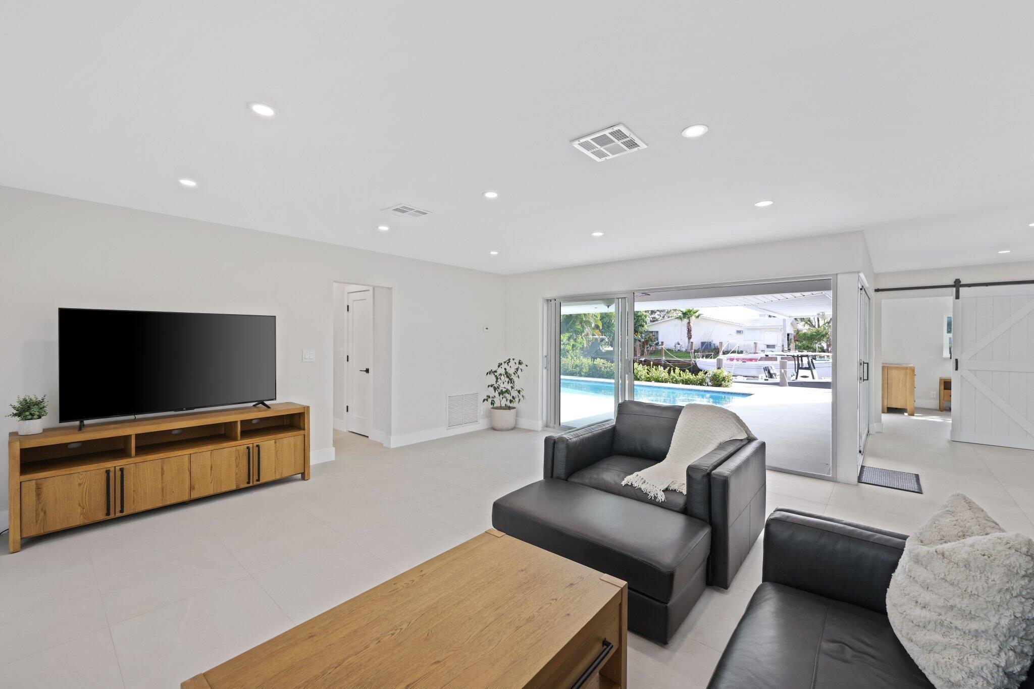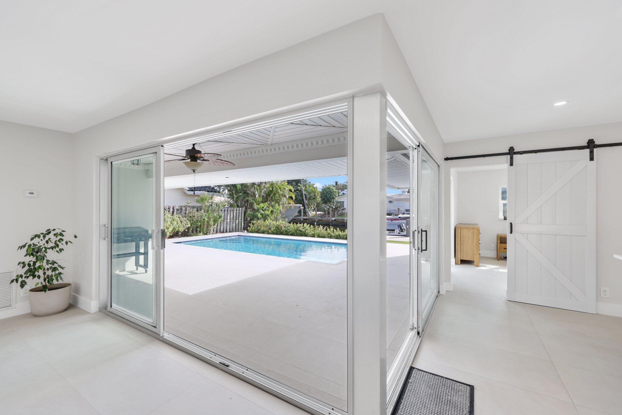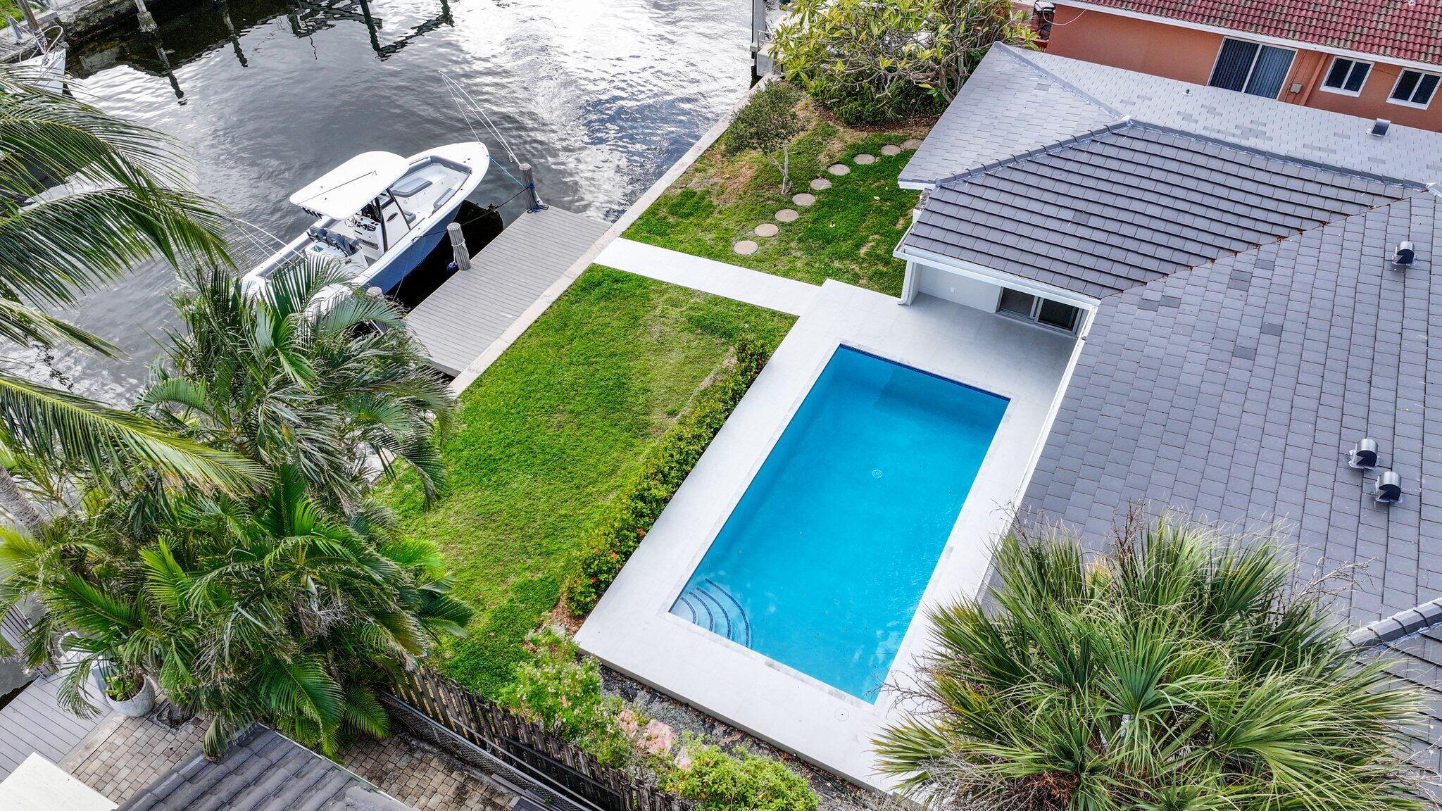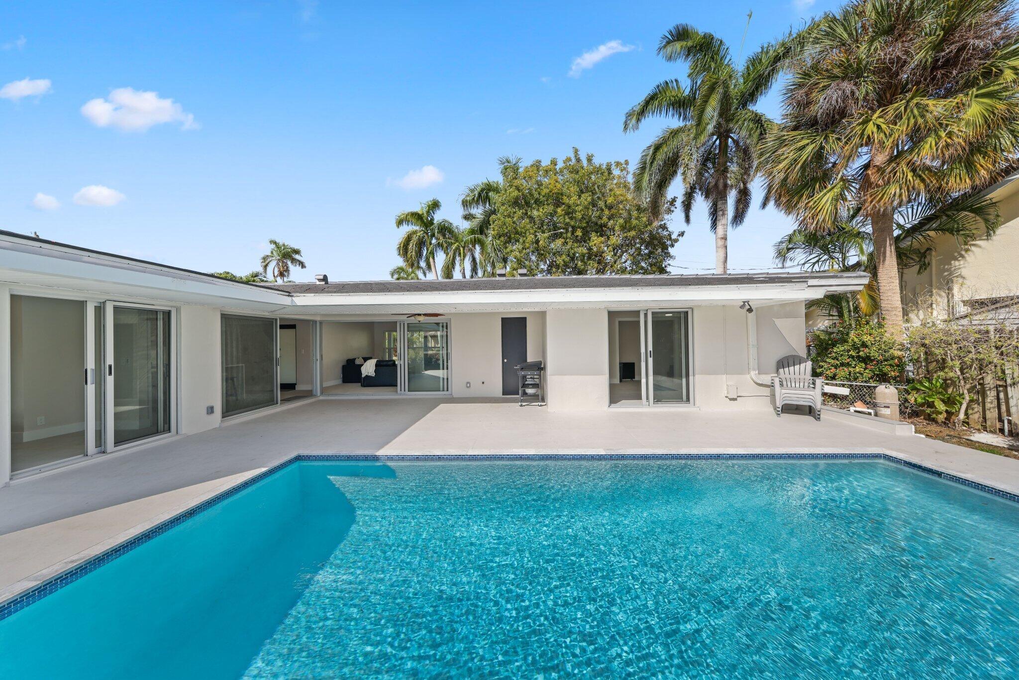 Discover your own boater's paradise with this beautifully remodeled residence offering 75 feet of water frontage and direct access to the Intracoastal Waterway- no fixed bridges for seamless navigation. This thoughtfully updated home combines modern elegance with relaxed coastal living, featuring 3 bedrooms and 2 completely renovated bathrooms featuring custom tile, new vanities, and LED mirrors. The open-concept floor plan offers abundant natural light, highlighting the newly tiled floors and fresh finishes throughout. Enjoy the tranquility of a south-facing backyard for sun all day. Additional upgrades include all new underground plumbing, tiled roof, tiled pool deck, new pool tile, to name a few. This home is a perfect blend of comfort, style, and convenience.