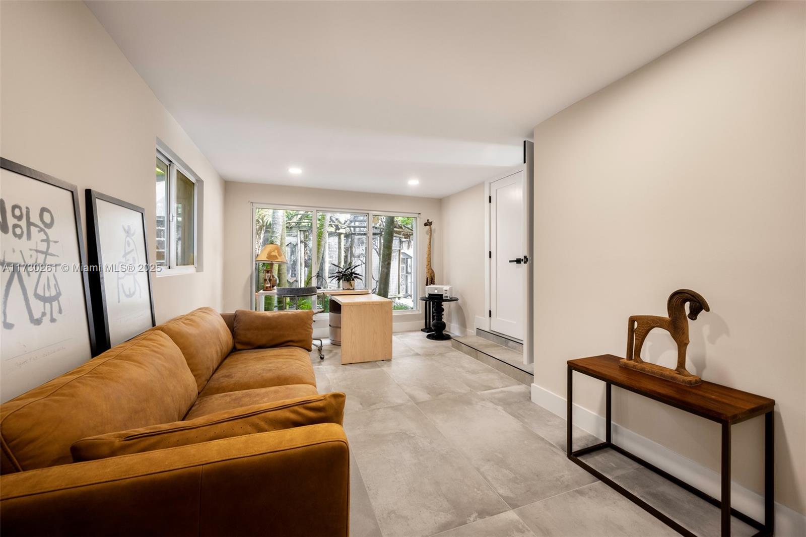 Stunning, modern-style estate in the coveted South Grove neighborhood known as "Utopia". This unique home is surrounded by a majestic tree canopy, lush tropical gardens and is fully walled & gated for the ultimate in privacy. Striking, open-air entryway leads into expansive, light-filled living spaces w/ coral rock fireplace, porcelain tile flooring & vaulted, wood-beamed ceilings. Sleek, European-style kitchen and spa-like bathrooms feature high-end fixtures & finishes. French doors in the large family room open to captivating outdoor spaces w/a covered terrace & wood deck overlooking the tranquil pool. High sea-level elevation (not a flood zone). Whole-house generator. Walk or bike to top tier schools, bayfront parks & marinas and to the Grove village’s galleries, boutiques & cafes.