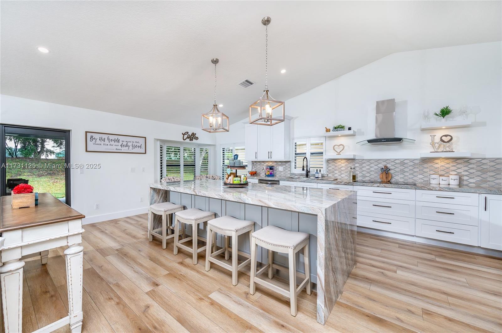 Your move-in dream home is here! Located in the desirable gated community of Pembroke Shores. This 3 bedroom/2 bath home boasts an open concept creating an airy & spacious atmosphere. Gourmet granite kitchen, large island with stools, White wood self-close cabinets, SS appl, induction glass stove top, dual oven/microwave/air-fryer combo. Waterproof flooring, impact windows/doors, plantation shutters & a 2 car garage. Bedrooms are generously sized, dual quartz vanity sink, custom glass shower doors, tankless WH, laundry room with sink, washer/dryer. Patio is an entertainer's dream, covered terrace, Paradise Grill BBQ, granite Island w/Bluetooth surround system, fridge & lights. 24Hrs Gated Community, Easy access to major HWY, Turnpike, shops, restaurants & top-rated schools. HOA $497.09 QTR