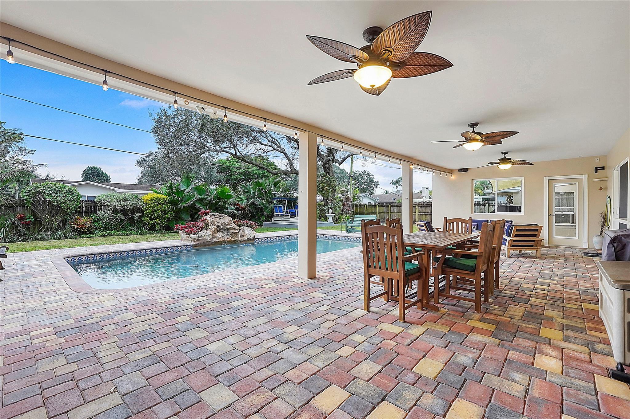 Welcome to this beautifully fully remodeled home, where modern elegance meets outdoor living. Featuring 3 bedrooms and 2 updated bathrooms, this home boasts a chef’s kitchen with sleek Cambria quartz countertops and premium finishes throughout. Additional upgrades include high-impact windows and a newer roof, offering both peace of mind and energy efficiency. Step outside to your own private oasis—complete with a sparkling Pebble Tec pool, lush landscaping, and a separate cabana bath for ultimate convenience. The covered patio with ceiling fans provides the perfect spot for year-round outdoor living, whether you’re hosting gatherings or unwinding in a cool breeze. Don’t miss the opportunity to make this your dream home!