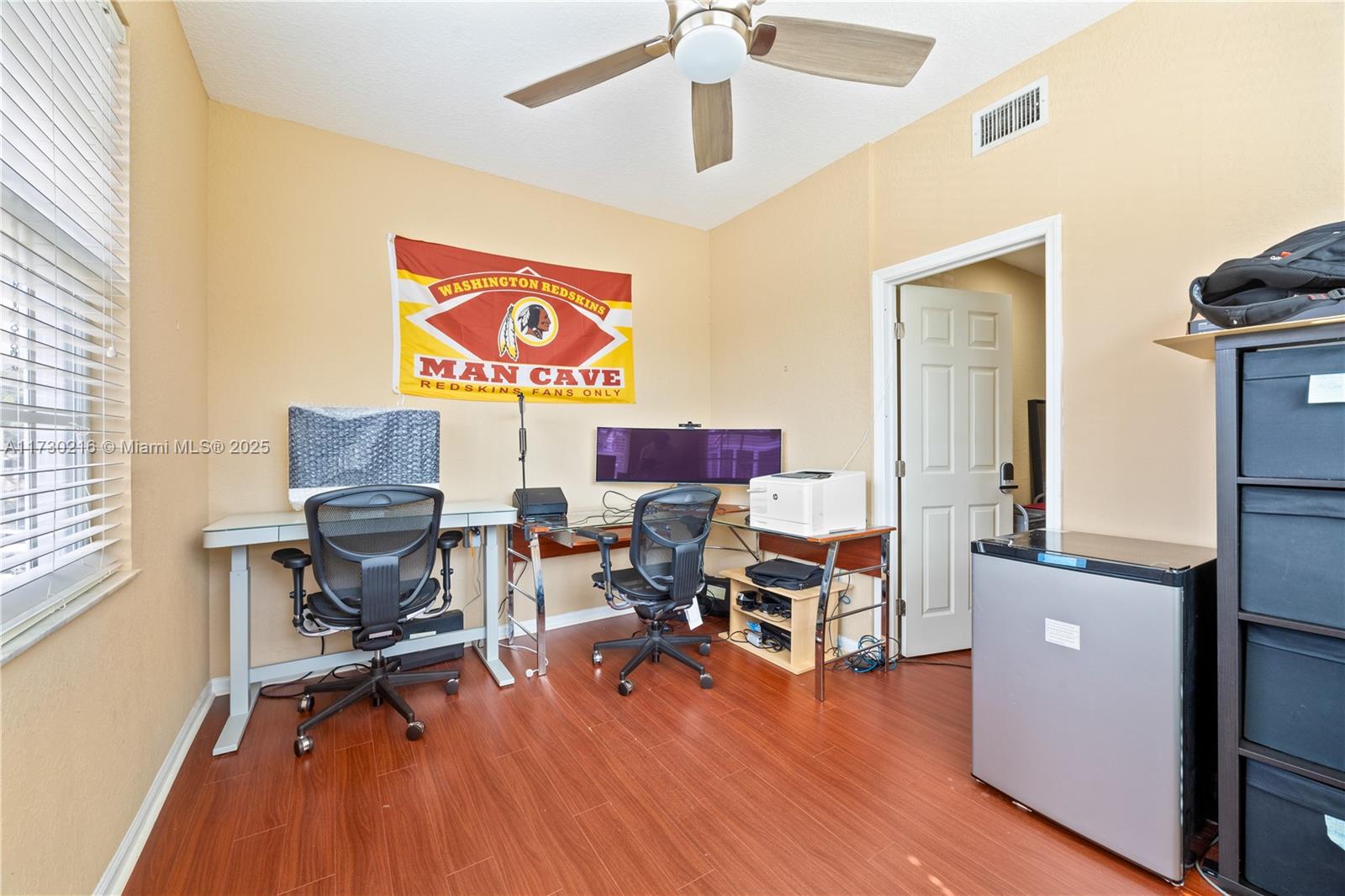 3-bedroom, 2.5-bathroom home, complete with an office/den and a 2-car garage, offers a perfect combination of comfort and modern upgrades. Key features include:Brand-new kitchen (2023) with Level 2 granite countertopsNew roof (2023)Updated appliances (2022)Wireless water heater(2024)Remodeled master bathroom (2024) with double sinks and a showerT he home boasts spacious tiled living areas downstairs, laminate flooring upstairs, and high ceilings that enhance its open and airy feel. The master bedroom includes a large walk-in closet, offering plenty of storage space.Located right next to North Community Park, it’s within walking distance of top-rated A+ elementary and high schools, making it an ideal choice .Upgraded home 200 AMP,TESLA CHARGING STATION PLUG FOR 2 CARS, HURRICANE SHUTTERS
