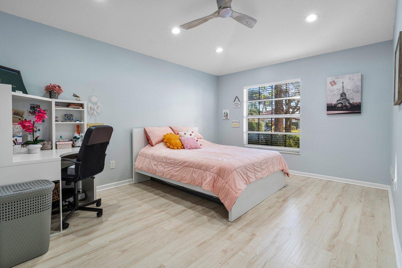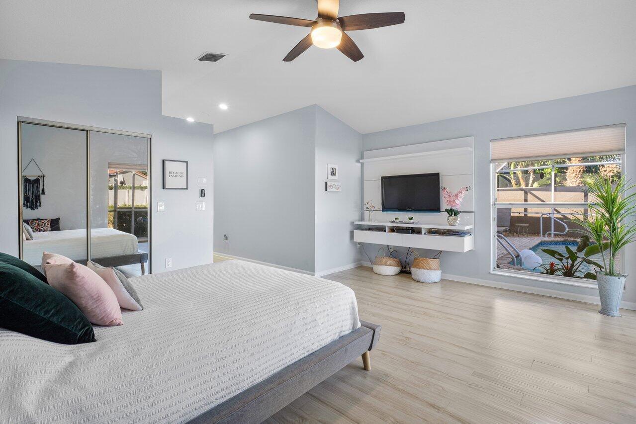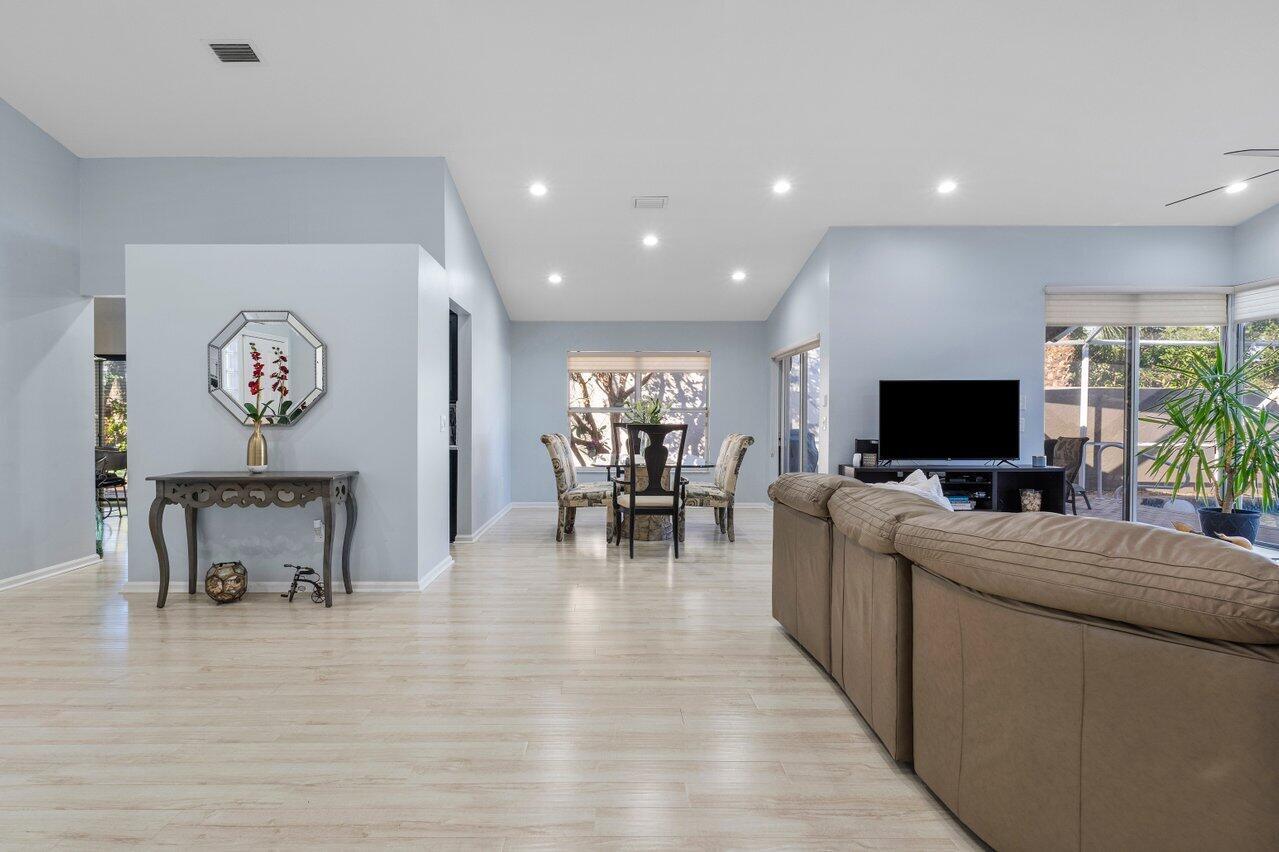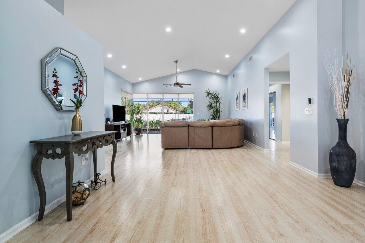 Impeccable Move-In Ready Remodeled Pool Home in Boca Pointe Country Club! (CC Membership IS NOT REQUIRED!) From the Foyer you gaze at the high ceilings, Open & Bright Living Areas and Beautiful White Oak Floors! This Harmonious Floor plan offers a Formal Dining & Living Rooms that step out to your Covered Patio & Screened Pool Lanai! Enjoy a Beautiful Custom Eat-In Kitchen with Quartzite Counters, BRAND NEW Stainless Steel Appliances & Mosaic Stone Backsplash! Owner's Bedroom Suite offers pool views & a Luxurious Bathroom w/ Soaking tub & shower, 2 closets & Slider to your HEATED Pool & Patio! Highly Desirable Split-Bedroom floor plan, 3rd room does Not have a closet but can easily be added. A Friendly All Ages Community & Short Walk to the Country Club; ROOF 2019, AC 2018, WD 2022