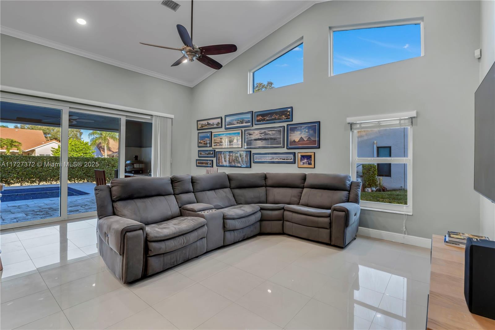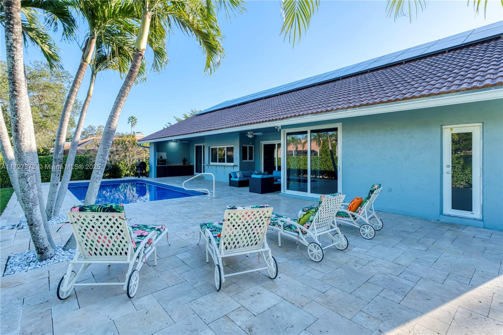 Stunning ranch-style 4bedroom 2.5-bath home with a 2-car garage and heated saltwater pool in the sought out community of Pine Ridge Coral Springs!The kitchen is complete with Granite countertops, SS appliances,lots of storage. Features include Vaulted ceilings,porcelain tile and luxury vinyl flooring,LED lighting,updated bathrooms, built-in closet systems and a circular pavered driveway.Hurricane impact windows & doors, PAID-OFF solar panels, EV charger, and tankless water heater add efficiency and value.Large backyard with grassy areas, covered sitting areas & travertine pavers Outdoor cooking area with sink and Pizza Oven.BRAND NEW Diamond Brite and BRAND NEW high-efficiency pump.Outdoor lighting. Freshly painted indoors and outdoors.Roof has blown-in insulation.Move-in ready!!
