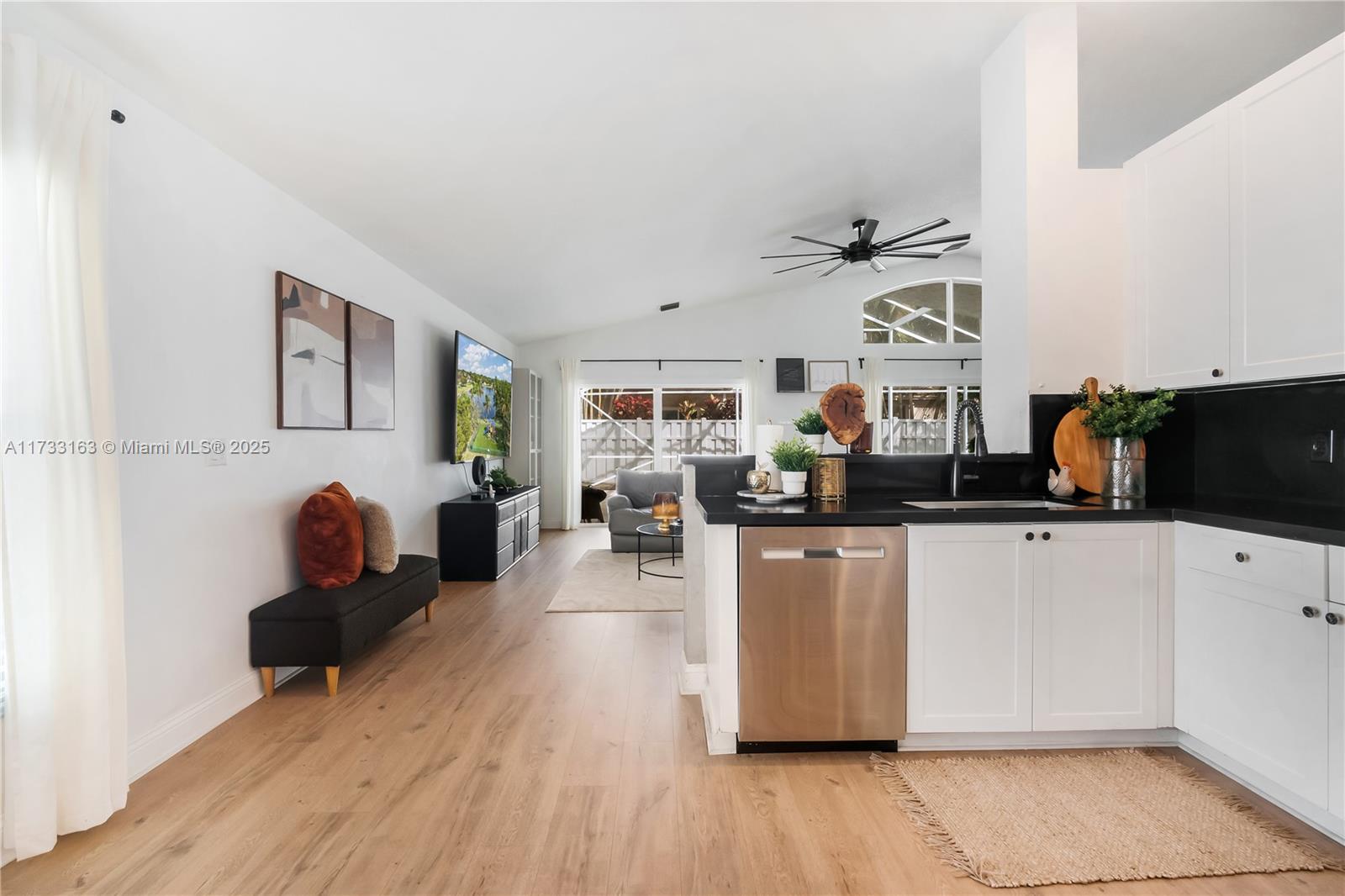 Do not miss out on this home in the desirable Neighborhood of Pembroke Falls with fully fenced back yard. This lovely 3 bedroom and 2 bathroom open concept home boast modern updates throughout. Kitchen has beautiful black quartz countertops and white kitchen cabinets and stainless steel appliances. The Guest bathroom has been recently updated with quality materials. Wood Laminate Flooring. Large Master Bedroom, walk in closet. Fully enclosed contemporary pool with heater. Hurricane Impact windows. 2 Car Garage with electric door opener .2000 sq feet of premium living space. Recently Fully serviced HVAC system In excellent condition. HOA includes cable, high speed internet, and ADT alarm. Close to the Pembroke Shops and lots of dining options. Lots of clubhouse amenities. DU REQ’D