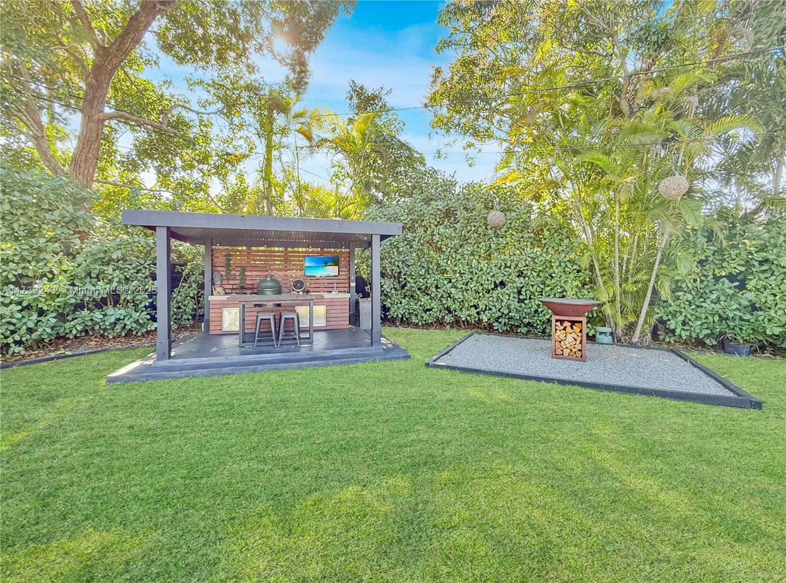 Completely rebuilt in 2017, this stunning 3-bedroom, 3-bathroom home in Pinecrest showcases exceptional design and luxurious finishes. Italian porcelain floors, custom wood detailing, and high-end craftsmanship are featured throughout. The chef’s kitchen is a showstopper with commercial-grade appliances, a 9-foot walnut island, custom cabinetry, and Venatino countertops. The open floor plan seamlessly flows to private outdoor areas with a fire pit, fruit trees, and a BBQ zone. Updates include new plumbing, electrical, insulation, a metal roof, and pool with equipment. The exterior is finished with Resysta siding, offering durability and resistance to rain, ensuring long-term beauty and low maintenance.