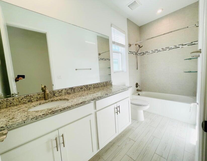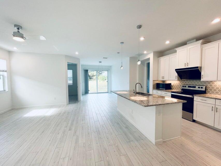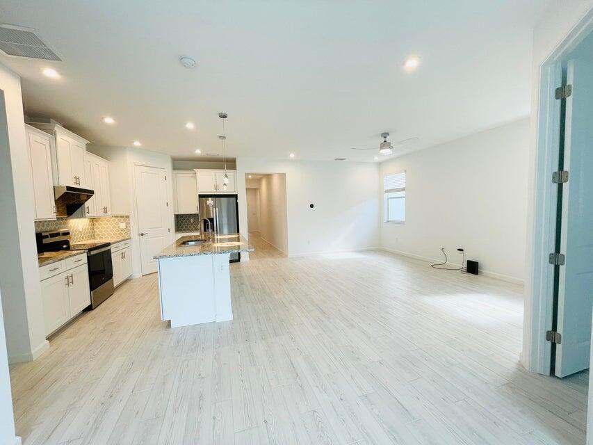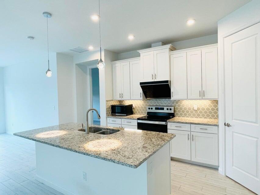 Seller motivated! This stunning 3-bed + den, 2-bath home is perfectly situated near Palm Beach Airport, hospitals, shops, restaurants, and major highways for ultimate convenience. Set on a premium corner lot with a serene water-view pond, this home boasts upgrades throughout. The gourmet kitchen is a chef's dream, featuring upgraded cabinetry with crown molding, a stylish backsplash, upgraded counters, and a range hood vented outdoors. The open-concept layout is enhanced by upgraded tile flooring.Additional highlights include: Drop zone with custom cabinetry; Upgraded laundry room with cabinets and a folding counter;A spacious 2-car garage prepped with drainage for a future utility sink; Pet-friendly community with no restrictions; Located in a gated community for added secur