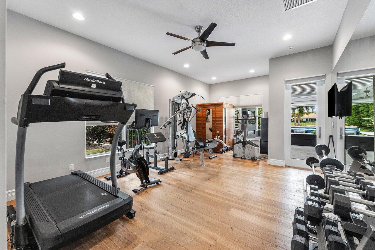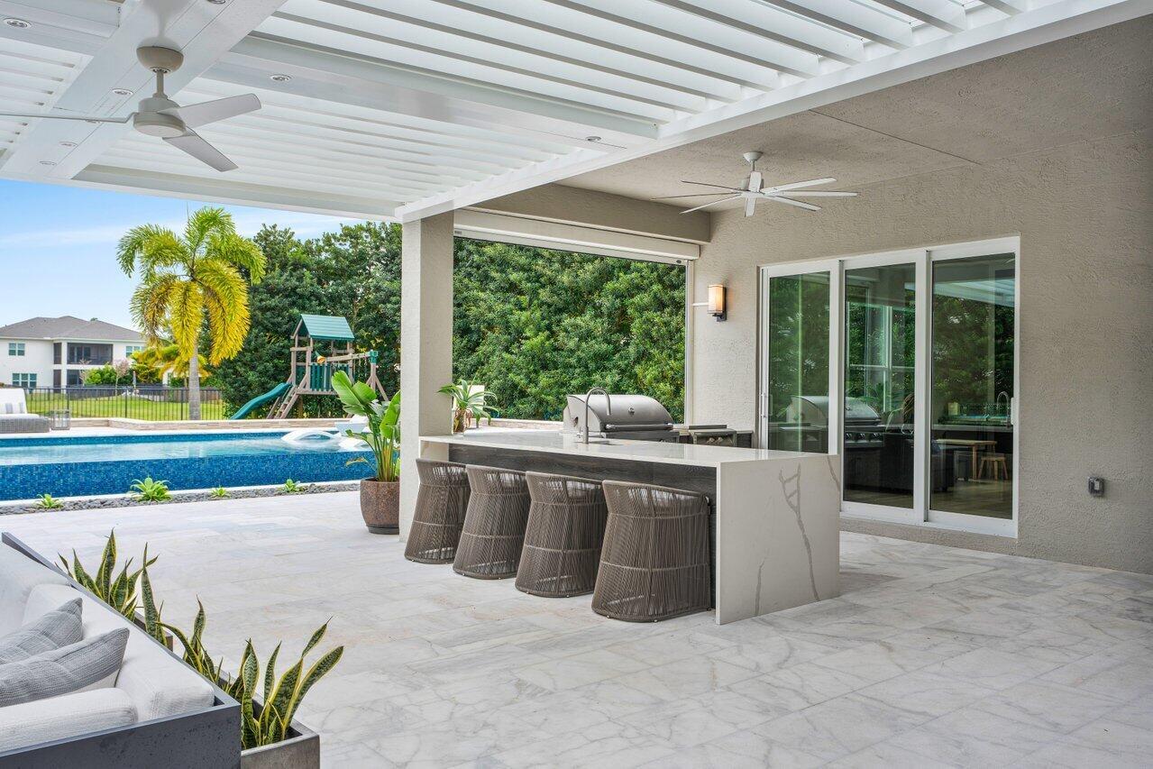 Rare opportunity to own the LARGEST home in Berkeley Boca Raton built by GL Homes, meticulously constructed and designed in 2018. This custom, Monterey model is exclusive to this address and is the only home in Berkeley with 6,000+ Living SF, putting it in a category of its own. This enormous estate features 5 en-suite bedrooms, 7 total bathrooms, an oversized bonus room, a home gym, spacious loft + a second-story private office (enclosed with hurricane impact sliders) off the primary suite with spectacular views of the resort-style backyard. The massive primary retreat offers 400+ SF of unparalleled convenience with TWO primary bathrooms + enormous his and hers, custom built walk-in closets!