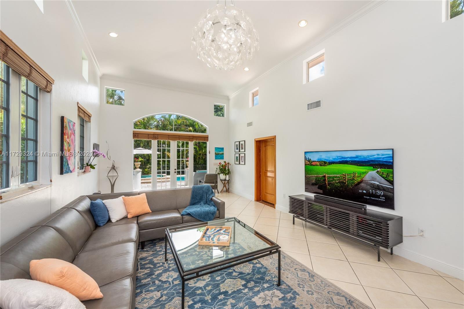 This beautiful home near downtown Coral Gables features three bedrooms, two bathrooms, an updated kitchen, a center island, and a large pantry. The welcoming living room flows into a spacious family room with 15-foot ceilings and natural light. French doors lead to a pool and covered patio, perfect for entertaining. Additional highlights include an oversized garage and impact windows. The total living area is 2,338 square feet. Located in the Freebee zone, it’s close to the farmer's market, Biltmore Hotel, and Coral Gables Youth Center.