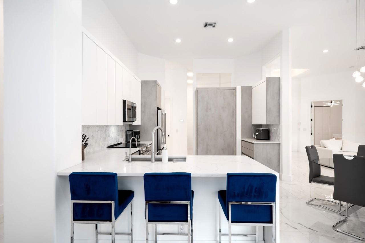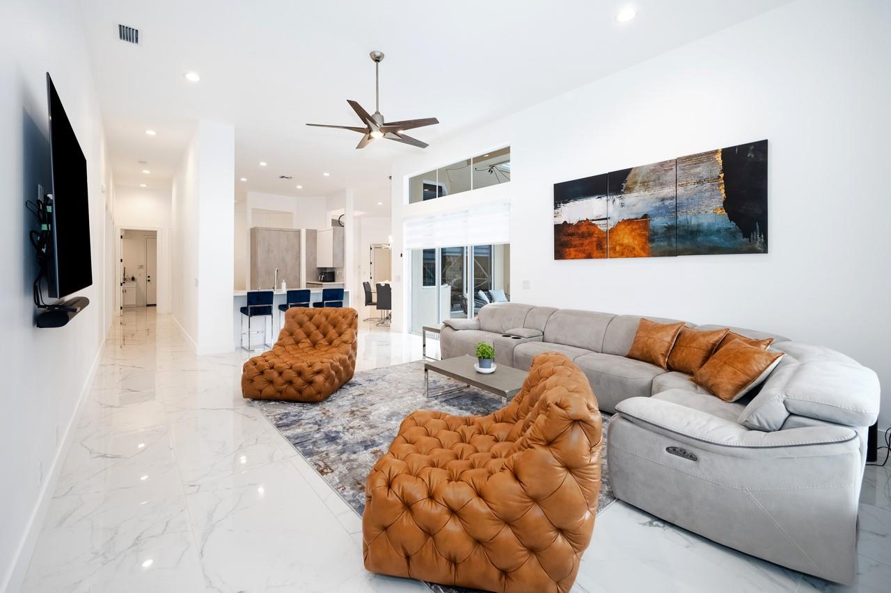 Sparkling 4 Bedroom plus Den Lakefront Pool Home, beautiful Finishes, Everything NEW, A Rare Find! NEW Roof 2022, NEW Floors throughout, Gourmet Kitchen w/Modern Gray/White Cabinets, Reverse Osmosis Water system, Beautiful White Quartz Countertops, Kitchen opens to VERY Spacious Family Room, Triple Split Bedroom Plan, All Bedrooms X-Large Big Walk in Closets, LED Lighting Fixtures. Gorgeous NEW Baths (3.5). Modern Gray/White themed Finishes / Bronze Fixtures throughout this home. Spectacular Private Screened Lakefront Pool, DAZZLES! NEW Exterior lighting. Expansive Lake View from All Living areas. Pretty Pool Patio for Entertaining Day or Night. Lake w/Boat Access. Huge 3 Car Garage with Paver Driveway, Parking for 6 Cars. Nothing to do but Enjoy! A beautiful home you will be Proud to Own!