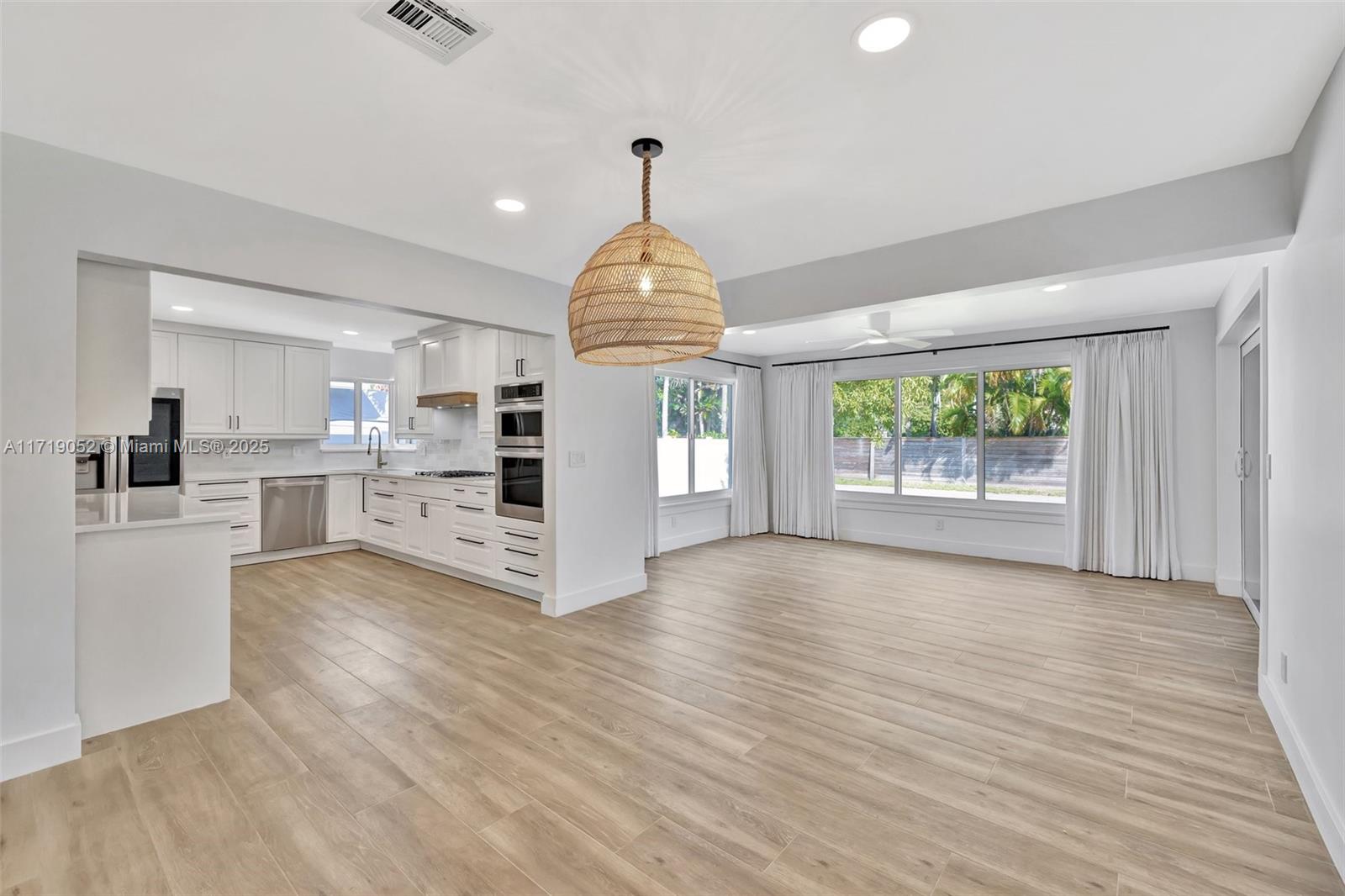 Modern bohemian 3-bed, 2-bath home w/ 2022 Tile ROOF by Paletz, Hurricane IMPACT windows & doors, '22 ELECTRIC PANEL, updated plumbing, '19 SCREENED PATIO & newer AC. Open concept w/ gorgeous white kitchen, quartz counters & newer stainless appliances w/ gas stove! Bright living room, dining area & den overlooking backyard + spacious laundry rm w/ washer & dryer. Piles started for a new pool - Seller invested over $49k toward project - now's your chance to customize & complete your backyard. Large, covered screened patio w/ travertine marble overlooks backyard. No HOA or Rental Restrictions. Alley behind home for garbage. Ideally located near houses of worship, lakes, intracoastal, beaches, schools, parks, shopping, dining & major highways.