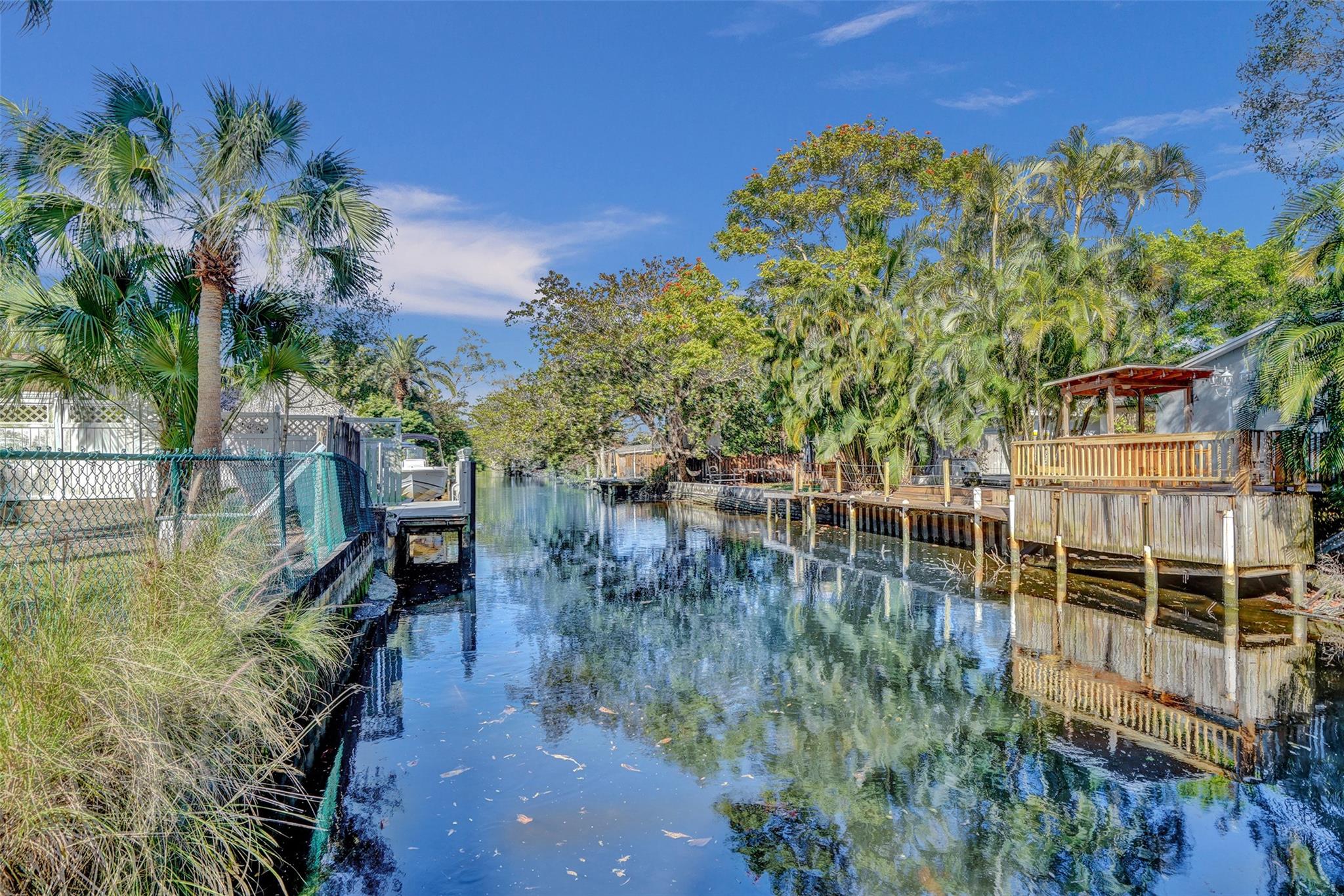 Discover this .37-acre gem (the size of 2½ lots) located on a quiet cul-de-sac corner lot. With 270 ft of canal waterfront surrounded by mature palm trees, enjoy your private dock and ocean access with one fixed bridge. The 1,684 sq. ft. home features vaulted ceilings, two traditional bedrooms, a large family room & bonus room, both of which could be used as bedrooms, and 2.5 baths. The modern kitchen & updated primary bath add to its charm. Outdoor living shines with a spacious covered patio and bar, plenty of room for a pool, ample parking for an RV or boat, a carport, and a large shed for storage. HVAC replaced in 2021. Conveniently located minutes from I-95 and I-595. The possibilities are endless with this much space!
