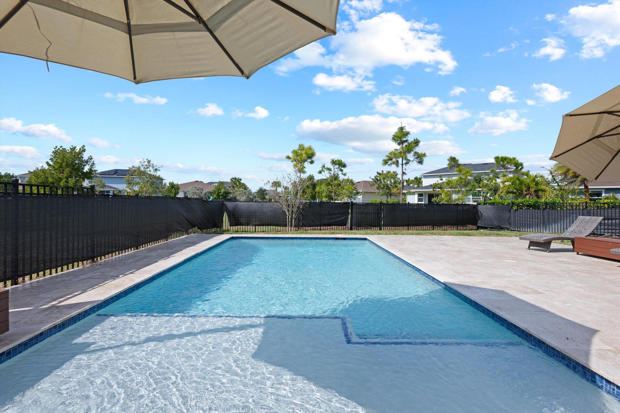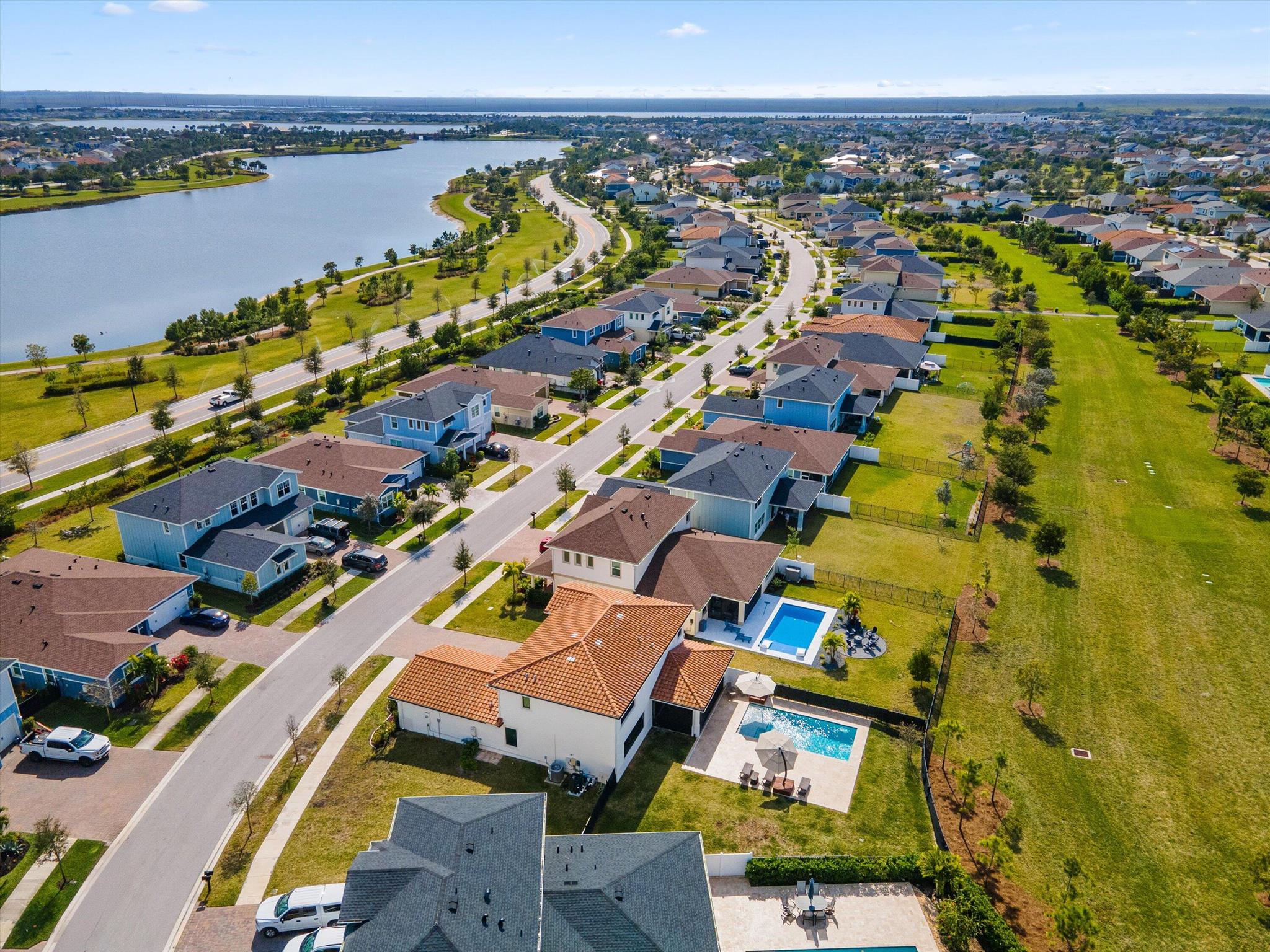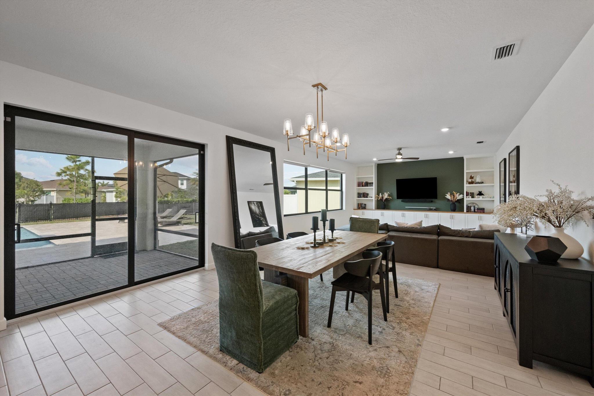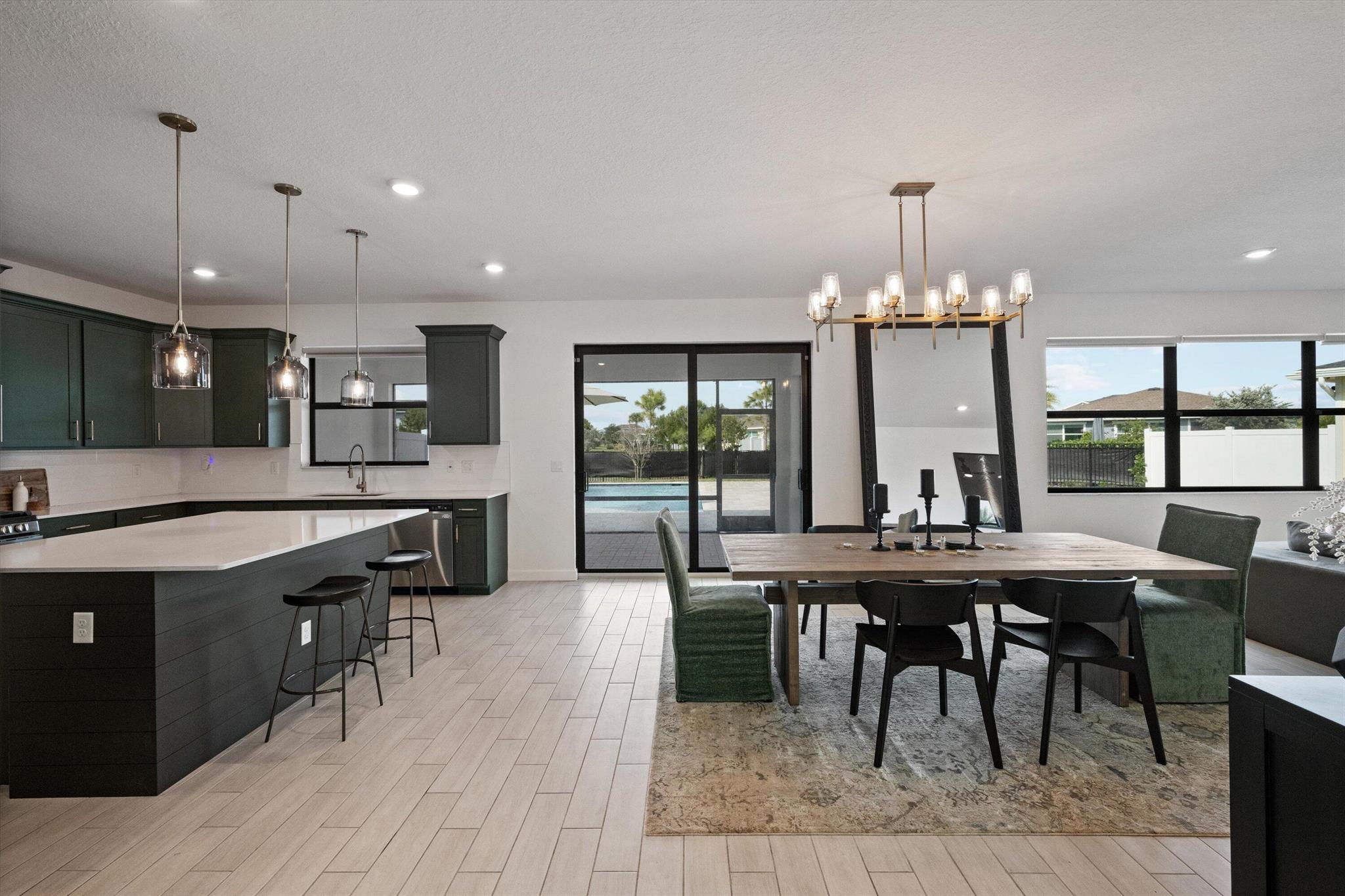 Welcome to this stunning 4-bed, 3-bath Spanish-style home, featuring a highly sought-after floor plan, set on an expansive lot. On the ground floor, you'll find an inviting open-concept living, dining, and kitchen area--perfect for entertaining. A 4th bedroom and full bath, along with stylish wood-tile flooring, complete the main level. The 2nd level offers a spacious primary suite, along with 2 additional bedrooms, bath and laundry room. This home boasts an array of upgrades, including a heated pool with a generous deck for outdoor relaxation, screened in lanai, fenced yard, and a total of 3 garage bays. Additional highlights include impact windows and doors, custom built-in shelving in the living area, new vanity mirrors, light fixtures, ceiling fans