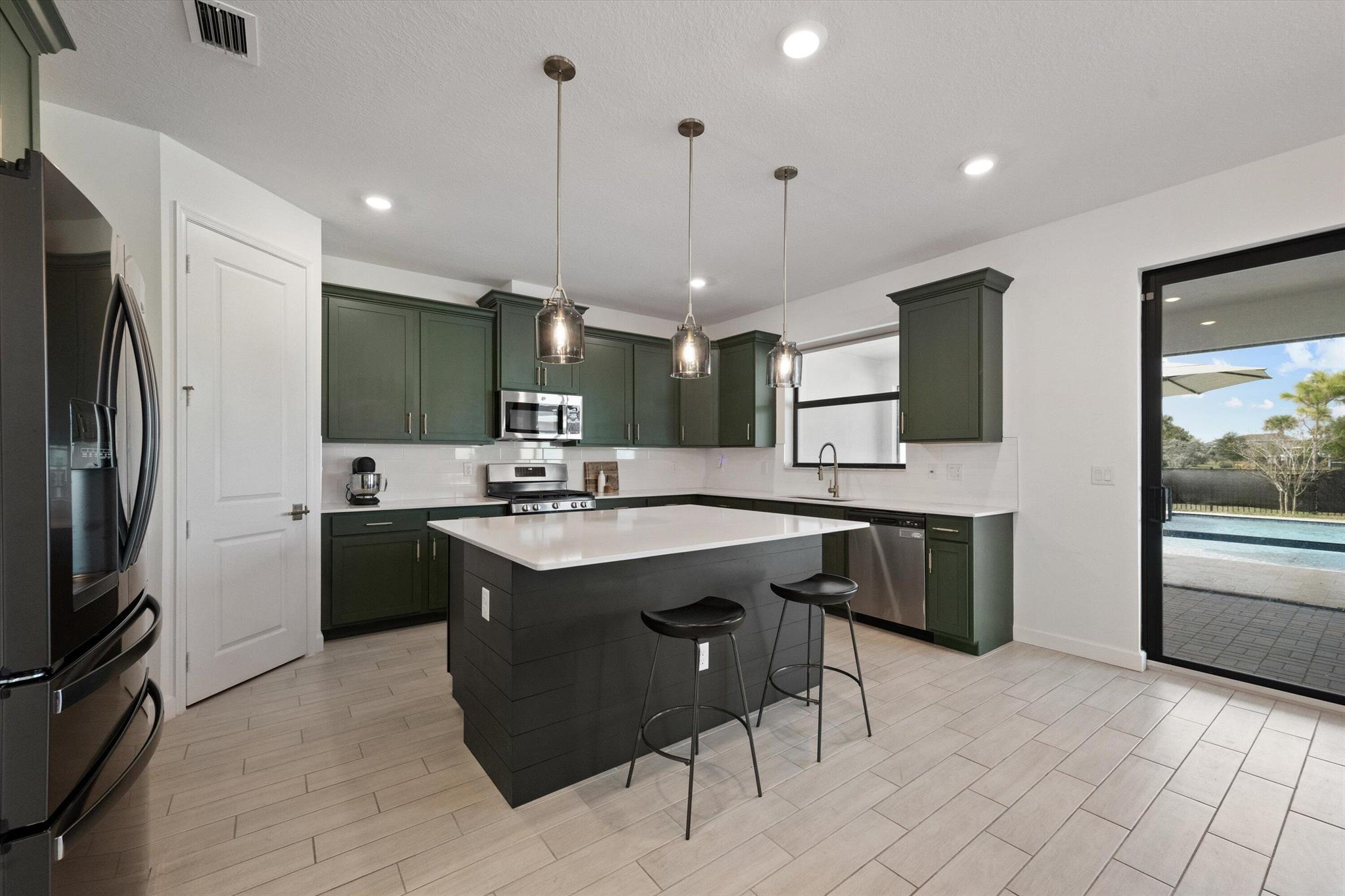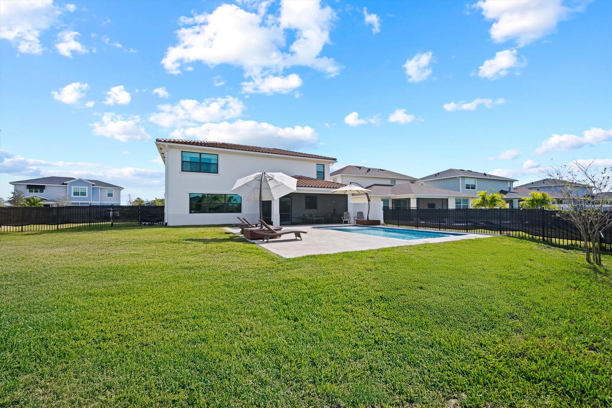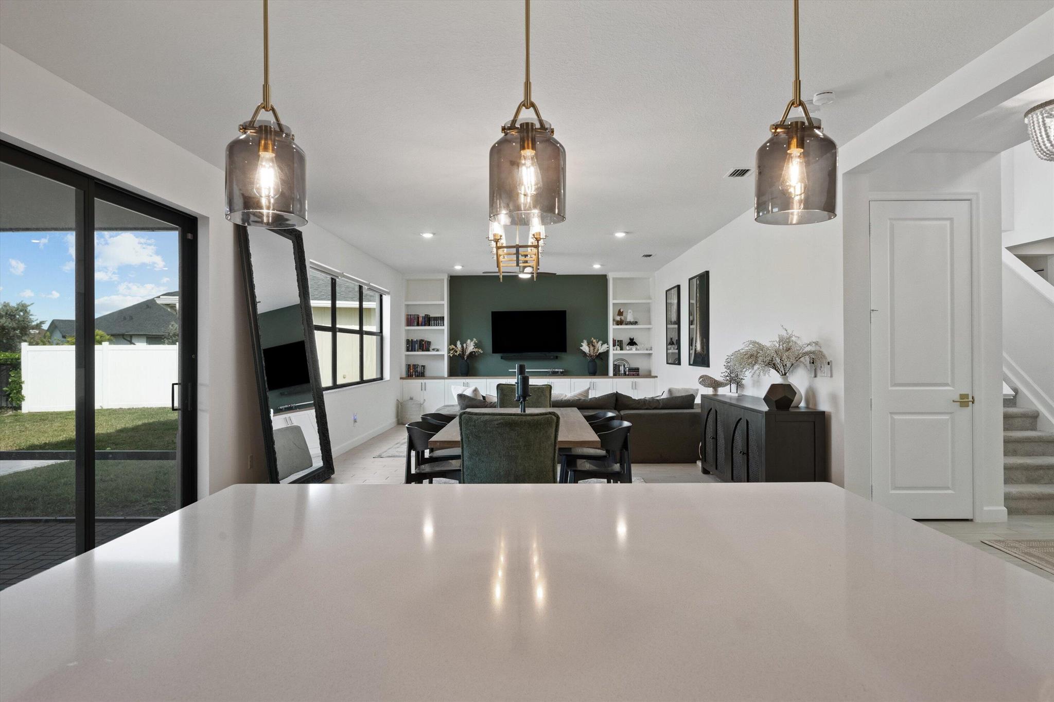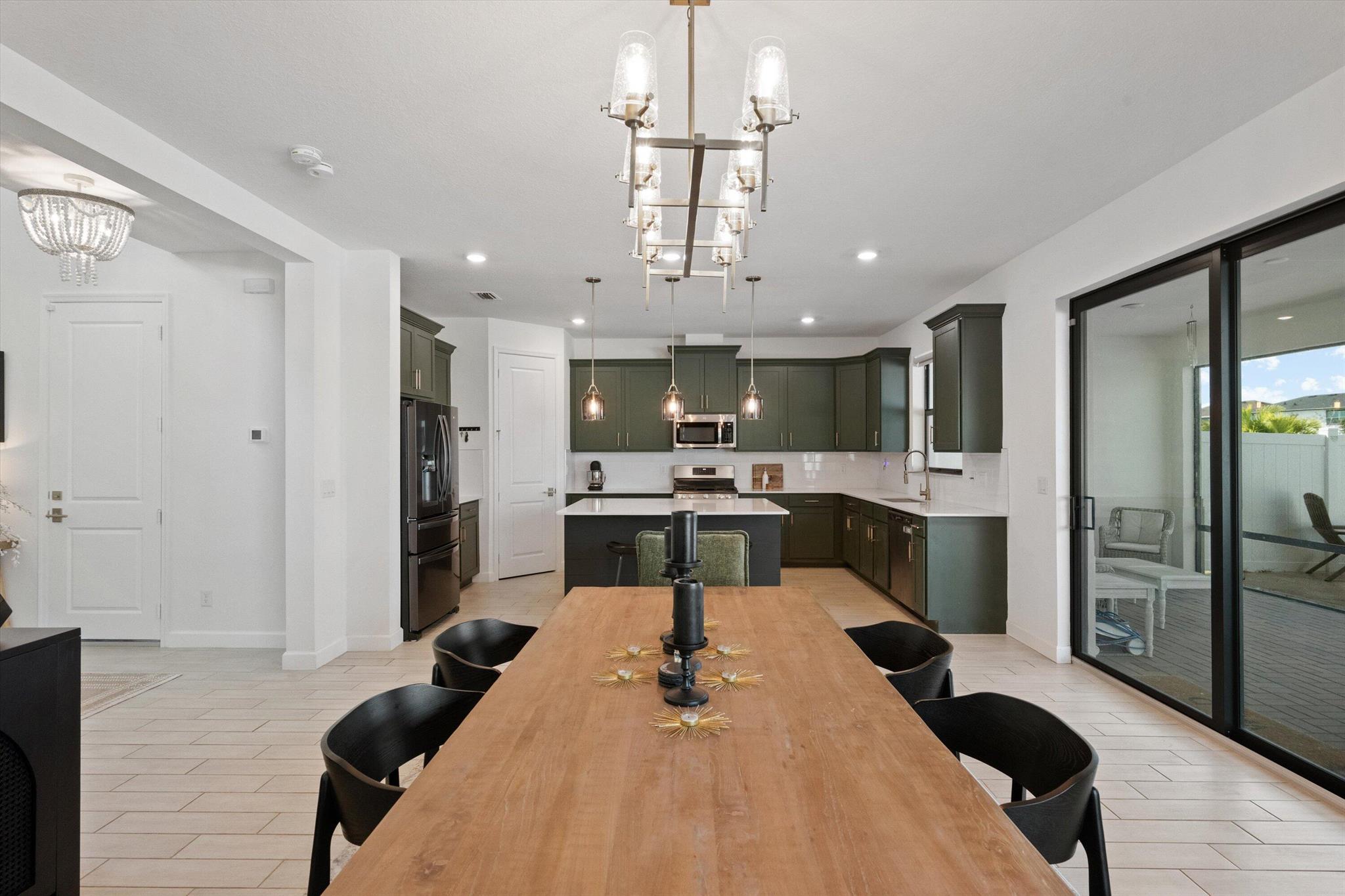 Welcome to this stunning 4-bed, 3-bath Spanish-style home, featuring a highly sought-after floor plan, set on an expansive lot. On the ground floor, you'll find an inviting open-concept living, dining, and kitchen area--perfect for entertaining. A 4th bedroom and full bath, along with stylish wood-tile flooring, complete the main level. The 2nd level offers a spacious primary suite, along with 2 additional bedrooms, bath and laundry room. This home boasts an array of upgrades, including a heated pool with a generous deck for outdoor relaxation, screened in lanai, fenced yard, and a total of 3 garage bays. Additional highlights include impact windows and doors, custom built-in shelving in the living area, new vanity mirrors, light fixtures, ceiling fans